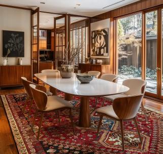 Hand-knotted rugs hold a firm place in both classic and contemporary interiors. In modern spaces, the contrast between clean architectural lines and ornamental structures creates a special sense of depth and character.