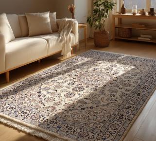 Nain rug: A distinguished Persian rug of exceptional quality, known for its elegant lines, balanced ornamentation and light, harmonious colour palette. Terms such as 4L/6La, 9La and 12La indicate the fineness of the knotting and the level of detail – an important feature for connoisseurs.