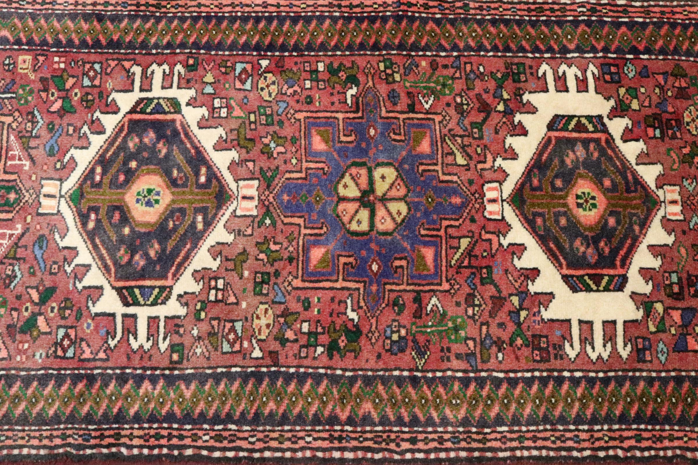 This rug belongs to village and nomadic rugs from Iran, formerly Persia. This type of rug is knotted by hand in smaller towns and villages in old tradition. Even nomads still knot Persian rugs in the open air. The rugs are knotted without a draft and completely from the mind. They are characterized by classical ornaments, which are arranged in straight and geometrical patterns. Thanks to their cultural-traditional origin, these rugs have a unique character that embodies ancient Persia.
