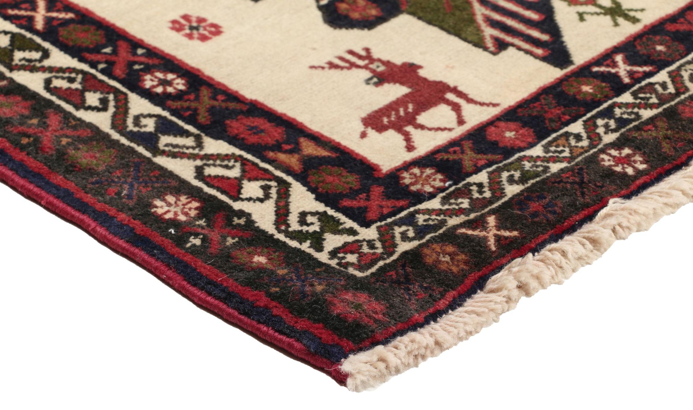 This rug belongs to village and nomadic rugs from Iran, formerly Persia. This type of rug is knotted by hand in smaller towns and villages in old tradition. Even nomads still knot Persian rugs in the open air. The rugs are knotted without a draft and completely from the mind. They are characterized by classical ornaments, which are arranged in straight and geometrical patterns. Thanks to their cultural-traditional origin, these rugs have a unique character that embodies ancient Persia.