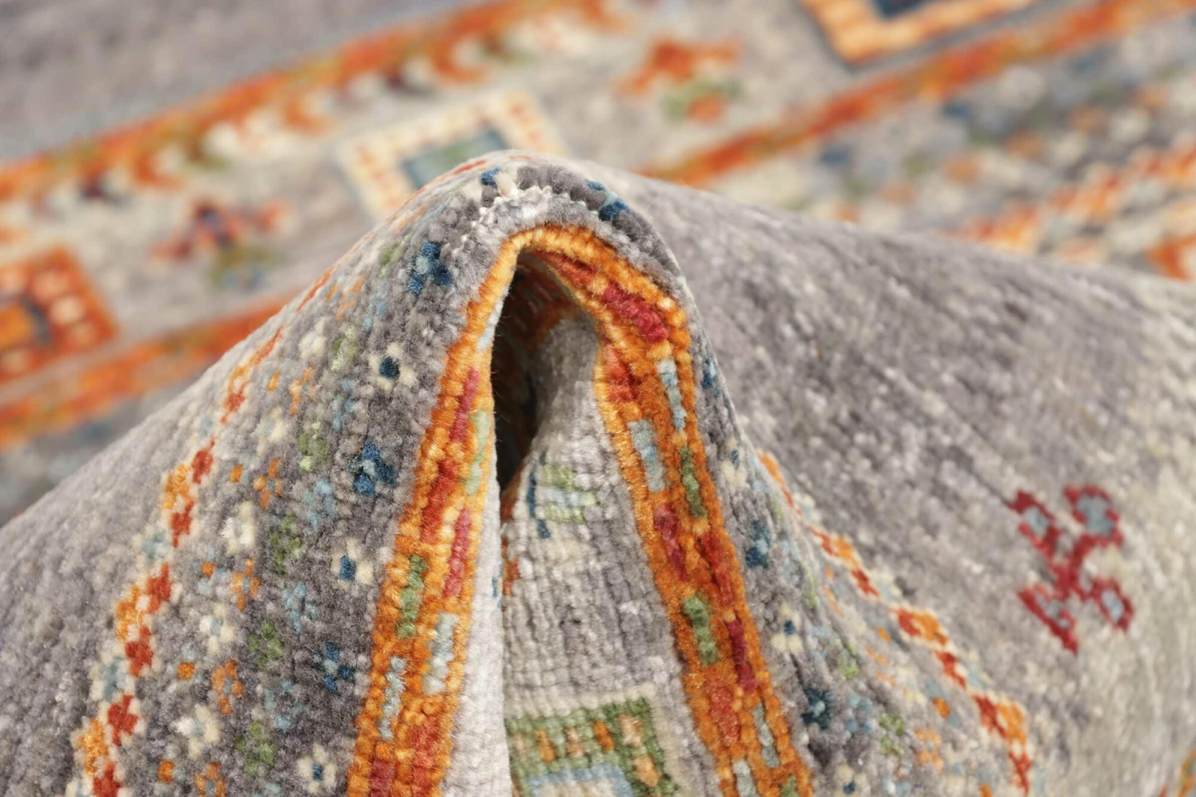 This vibrant oriental rug was hand-knotted in Pakistan - in one of the most far-reaching knotting cultures in the world. Here, the vibrant color spectrum of the Orient comes into its own. A rug like this brings joie de vivre at any time of year. The designer rug has its very own character, as it has only been hand-knotted once over a period of months.