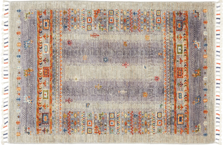 Carpet ID: 212312006810030 Size: 121x80 cm Thickness: ap. 5 mm Knot density: 128 000 - 160 000 / m² Manufacturing: Knotted by hand Pile: Handspun wool Warp: Cotton Origin: Pakistan Age: New Weight: ap. 3 kg In stock: Unique - Only 1 in stock
