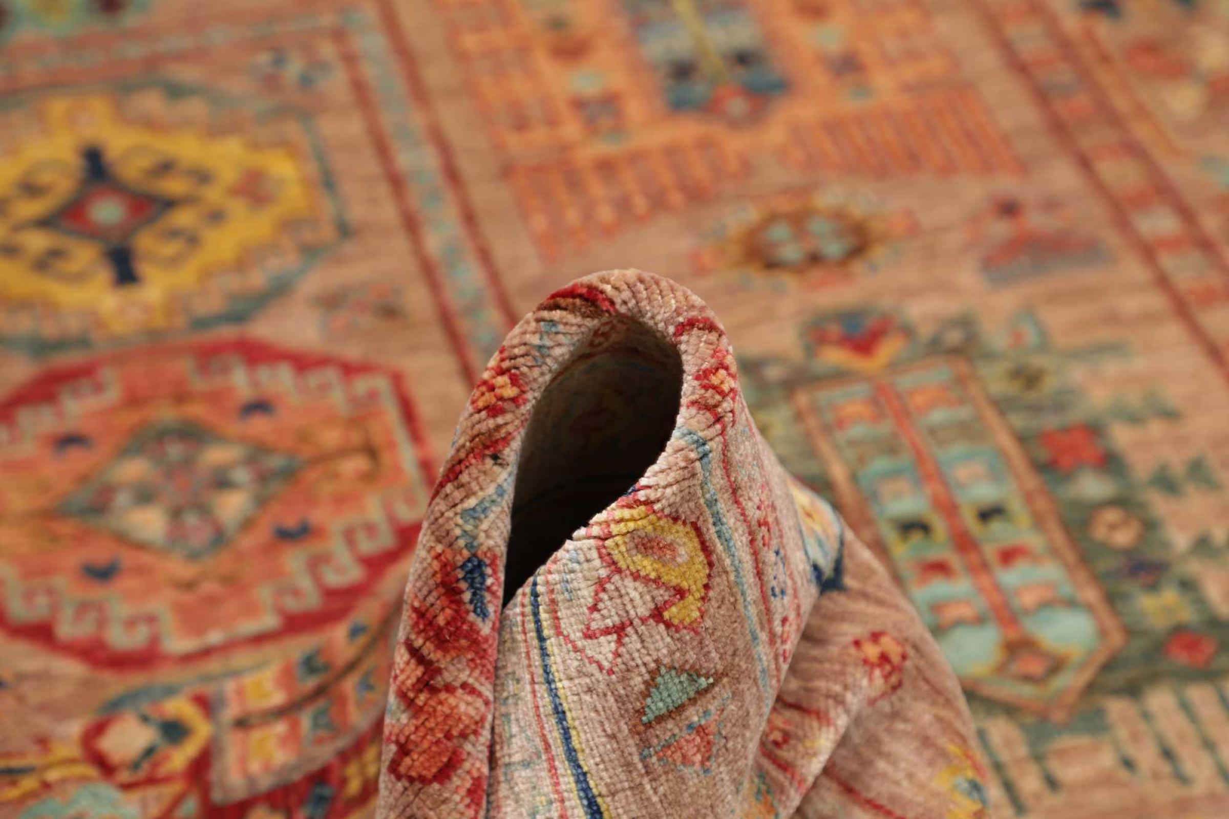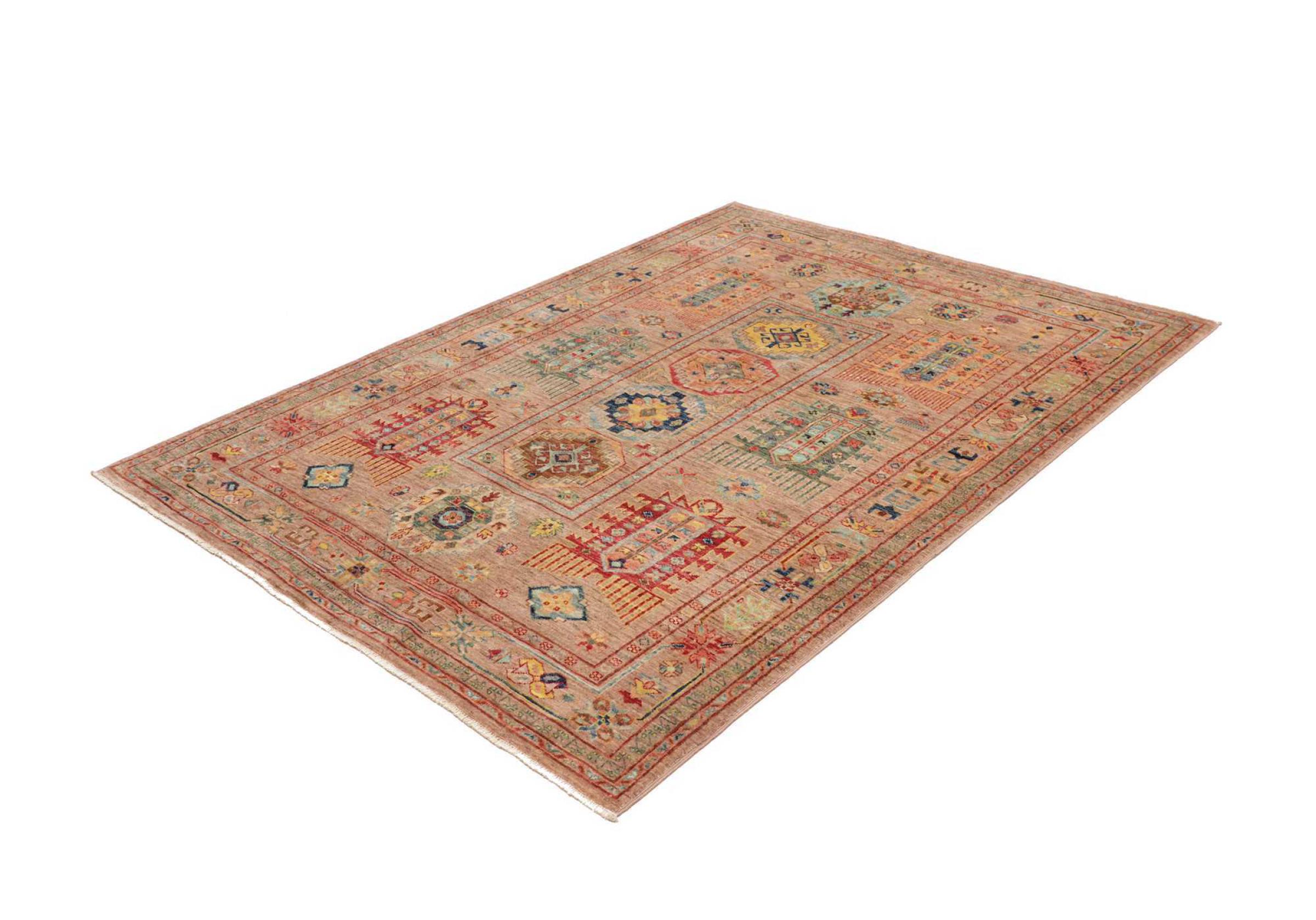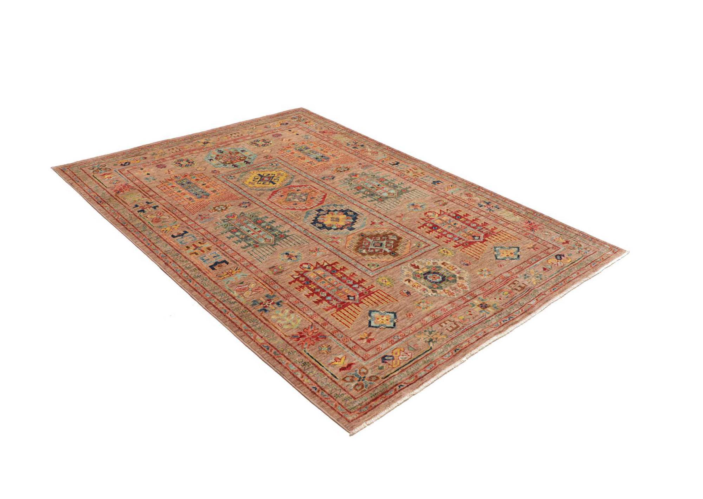 This vibrant oriental rug was hand-knotted in Pakistan - in one of the most far-reaching knotting cultures in the world. Here, the vibrant color spectrum of the Orient comes into its own. A rug like this brings joie de vivre at any time of year. The designer rug has its very own character, as it has only been hand-knotted once over a period of months.