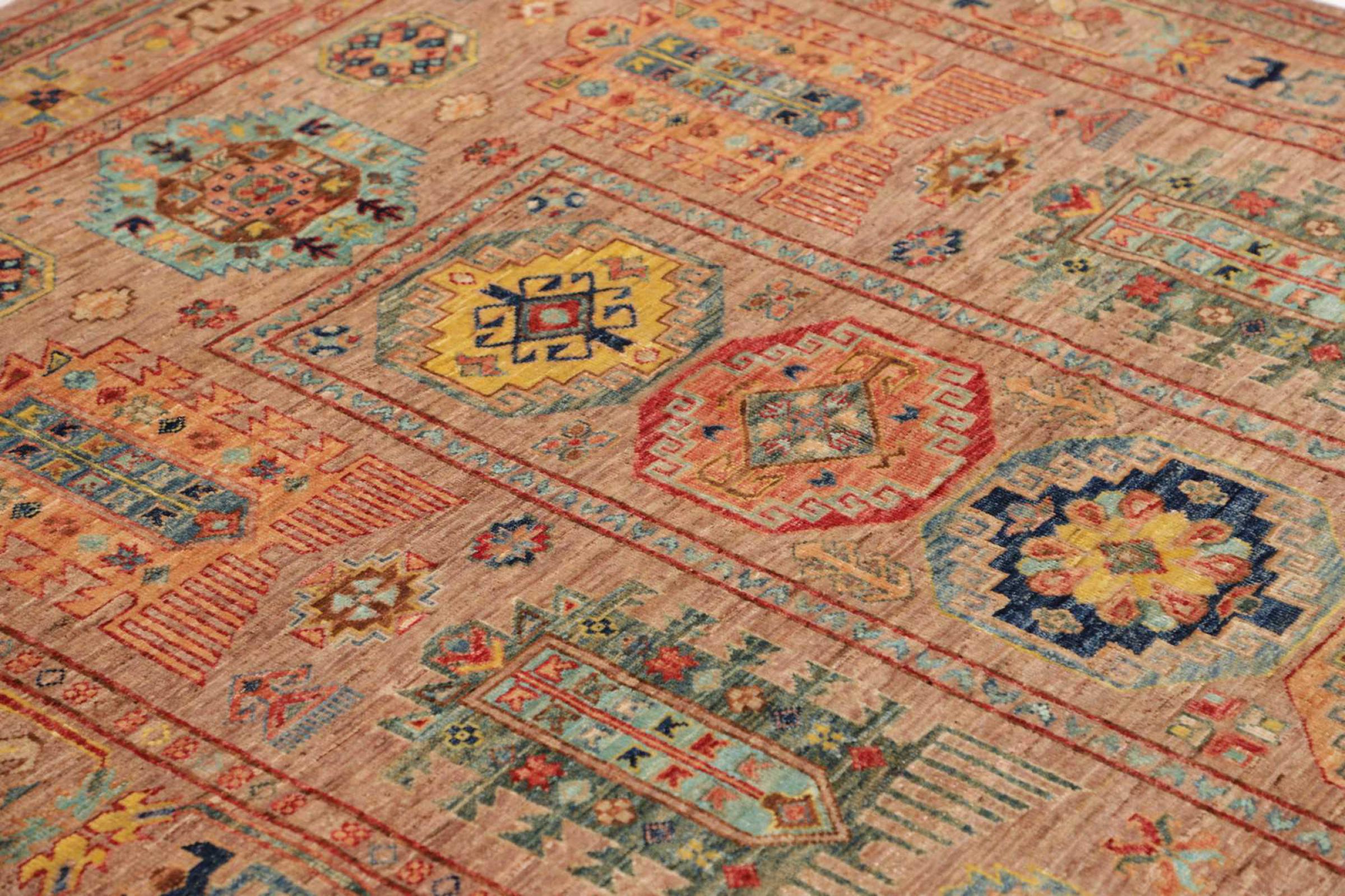 This rug is made of hand spun sheep wool of the highest quality. Especially in Iran (former Persia), Afghanistan and Pakistan wool is still spun by hand before the actual knotting of the rug begins. Wool has proven itself as a natural and extremely hard-wearing material over centuries. Among other things, it has dirt-repellent and heat-insulating properties. At the same time, wool is incomparably soft and has a natural shine.