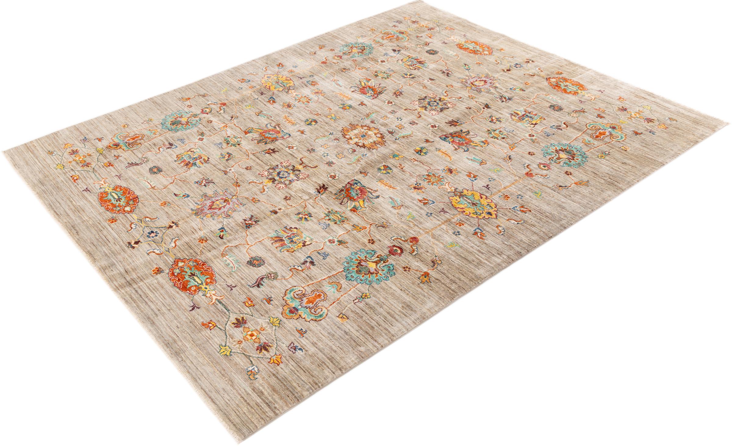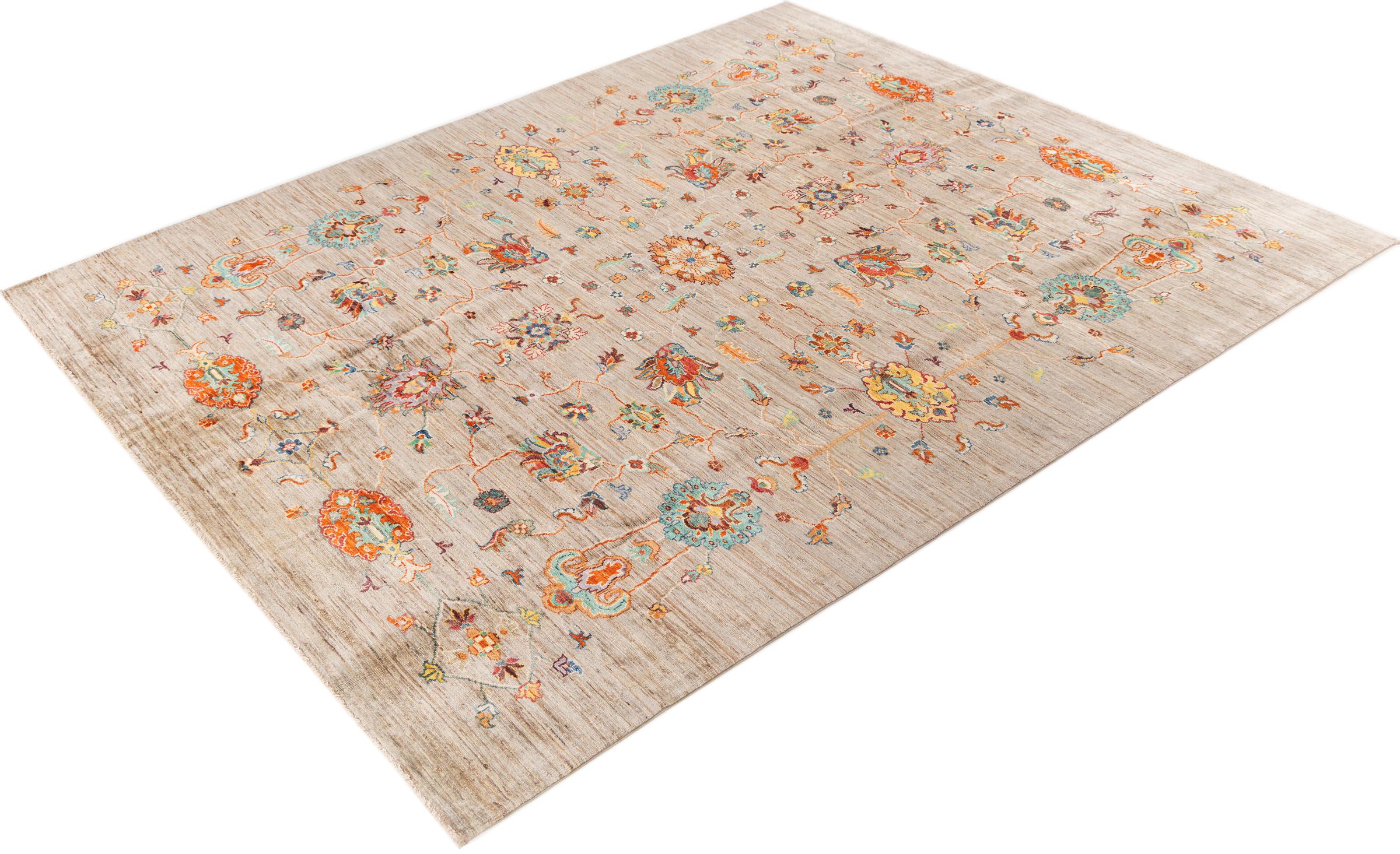 This vibrant oriental rug was hand-knotted in Pakistan - in one of the most far-reaching knotting cultures in the world. Here, the vibrant color spectrum of the Orient comes into its own. A rug like this brings joie de vivre at any time of year. The designer rug has its very own character, as it has only been hand-knotted once over a period of months.