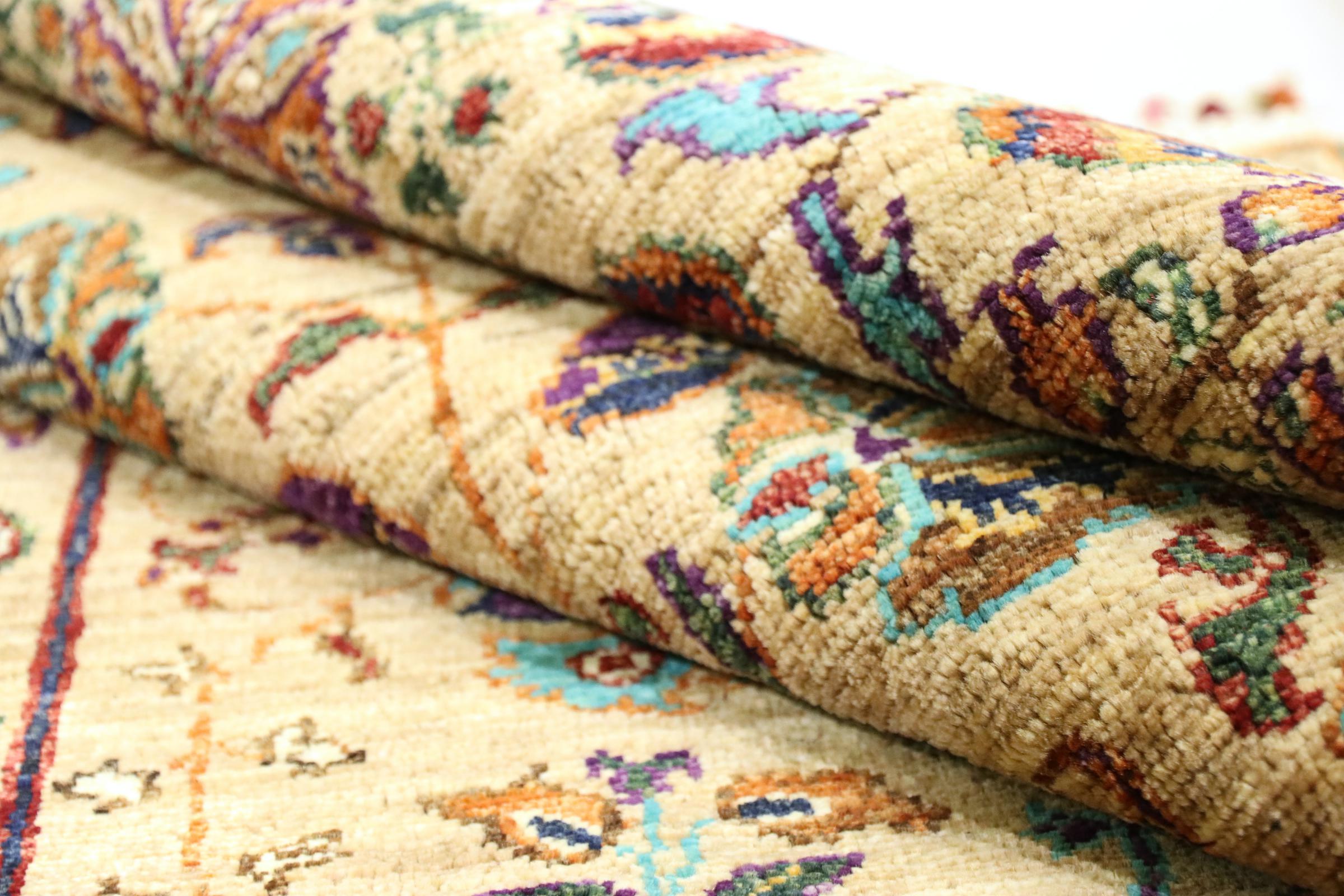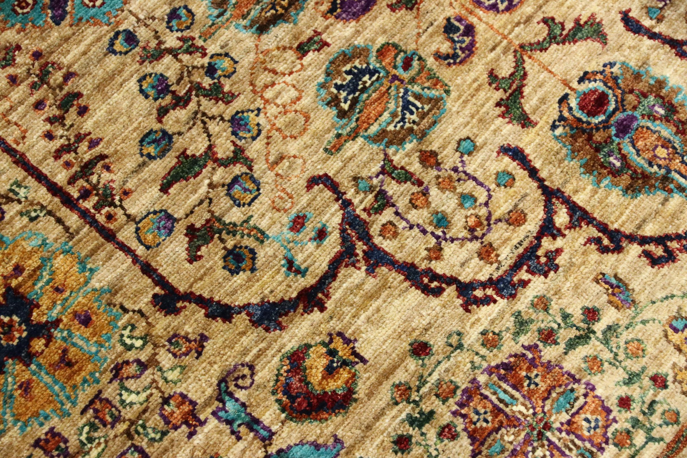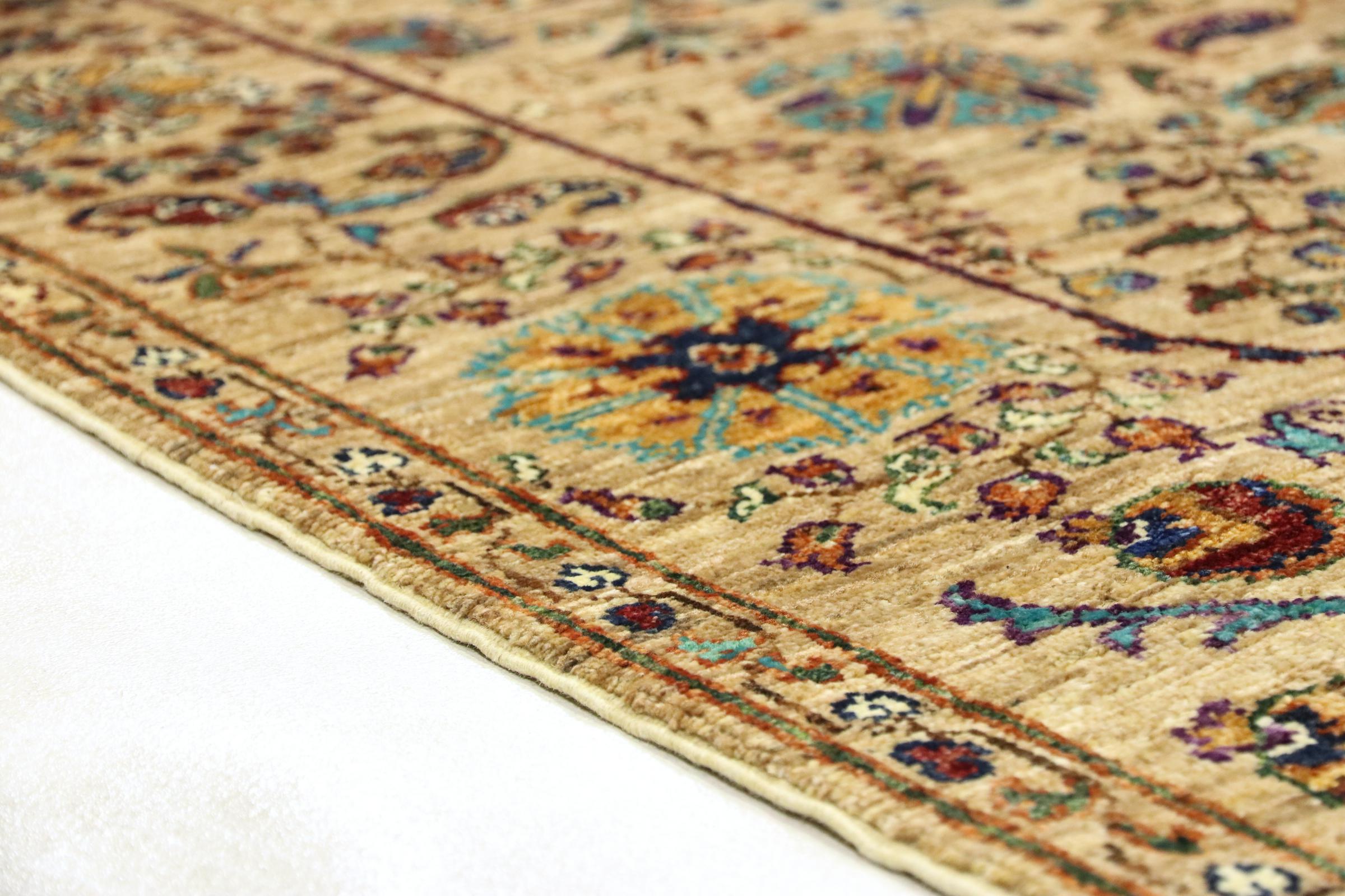 This Arijana carpet comes in a classic design. The carpet is modelled on the ornaments of traditional Persian carpets. Together with modern design elements and vivid colours it has been brought into the present day. The design is very popular today and guarantees an absolute highlight in your home. In addition: hand knotted carpets are simply unbeatable in their quality, durability and unique character.
