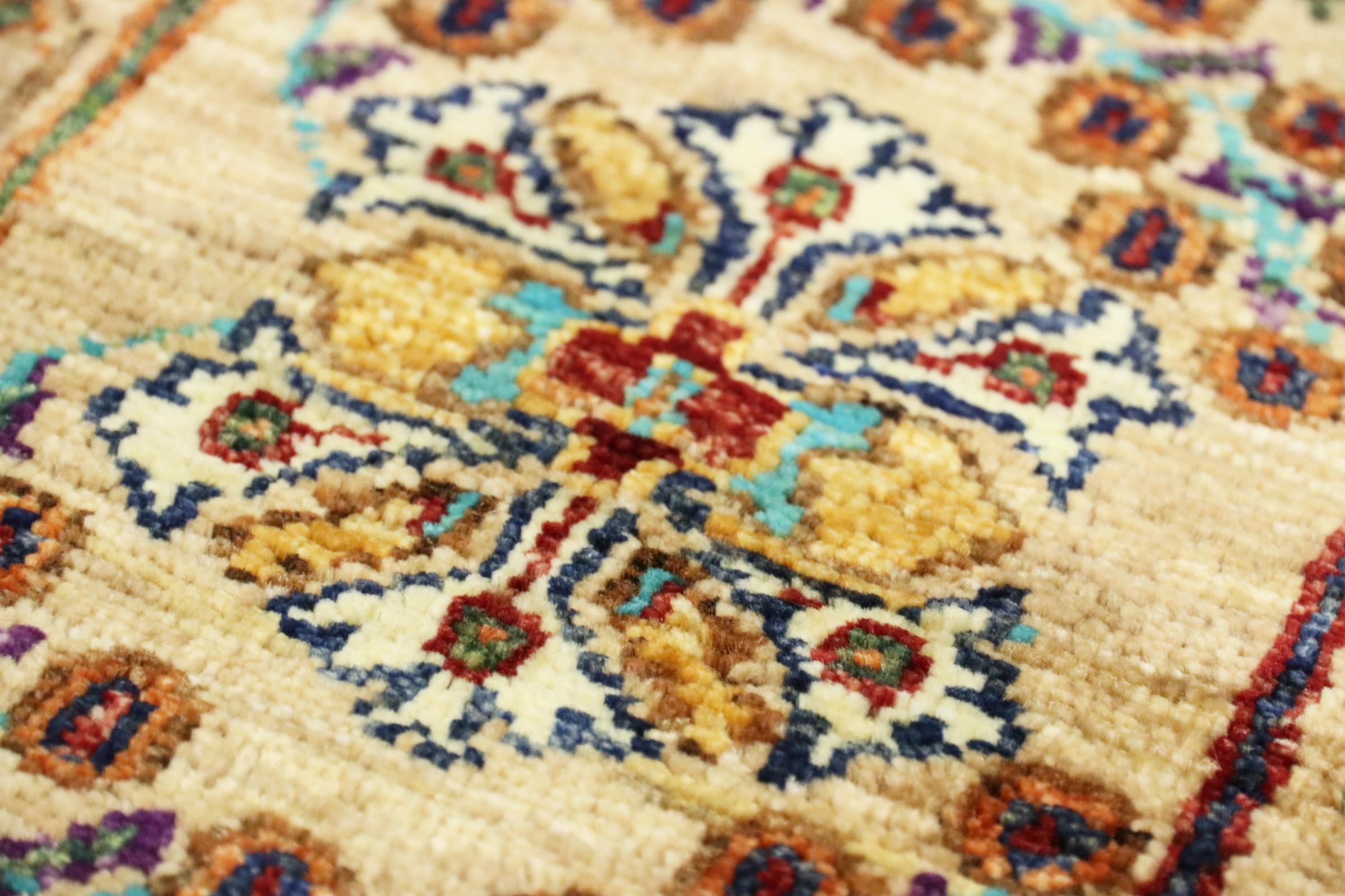 Carpet ID: 10087000705228 Size: 177x117 cm Thickness: ap. 5 mm Knot density: 128 000 - 160 000 / m² Manufacturing: Knotted by hand Pile: Sheep wool Warp: Cotton Origin: Afghanistan Age: New Weight: ap. 7 kg In stock: Unique