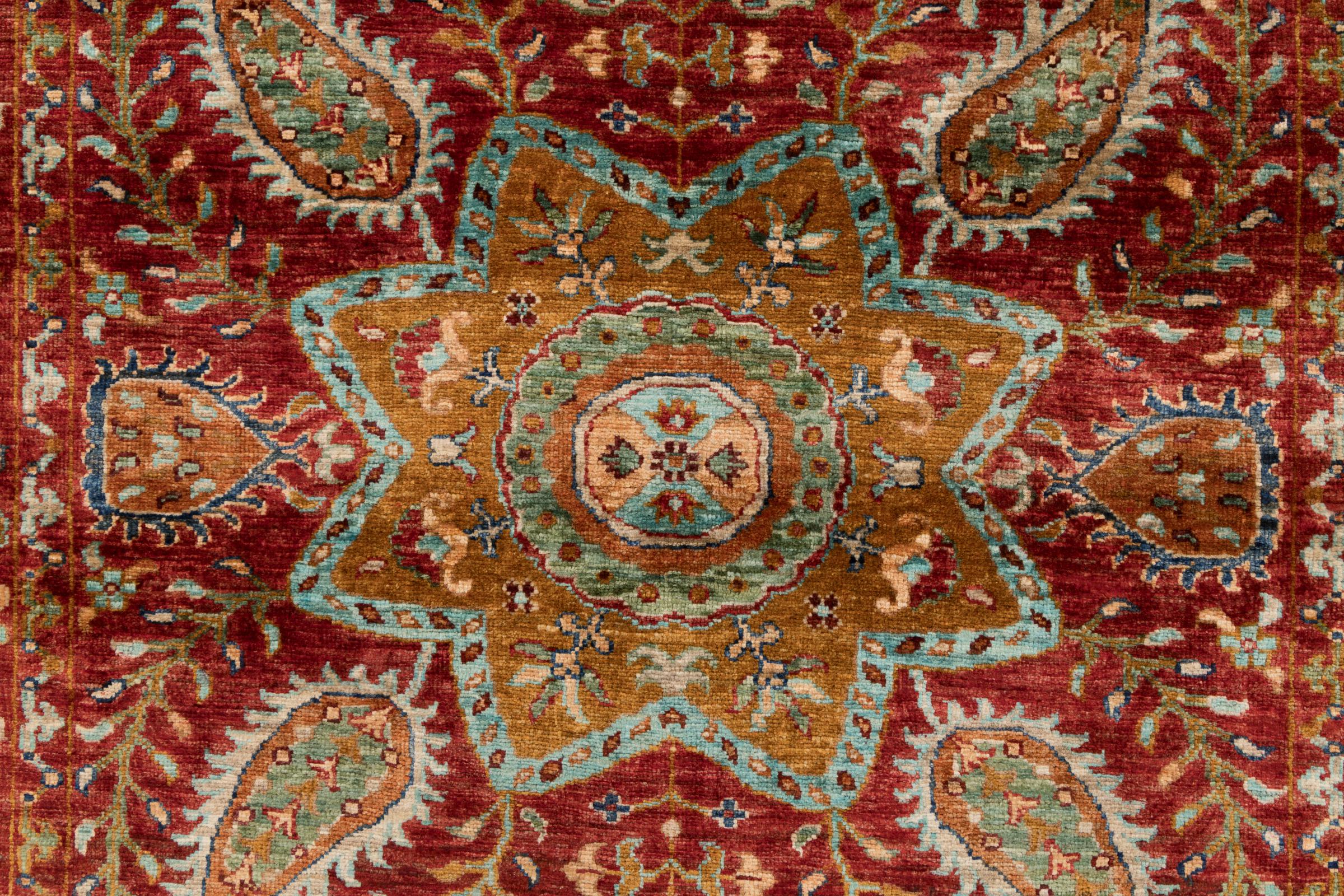 This rug is made of hand spun sheep wool of the highest quality. Especially in Iran (former Persia), Afghanistan and Pakistan wool is still spun by hand before the actual knotting of the rug begins. Wool has proven itself as a natural and extremely hard-wearing material over centuries. Among other things, it has dirt-repellent and heat-insulating properties. At the same time, wool is incomparably soft and has a natural shine.