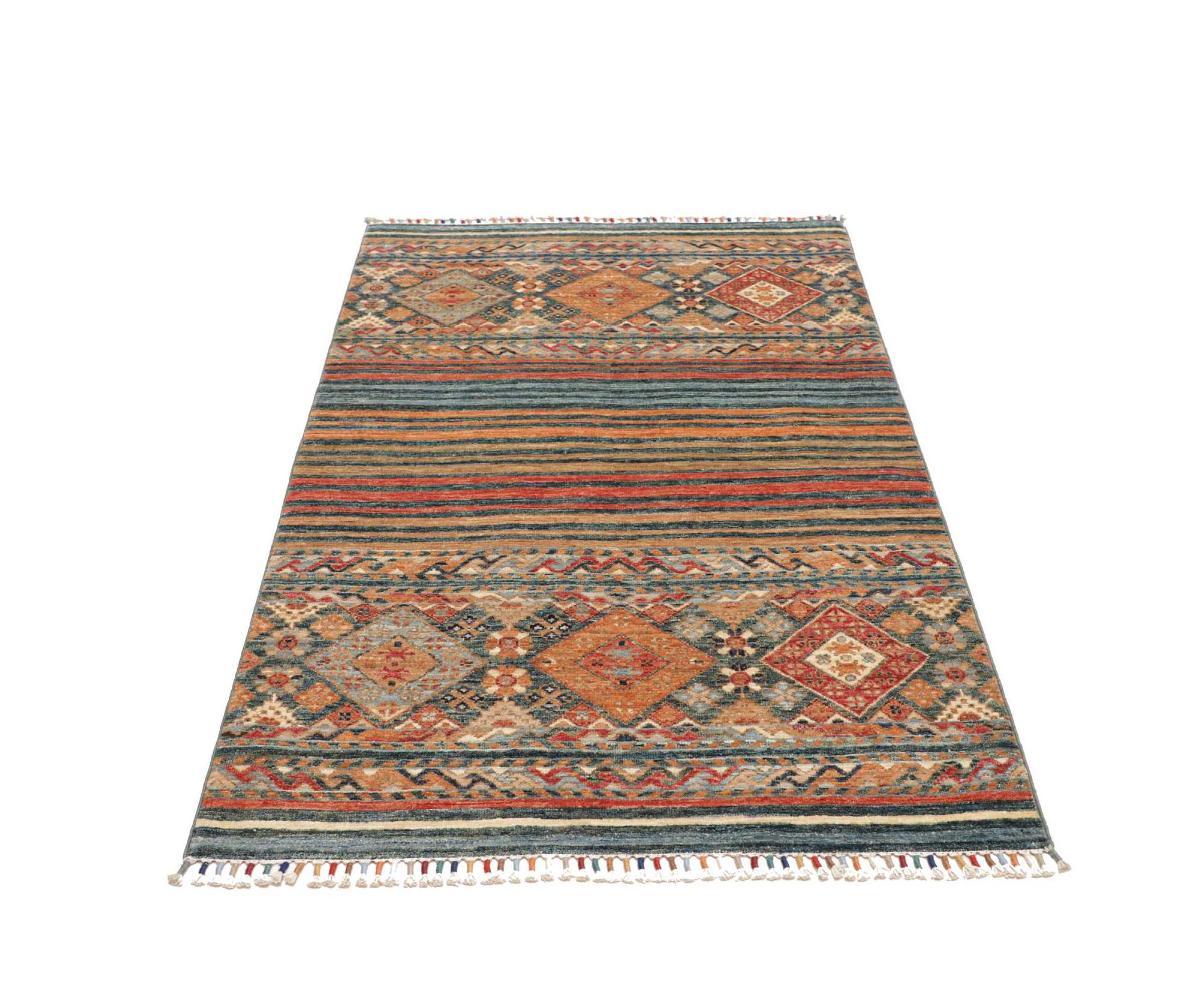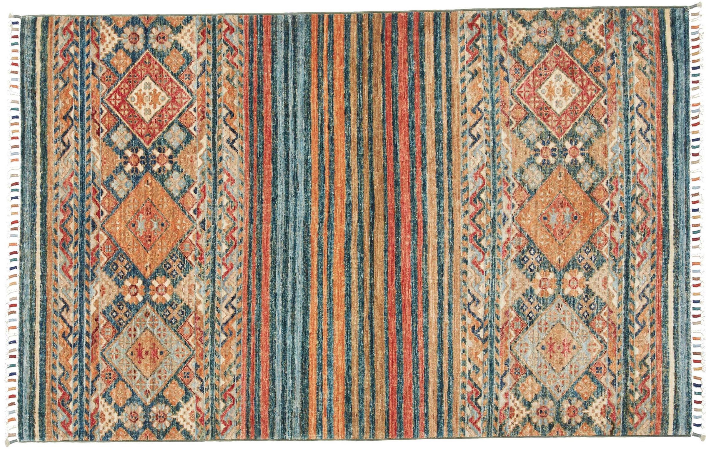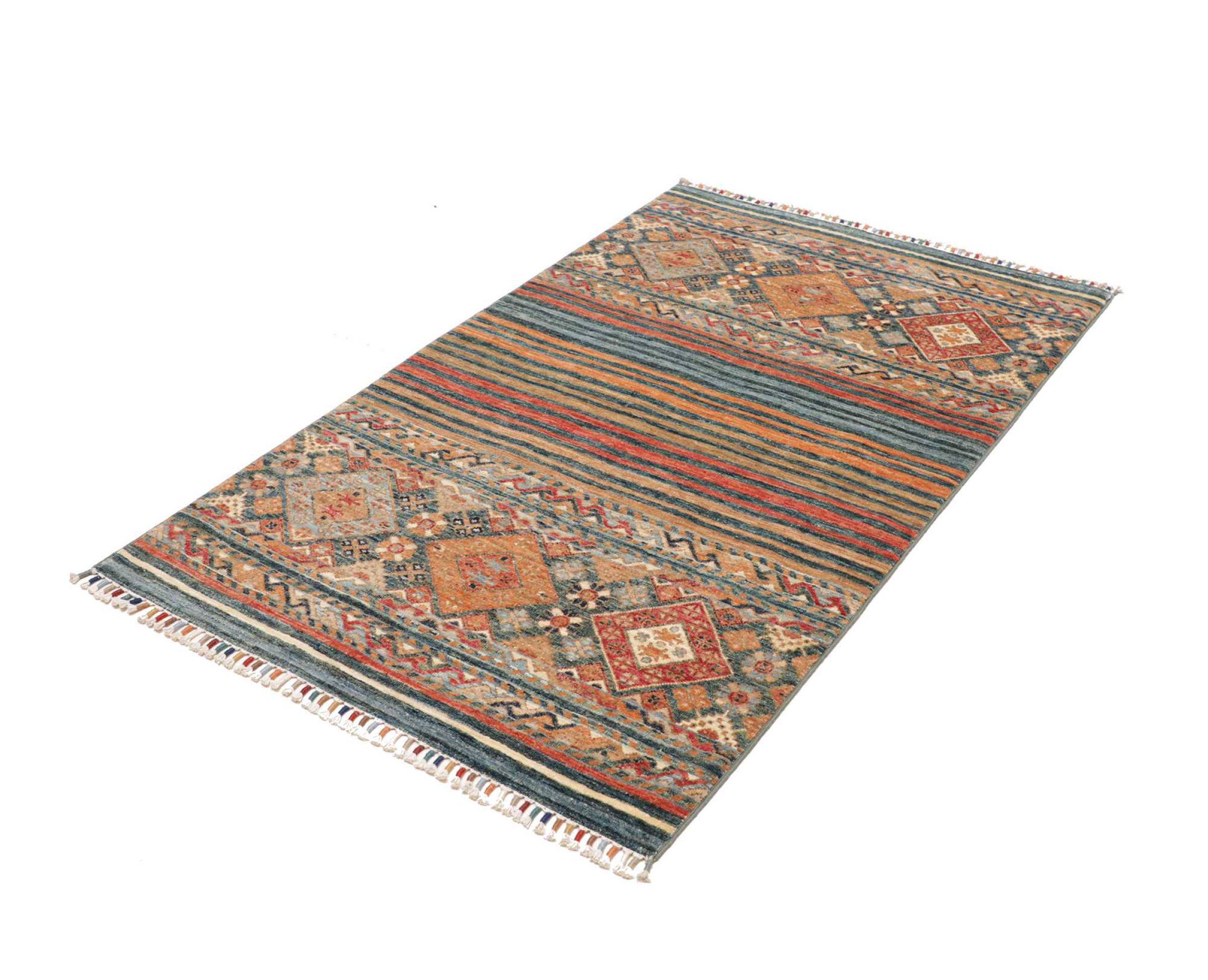 This Arijana Shaal carpet was knotted by hand in Pakistan. It promises a very high quality and thus offers long lasting pleasure. The pattern in stripes is varied and exciting. It was inspired by the well-known Moharamati design. If you find monochrome carpets too boring, you will certainly be delighted with this Arijana Shaal.