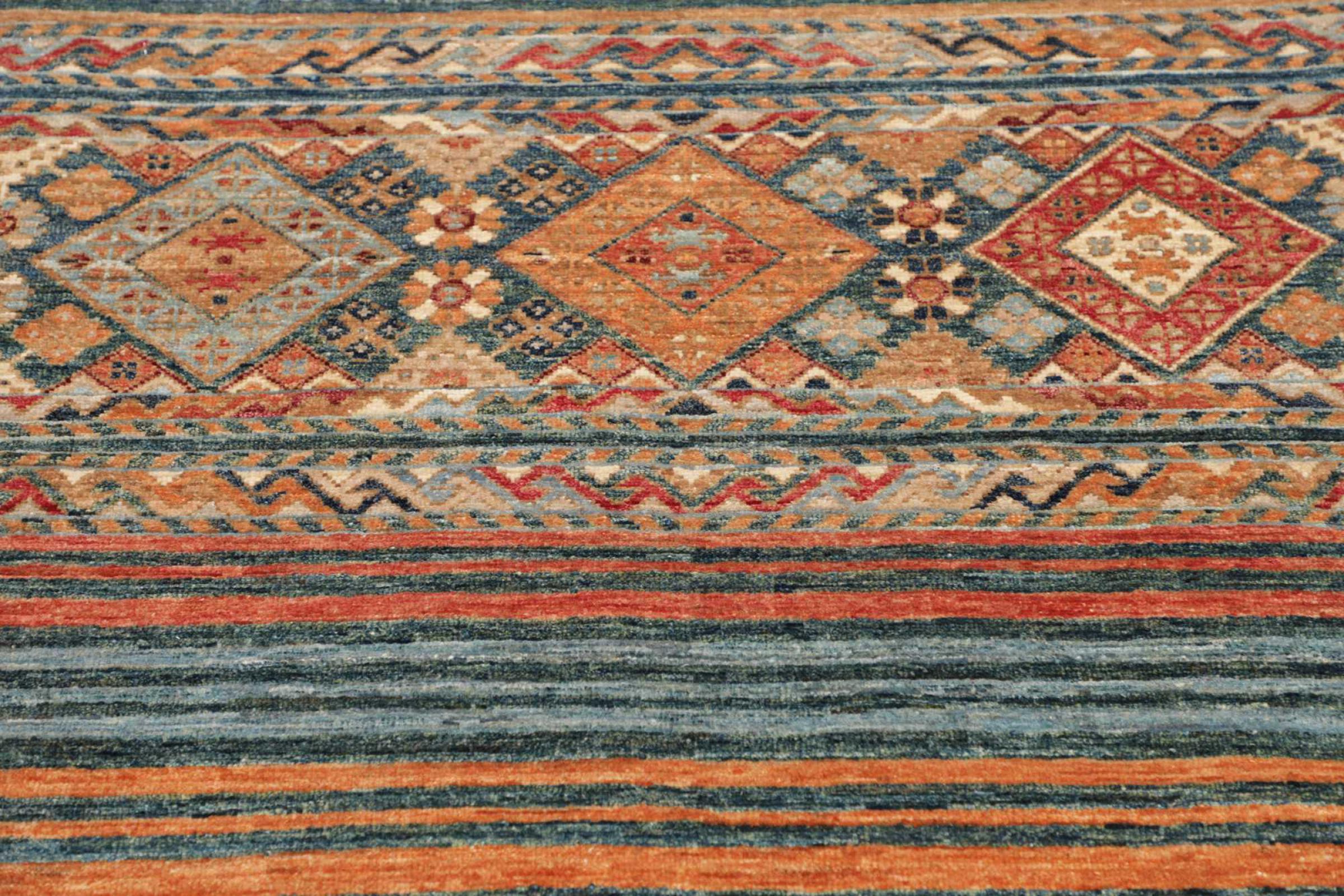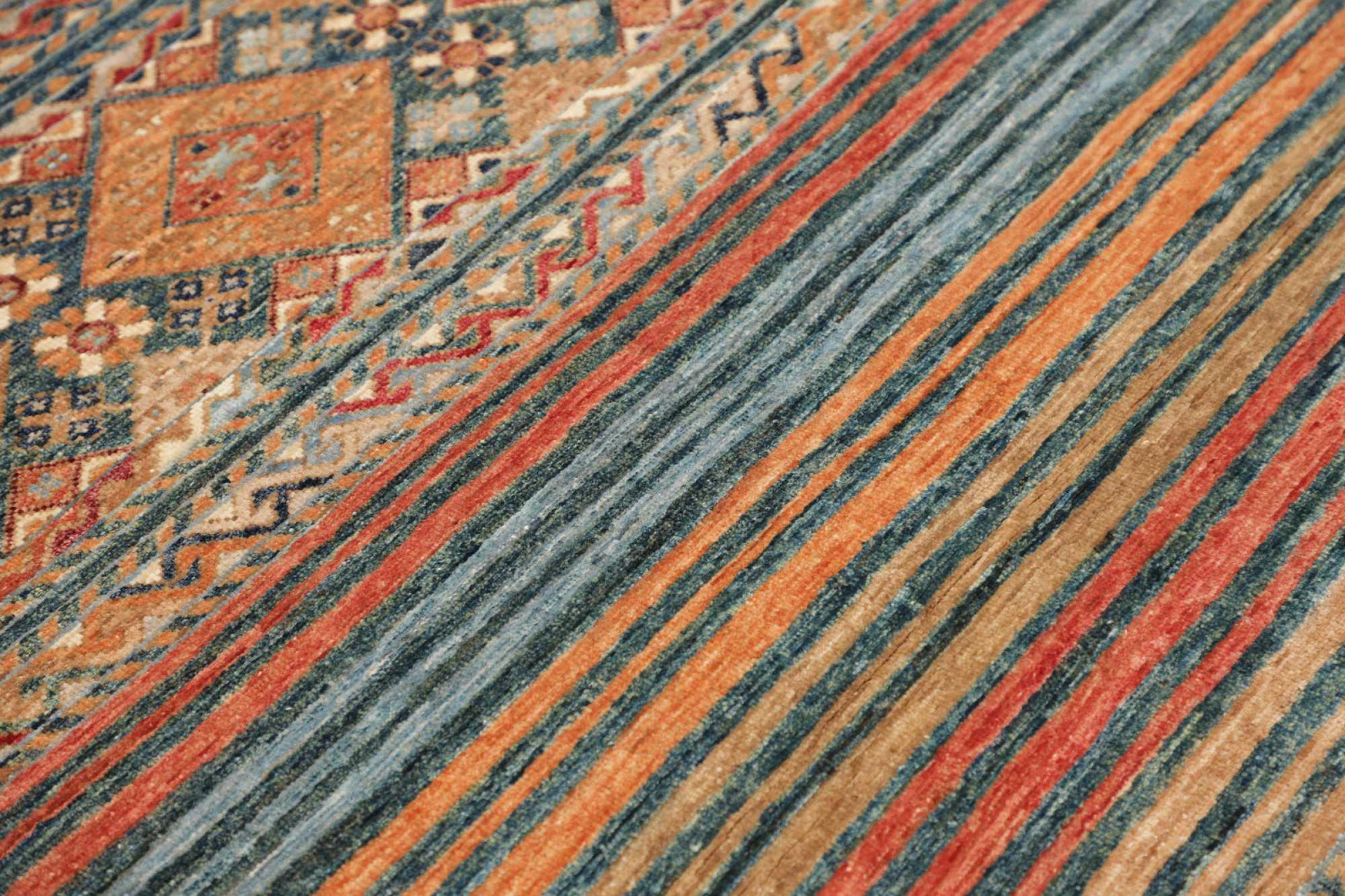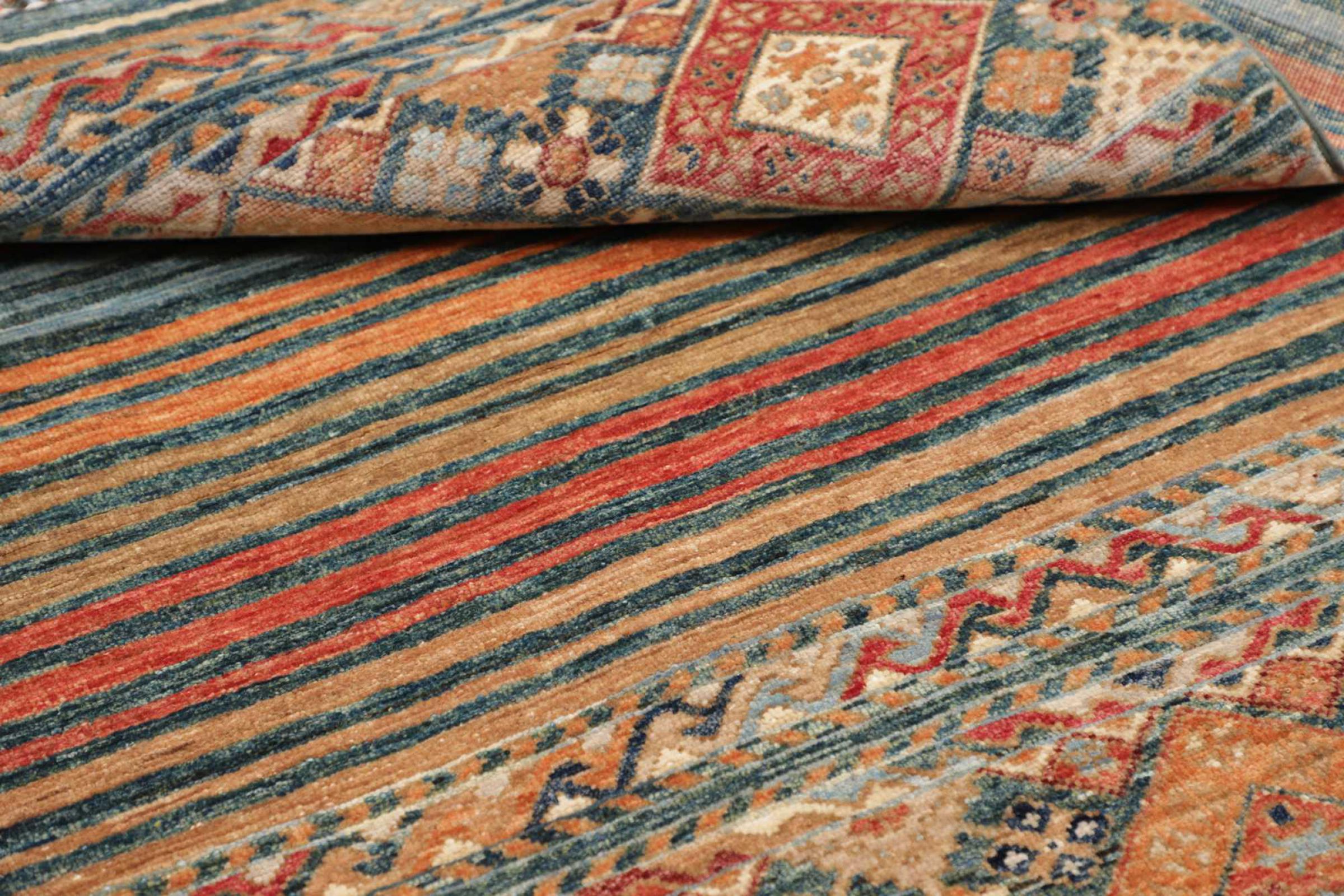 This Arijana Shaal carpet was knotted by hand in Pakistan. It promises a very high quality and thus offers long lasting pleasure. The pattern in stripes is varied and exciting. It was inspired by the well-known Moharamati design. If you find monochrome carpets too boring, you will certainly be delighted with this Arijana Shaal.
