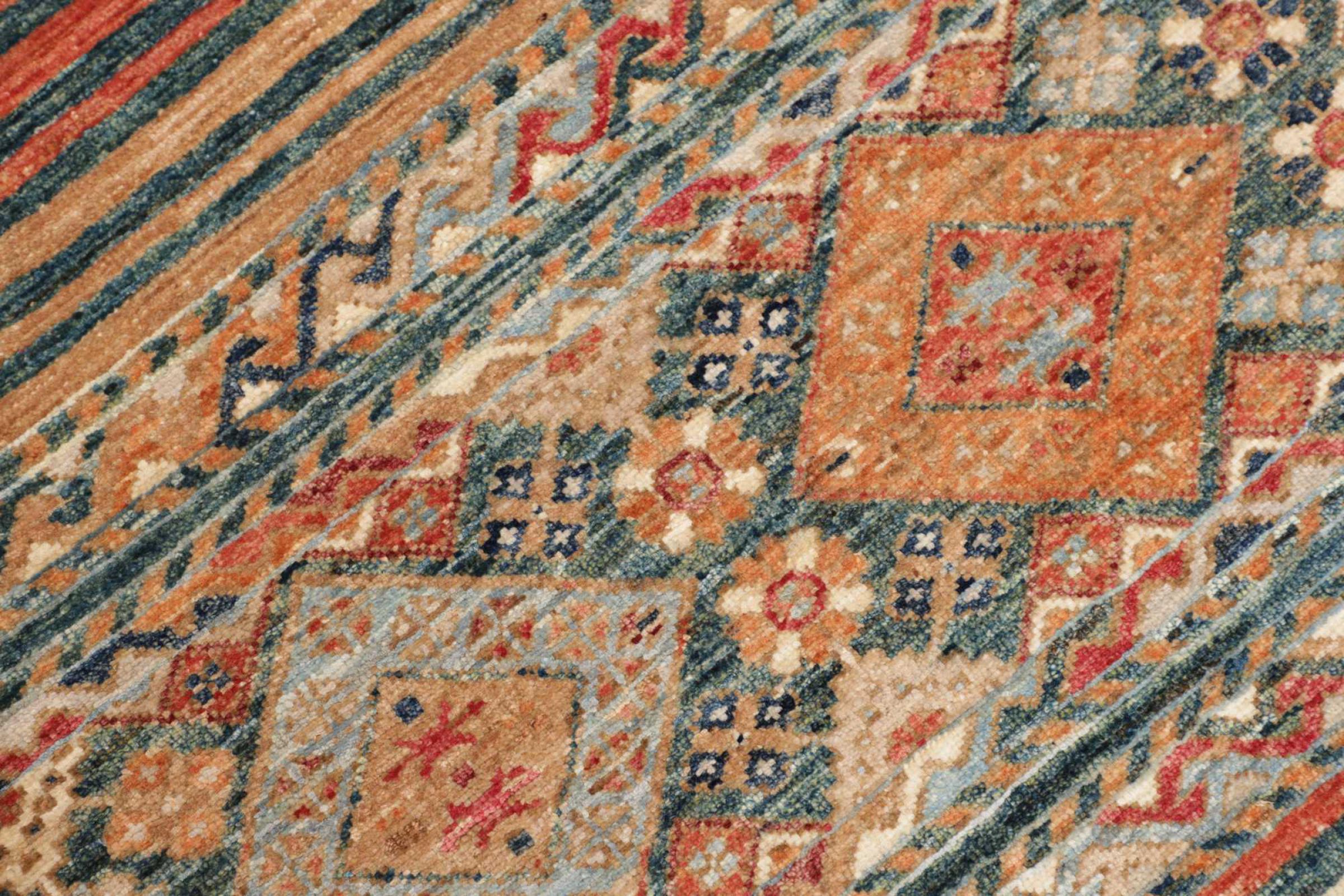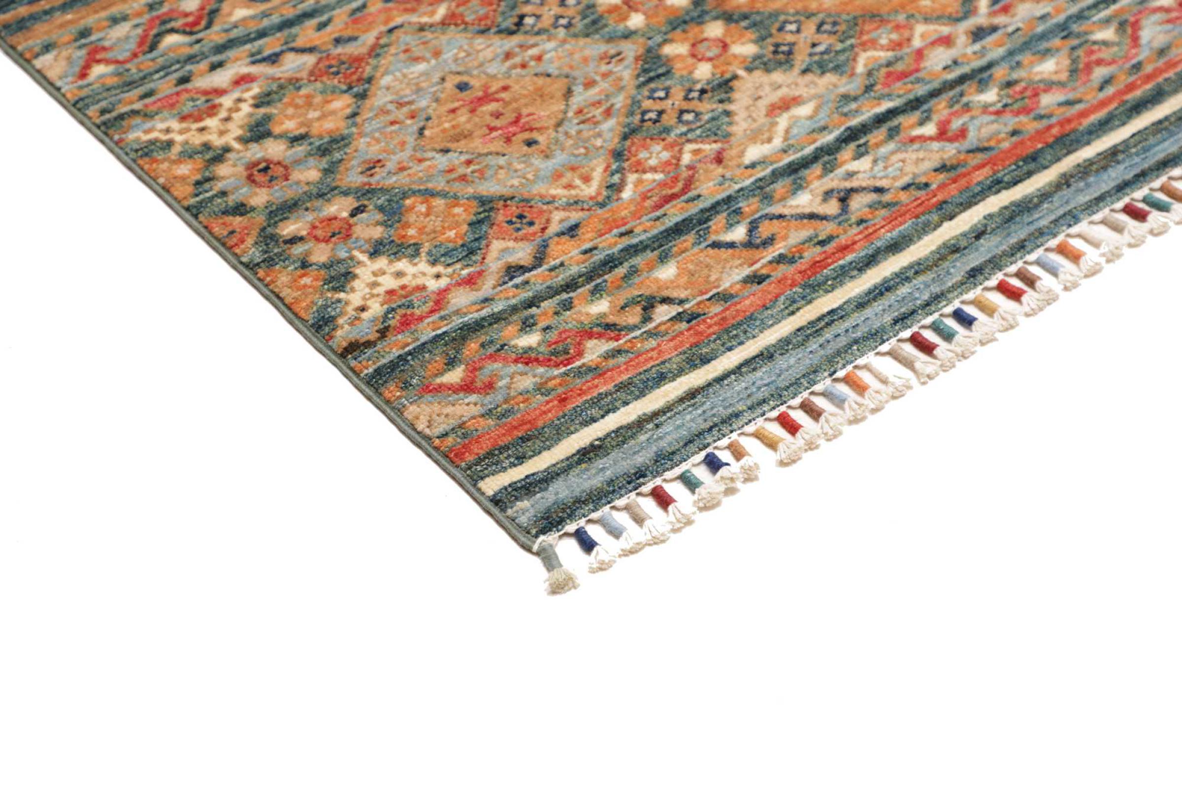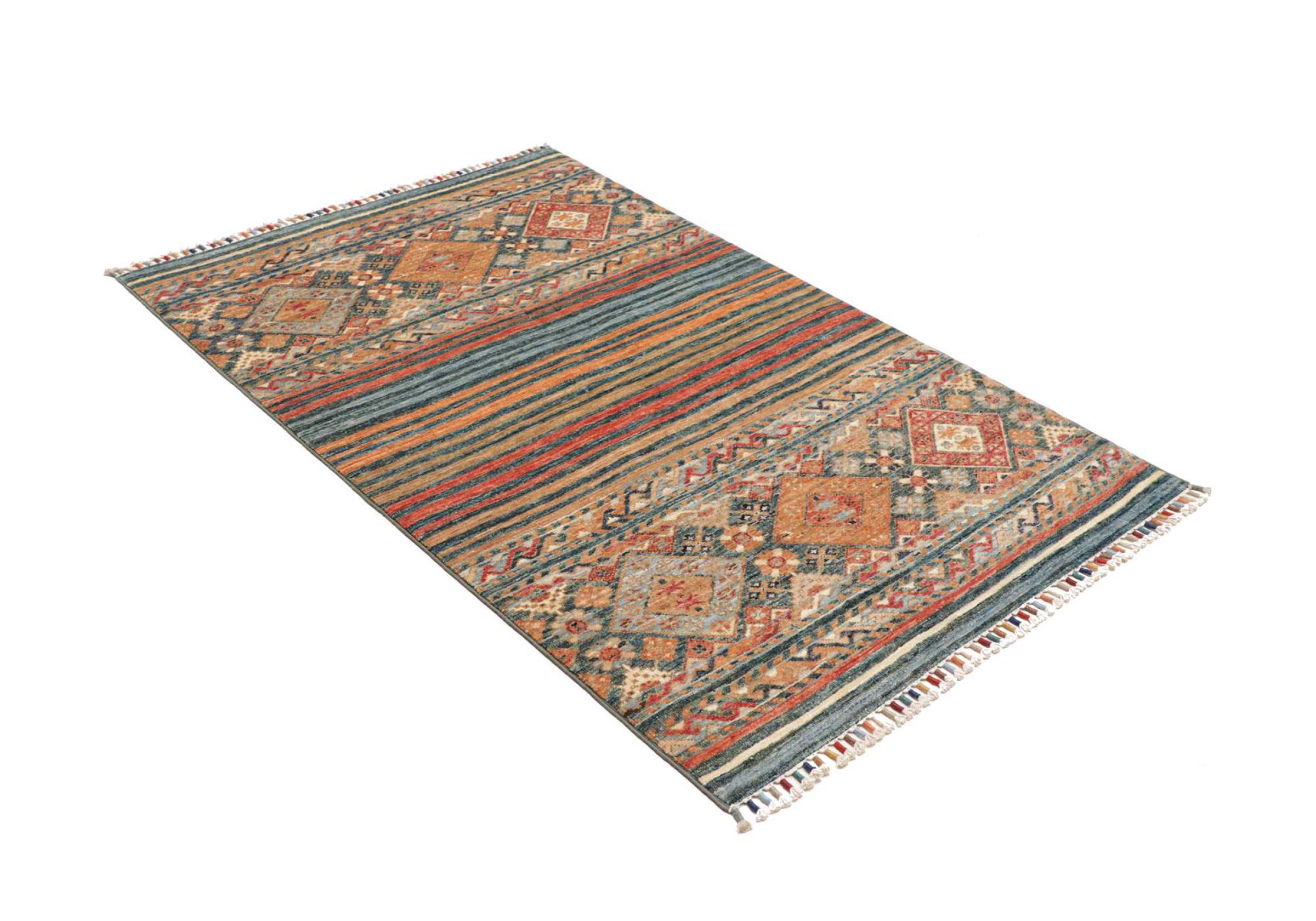Carpet ID: 286803004836079 Size: 152x98 cm Thickness: ap. 5 mm Knot density: 128 000 - 160 000 / m² Manufacturing: Knotted by hand Pile: Handspun wool Warp: Cotton Origin: Pakistan Age: New Weight: ap. 5 kg In stock: Unique - Only 1 in stock
