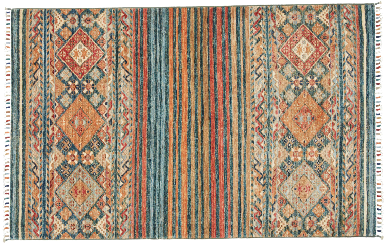 A large part of Pakistani rug production takes place in and around the cities of Lahore and Karachi. Many of the rug knotters of that time fled to Pakistan during the war with India and settled there. Today, especially hand-knotted Pakistan Bukhara rugs are well-known. Similar to the Afghan oriental rugs, Pakistani rugs are also made in dark colours and mostly have shades of red. Even the well-known elephant foot pattern (repeating octagonal pattern) can be found on a Pakistani.