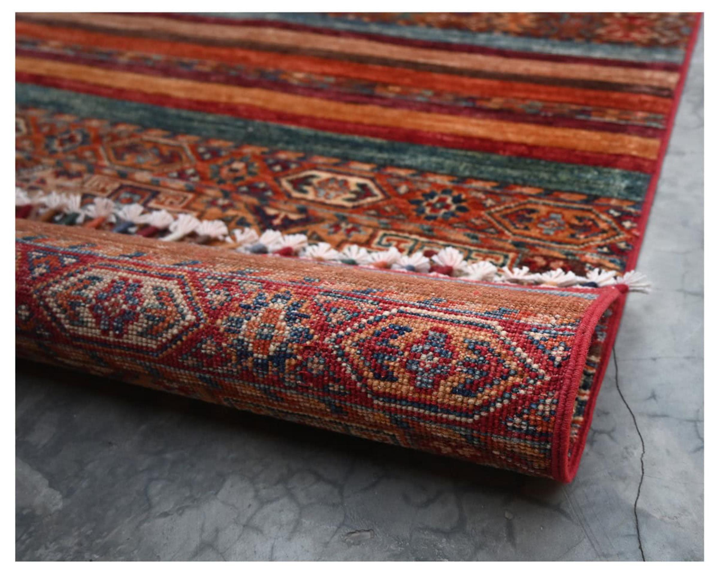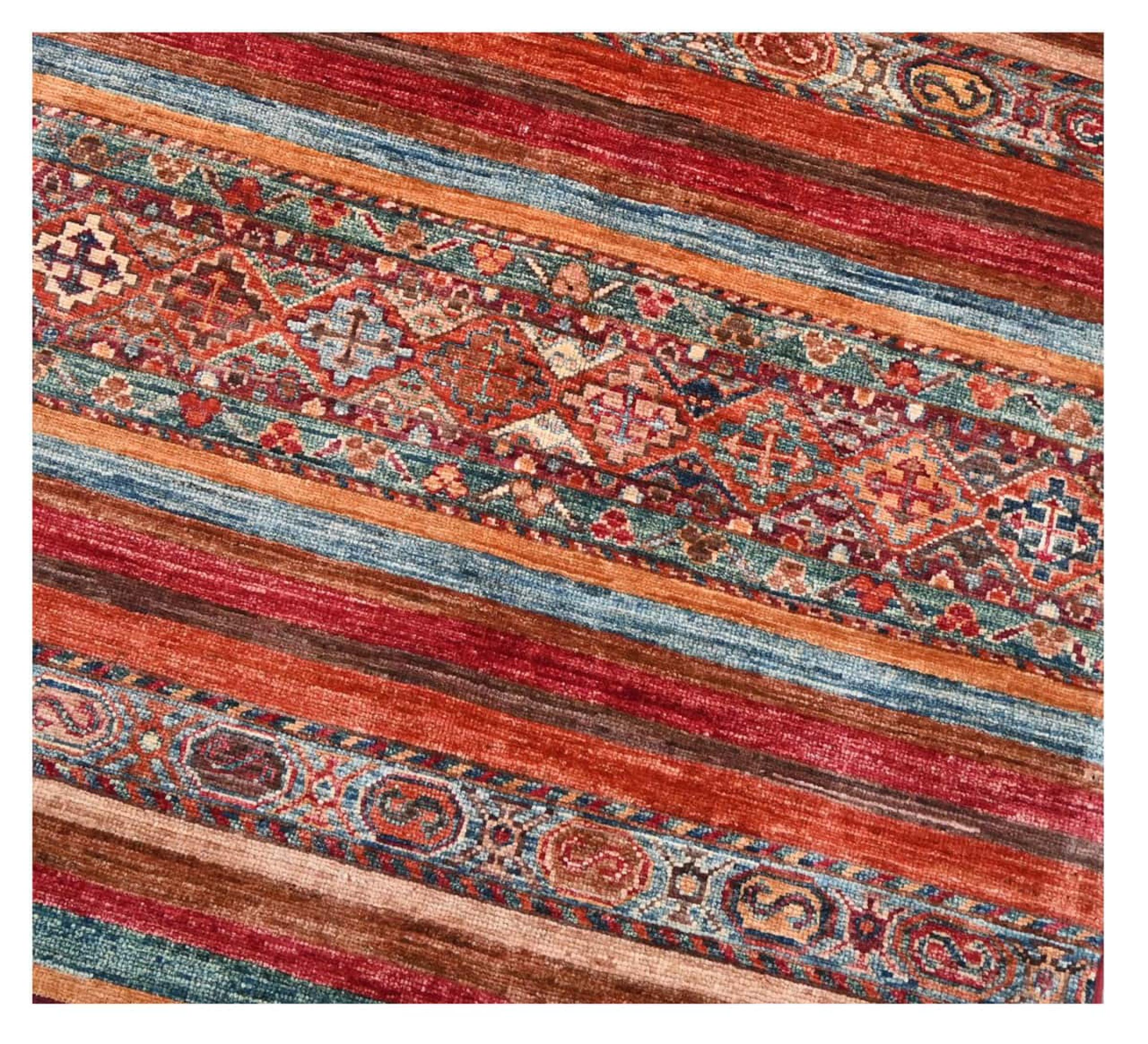 This Arijana Shaal carpet was knotted by hand in Pakistan. It promises a very high quality and thus offers long lasting pleasure. The pattern in stripes is varied and exciting. It was inspired by the well-known Moharamati design. If you find monochrome carpets too boring, you will certainly be delighted with this Arijana Shaal.