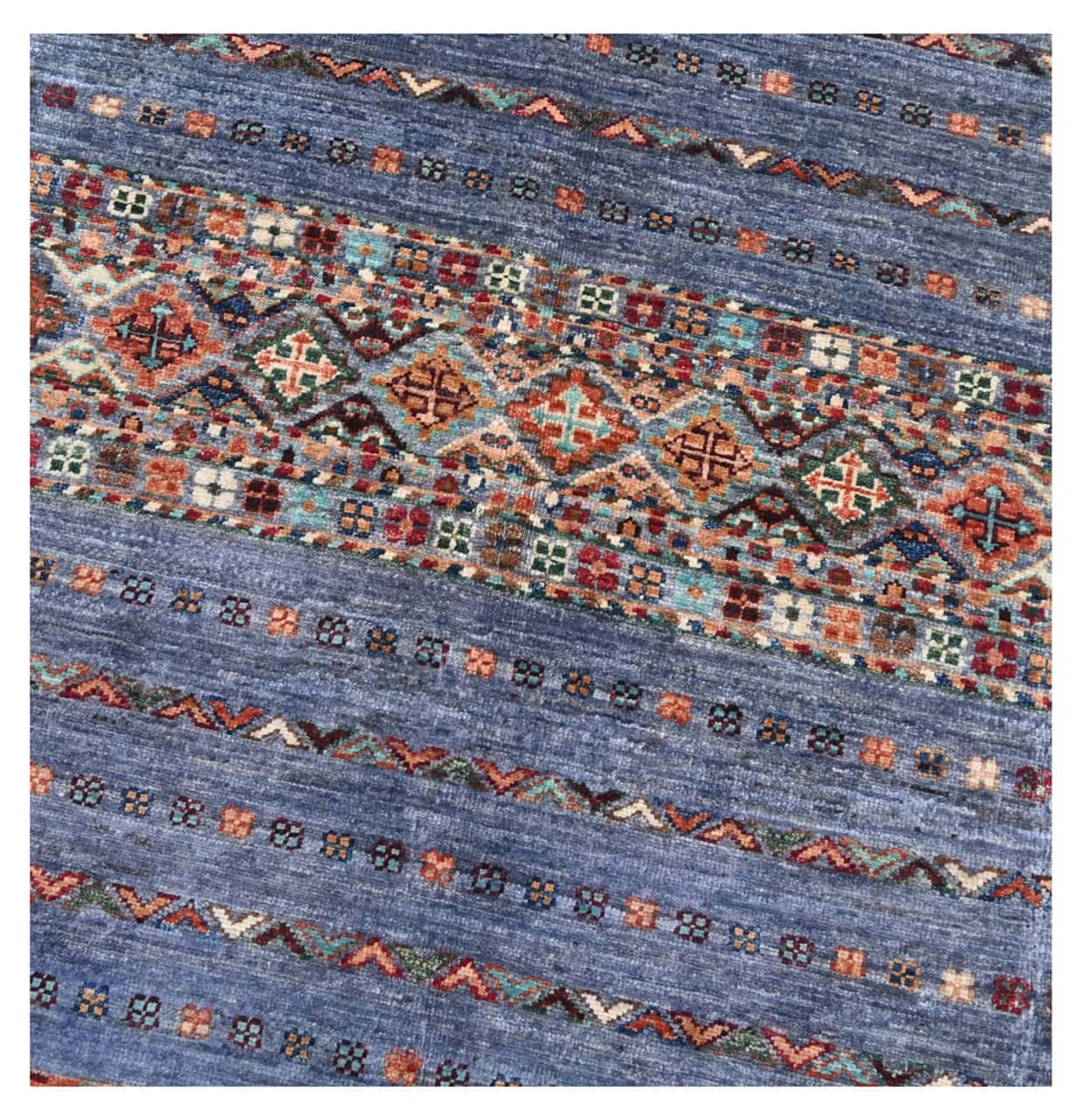 This Arijana Shaal carpet was knotted by hand in Pakistan. It promises a very high quality and thus offers long lasting pleasure. The pattern in stripes is varied and exciting. It was inspired by the well-known Moharamati design. If you find monochrome carpets too boring, you will certainly be delighted with this Arijana Shaal.