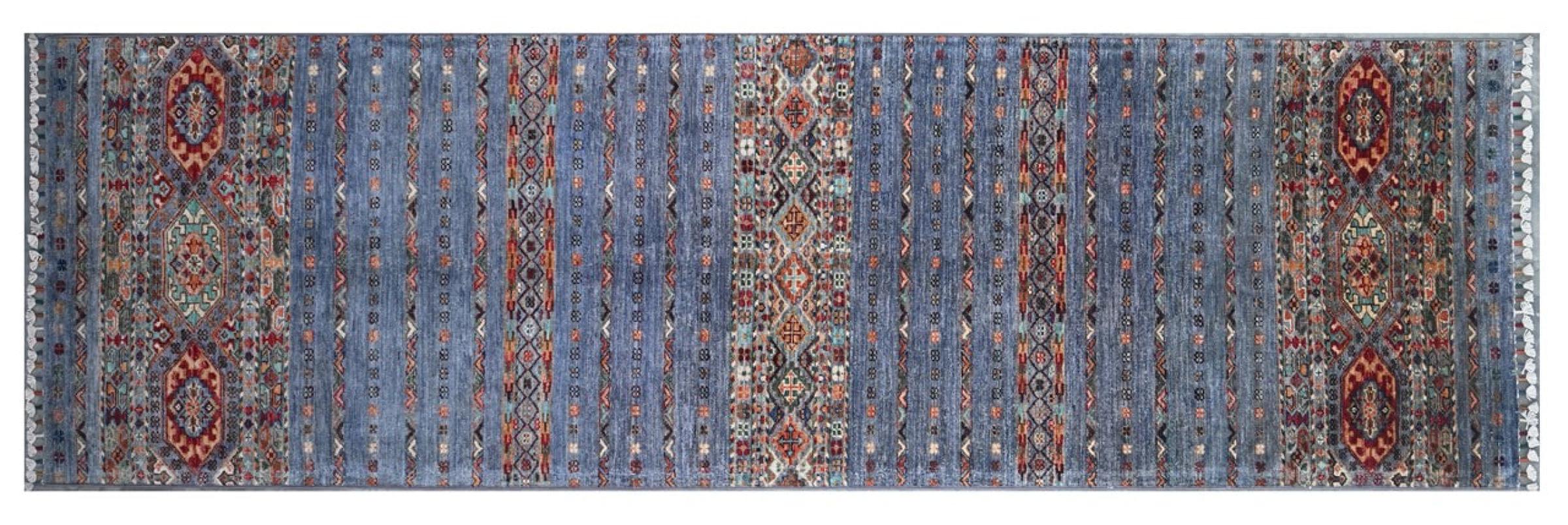 Carpet ID: 299374008360201 Size: 300x81 cm Thickness: ap. 5 mm Knot density: 144 000 - 180 000 / m² Manufacturing: Knotted by hand Pile: Handspun wool Warp: Cotton Origin: Afghanistan Age: New Weight: ap. 9 kg In stock: Unique - Only 1 in stock