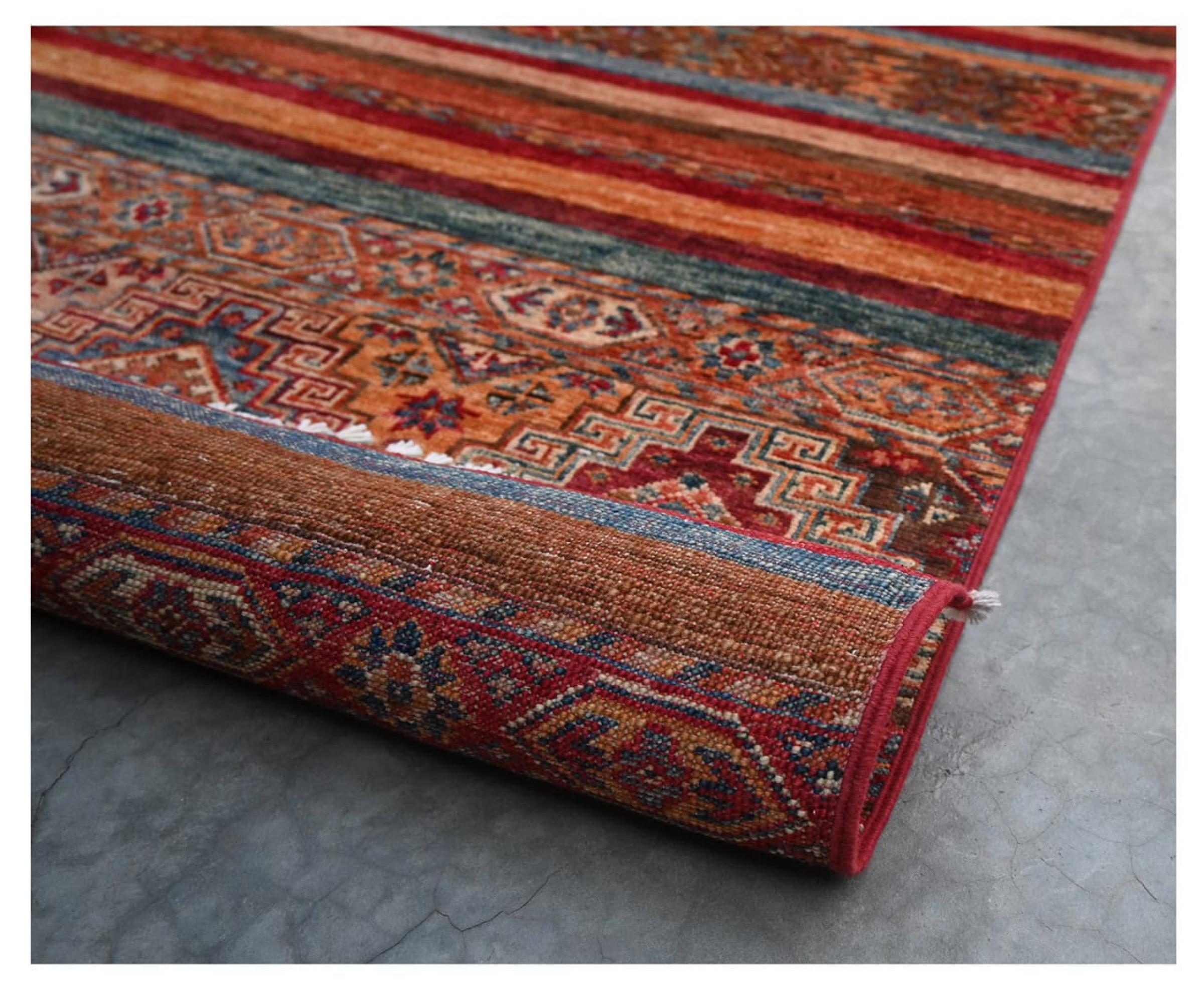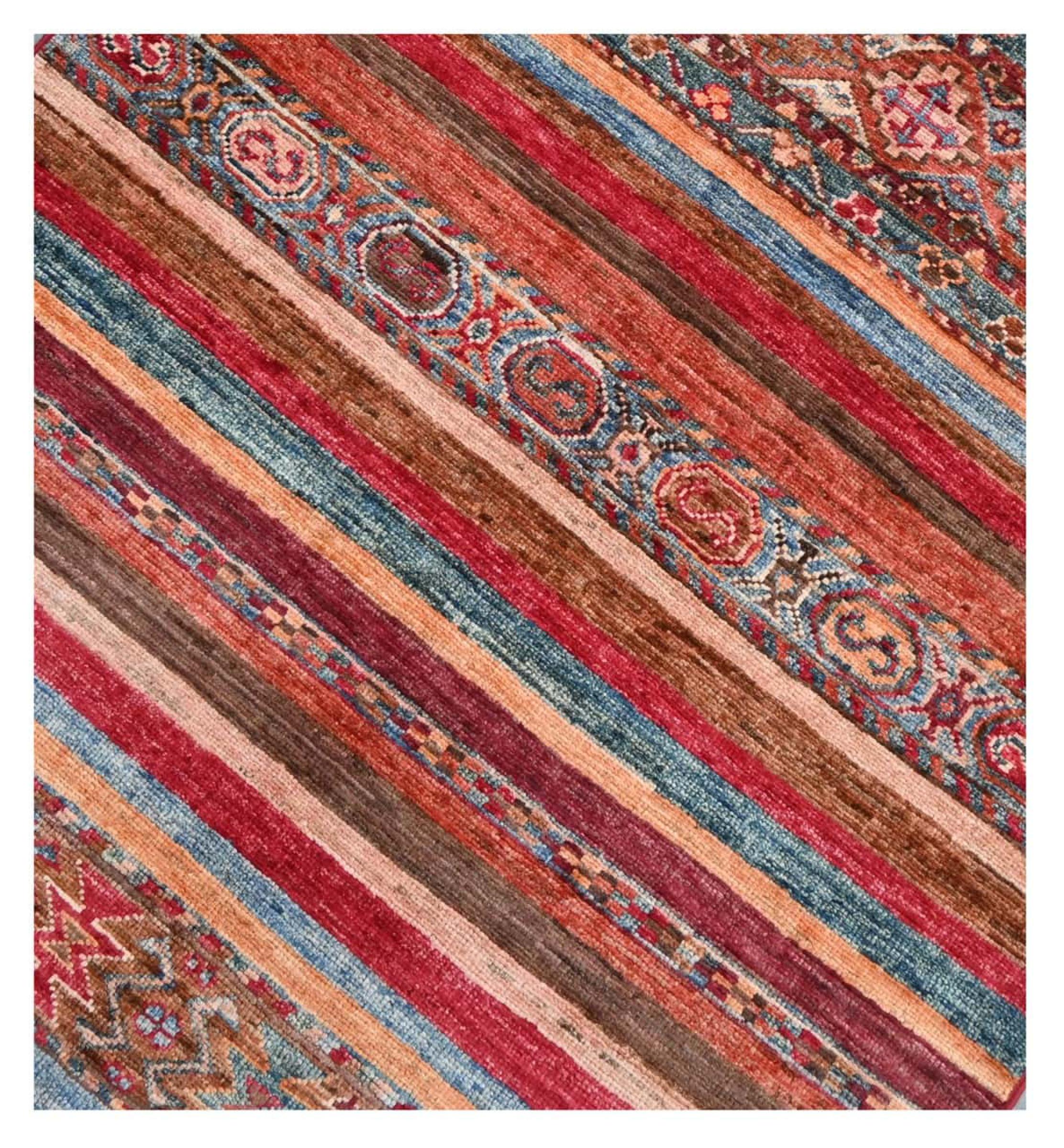 This Arijana Shaal carpet was knotted by hand in Pakistan. It promises a very high quality and thus offers long lasting pleasure. The pattern in stripes is varied and exciting. It was inspired by the well-known Moharamati design. If you find monochrome carpets too boring, you will certainly be delighted with this Arijana Shaal.