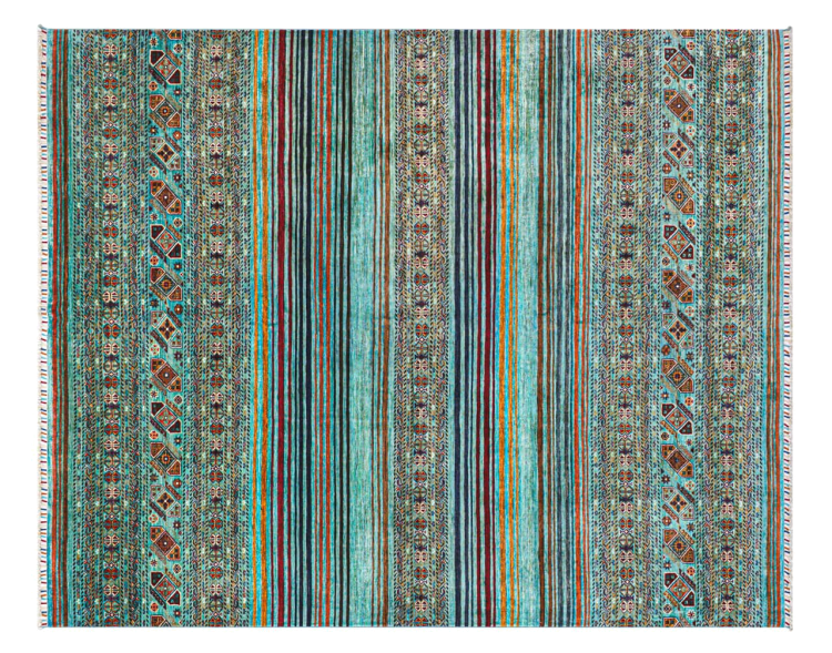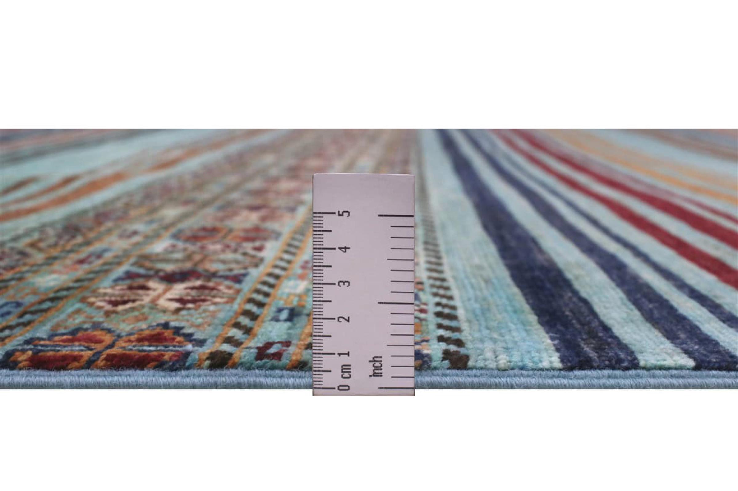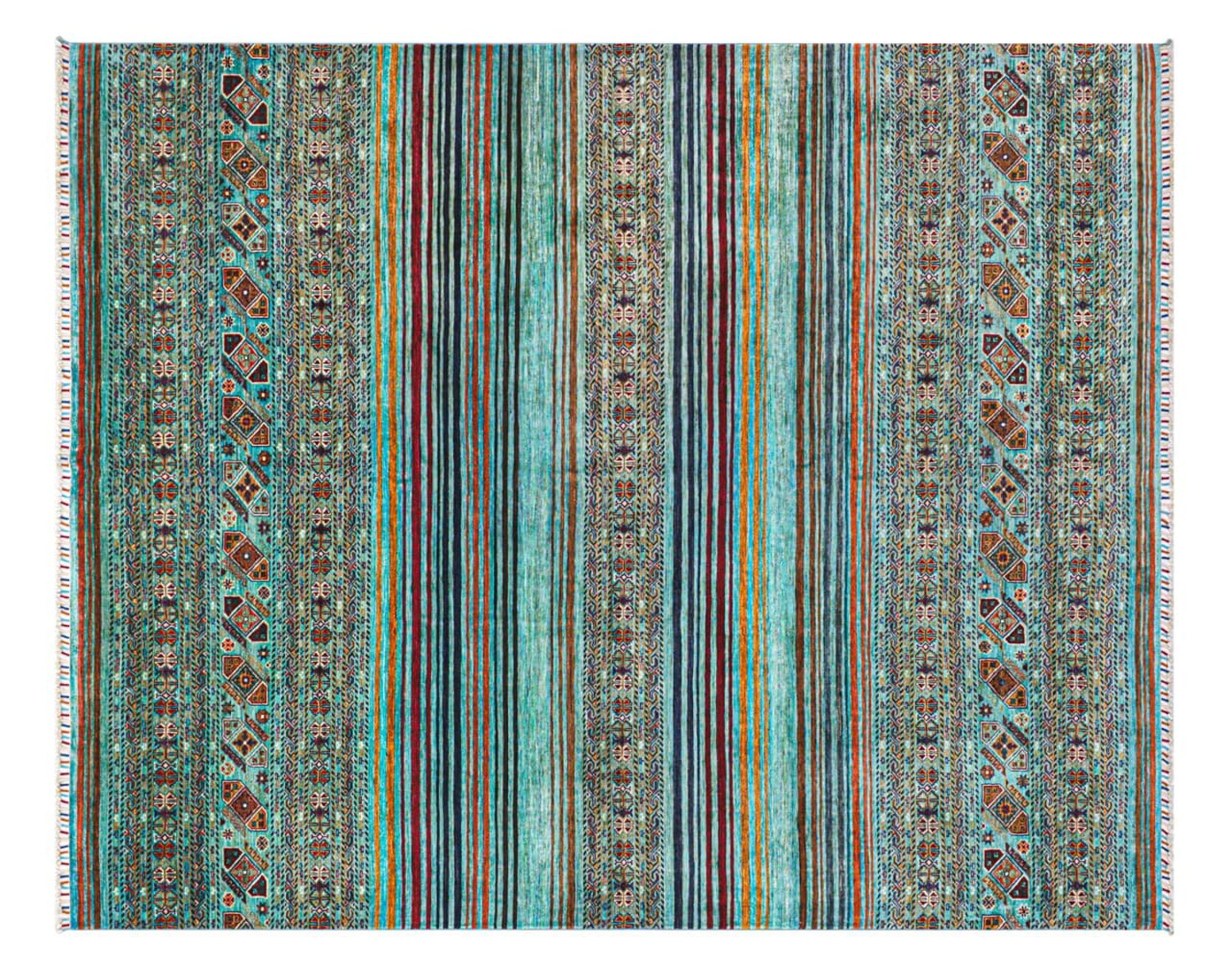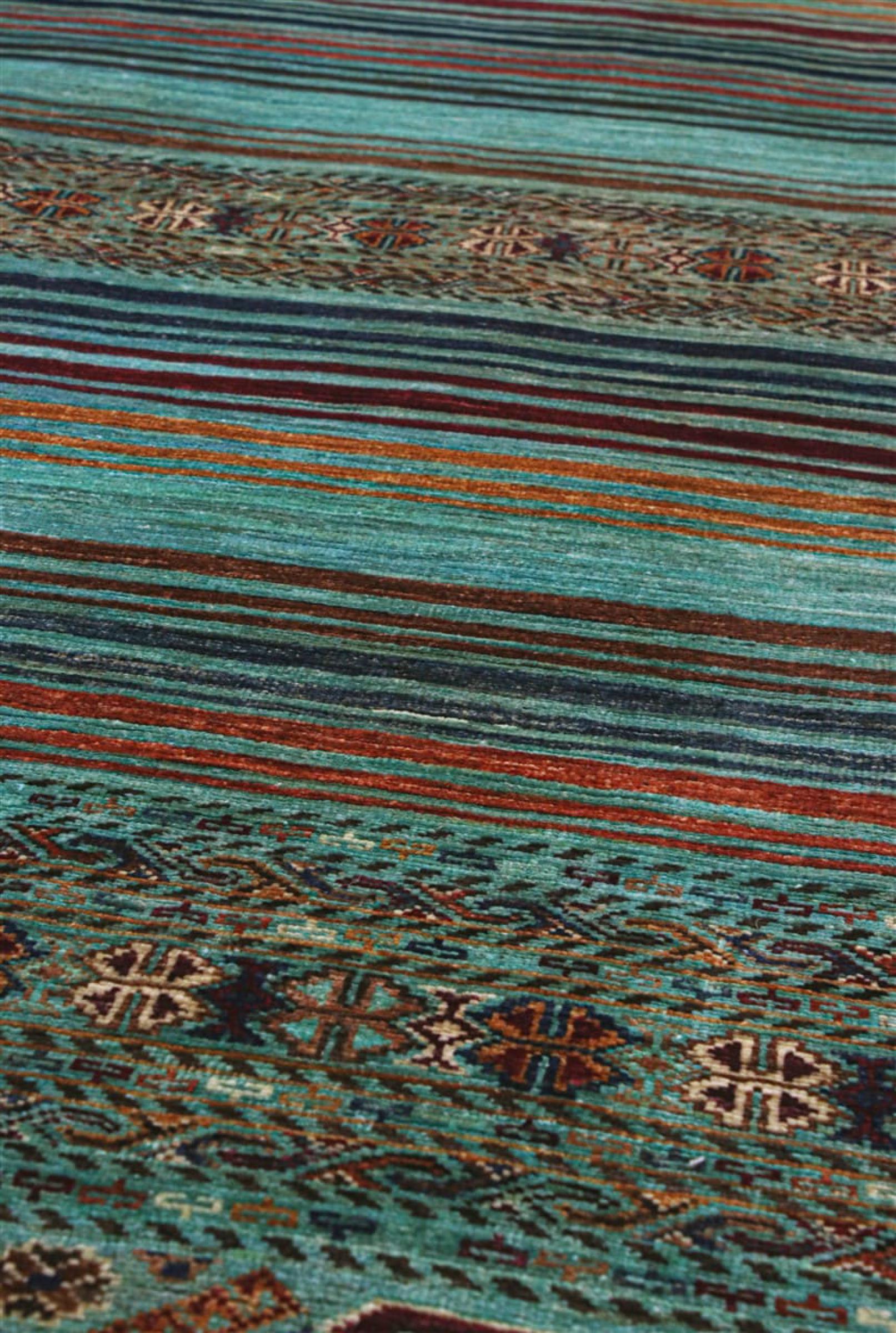 This Arijana Shaal carpet was knotted by hand in Pakistan. It promises a very high quality and thus offers long lasting pleasure. The pattern in stripes is varied and exciting. It was inspired by the well-known Moharamati design. If you find monochrome carpets too boring, you will certainly be delighted with this Arijana Shaal.