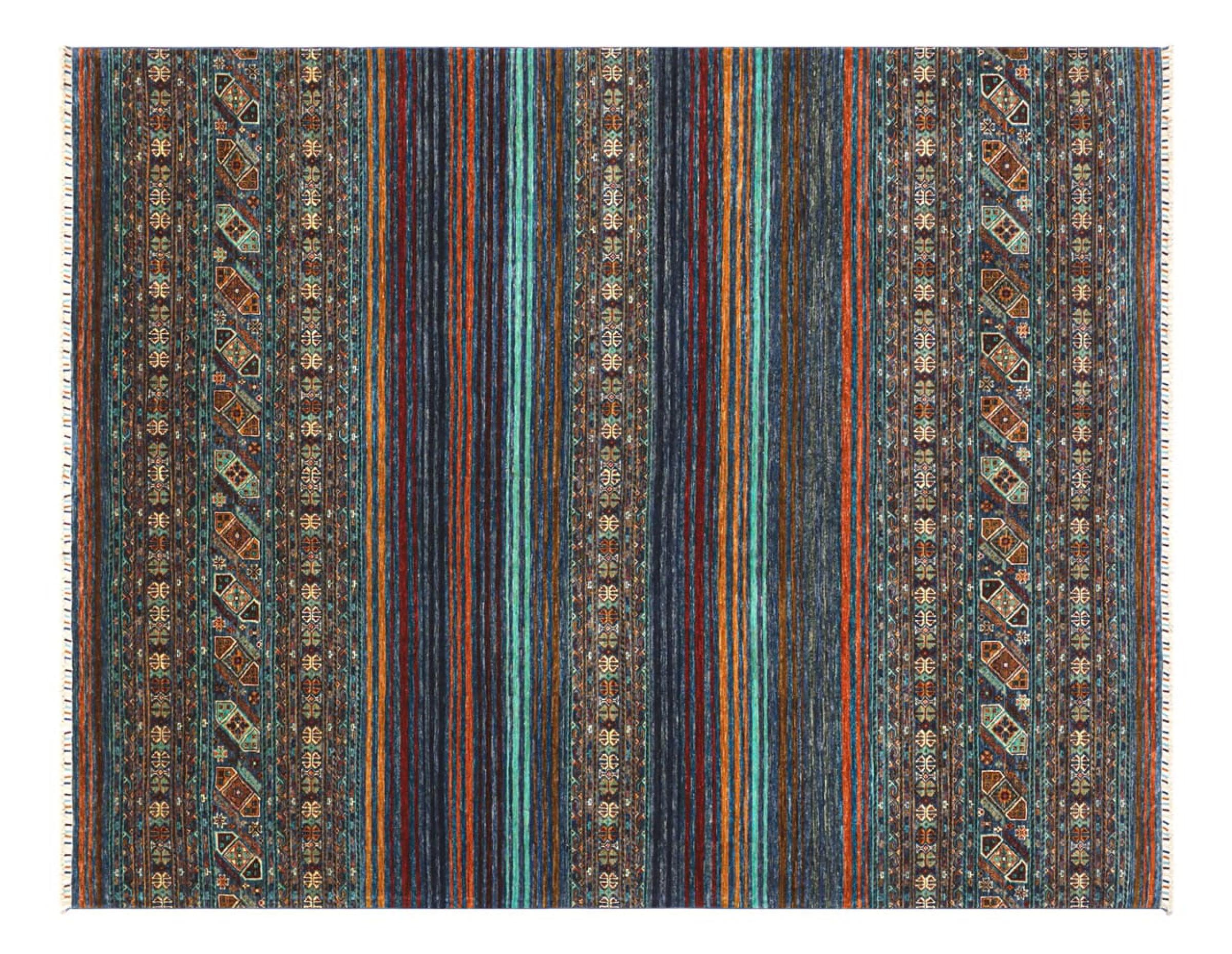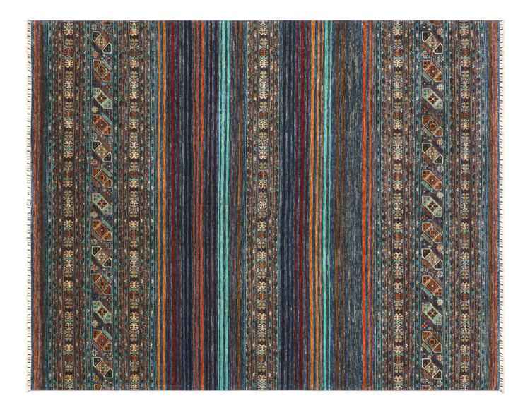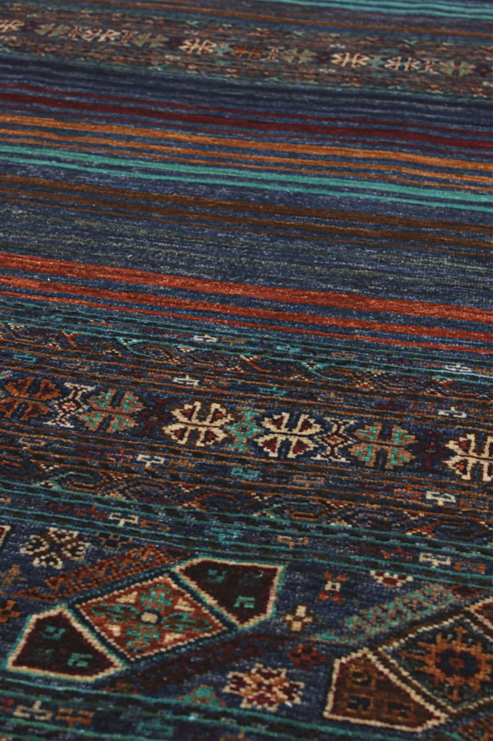 This Arijana Shaal carpet was knotted by hand in Pakistan. It promises a very high quality and thus offers long lasting pleasure. The pattern in stripes is varied and exciting. It was inspired by the well-known Moharamati design. If you find monochrome carpets too boring, you will certainly be delighted with this Arijana Shaal.
