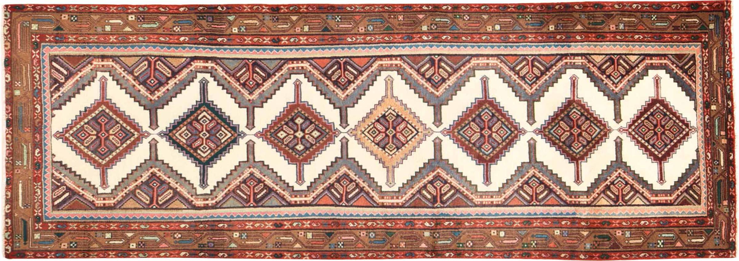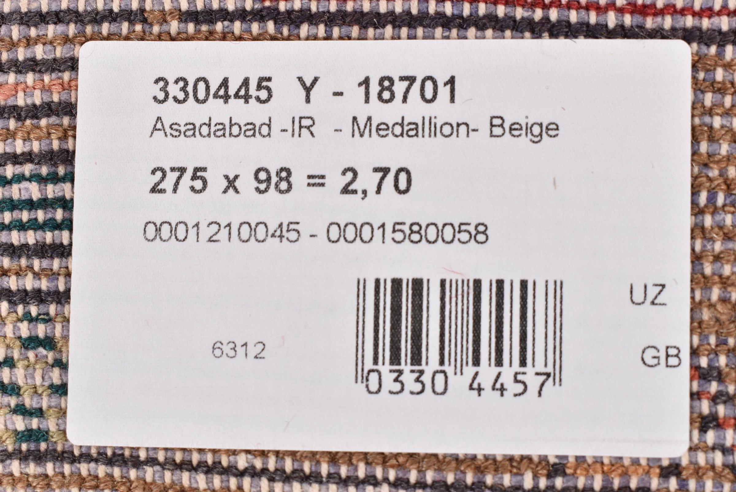 Carpet ID: 300878005575160 Size: 276x99 cm Thickness: ap. 10 mm Knot density: 128 000 - 160 000 / m² Manufacturing: Knotted by hand Pile: Handspun wool Warp: Cotton Origin: Persia Age: New Weight: ap. 10 kg Also know as Huseinabad In stock: Unique - Only 1 in stock