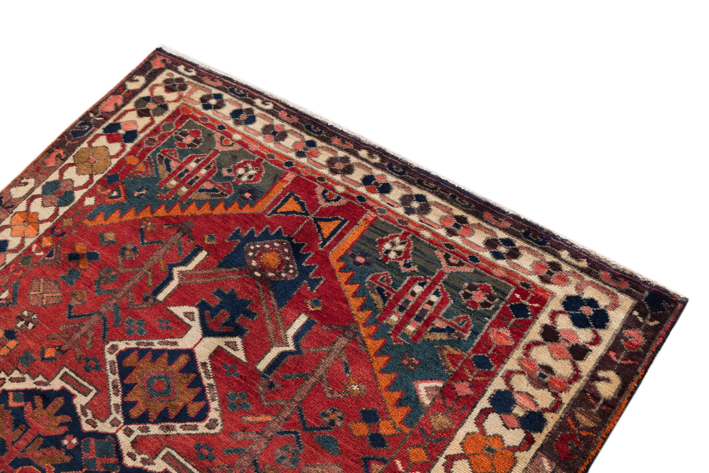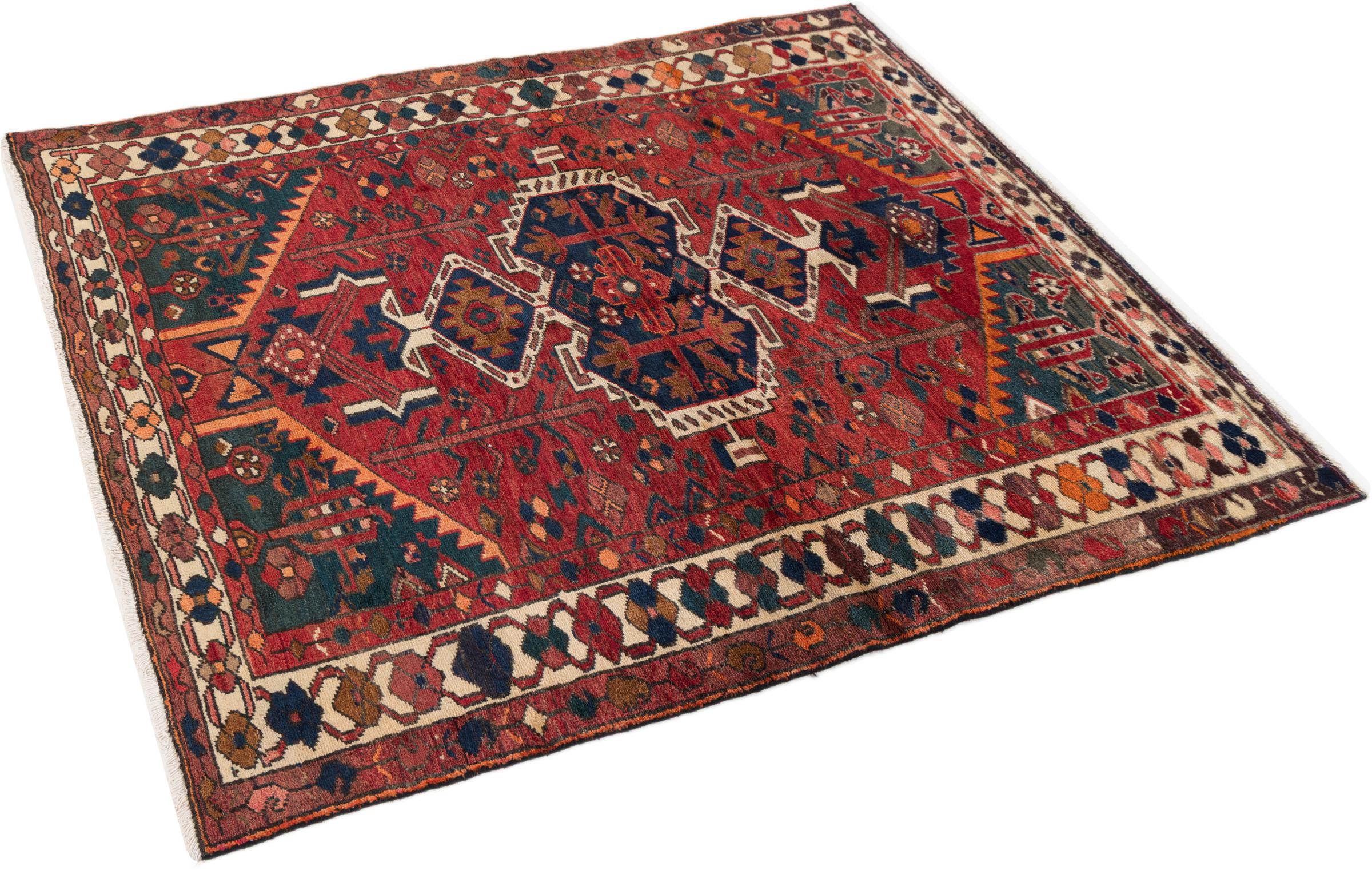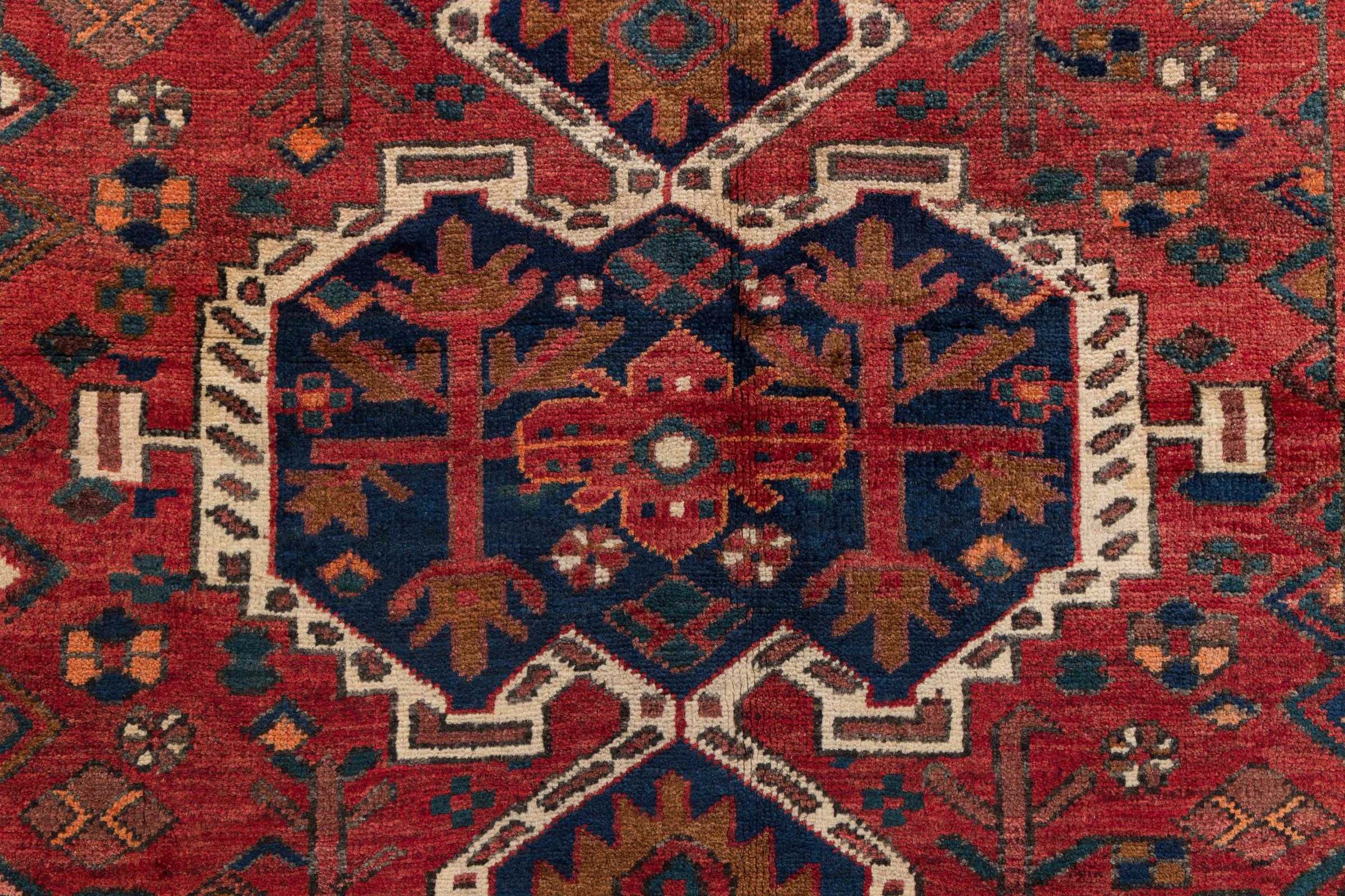 This rug belongs to village and nomadic rugs from Iran, formerly Persia. This type of rug is knotted by hand in smaller towns and villages in old tradition. Even nomads still knot Persian rugs in the open air. The rugs are knotted without a draft and completely from the mind. They are characterized by classical ornaments, which are arranged in straight and geometrical patterns. Thanks to their cultural-traditional origin, these rugs have a unique character that embodies ancient Persia.