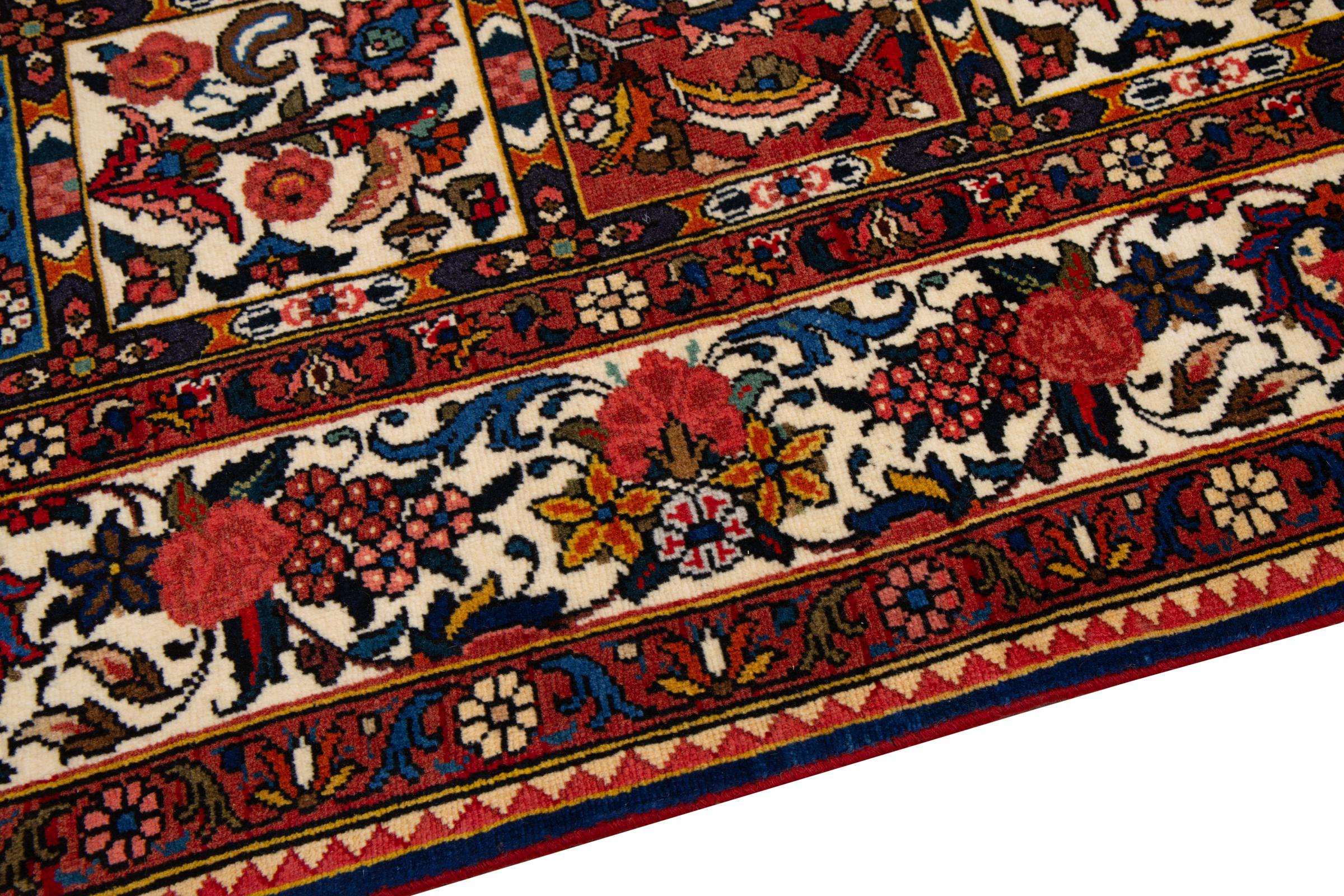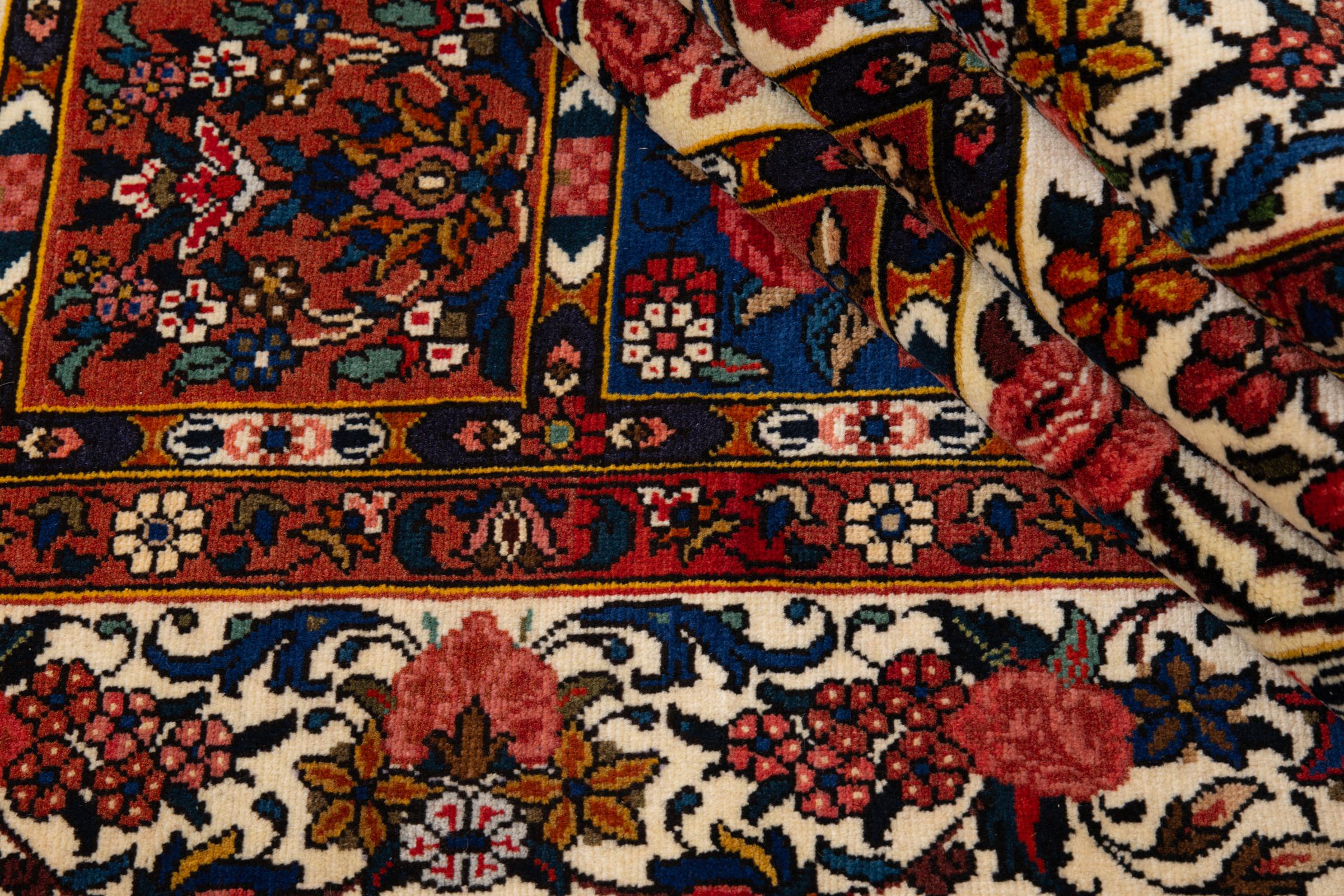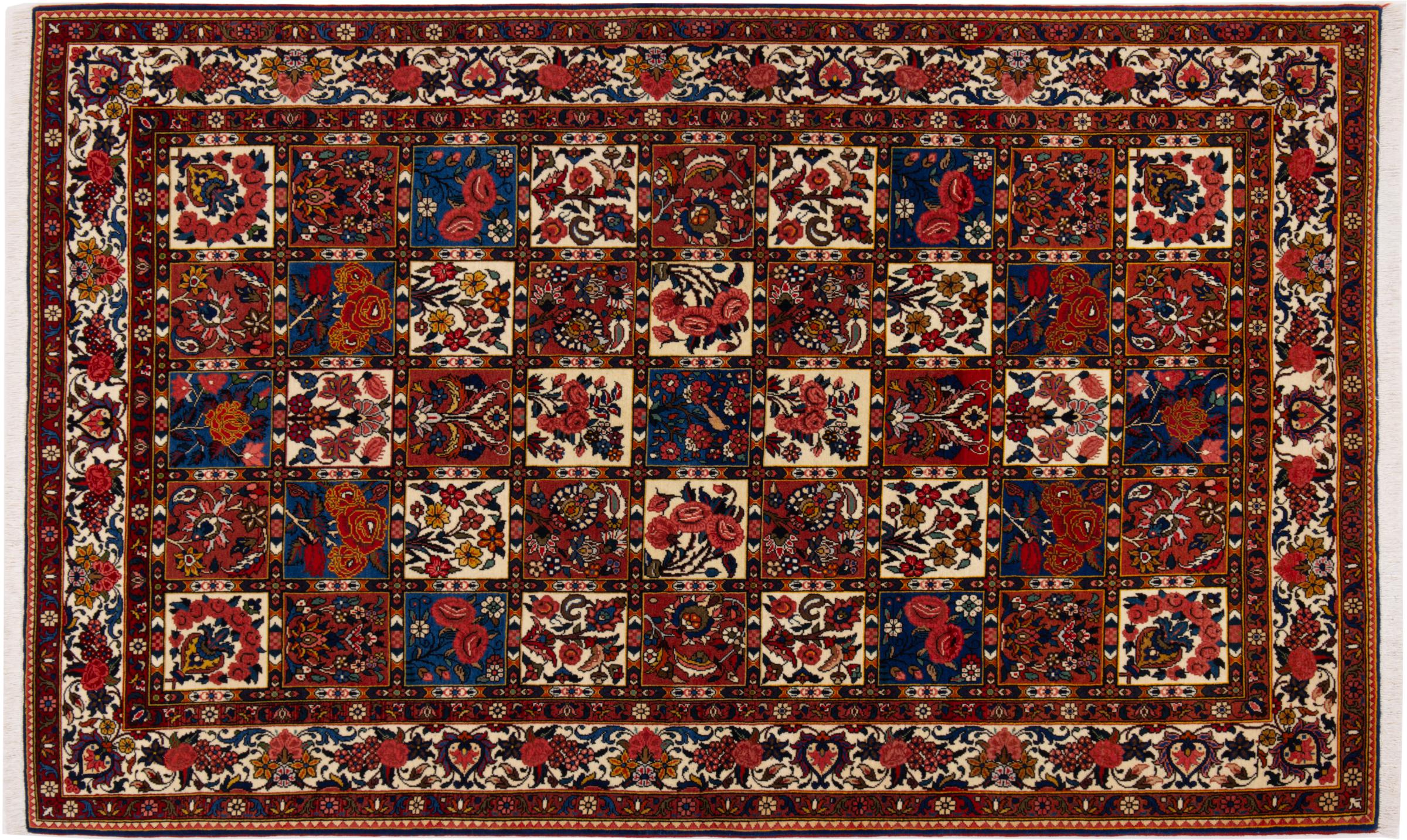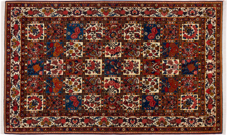 This Persian Bakhtiari was hand-knotted by nomads of the Bakhtiari tribe. This Persian carpet plays with the colours of the Orient in the most beautiful patterns. The design of its ornaments is inspired by Persian gardens. Over the years, the so-called traditional garden design has gained great popularity in the western world. Its high knotting density in combination with the strong yarn promises a long-lasting pleasure of Persian carpet art.