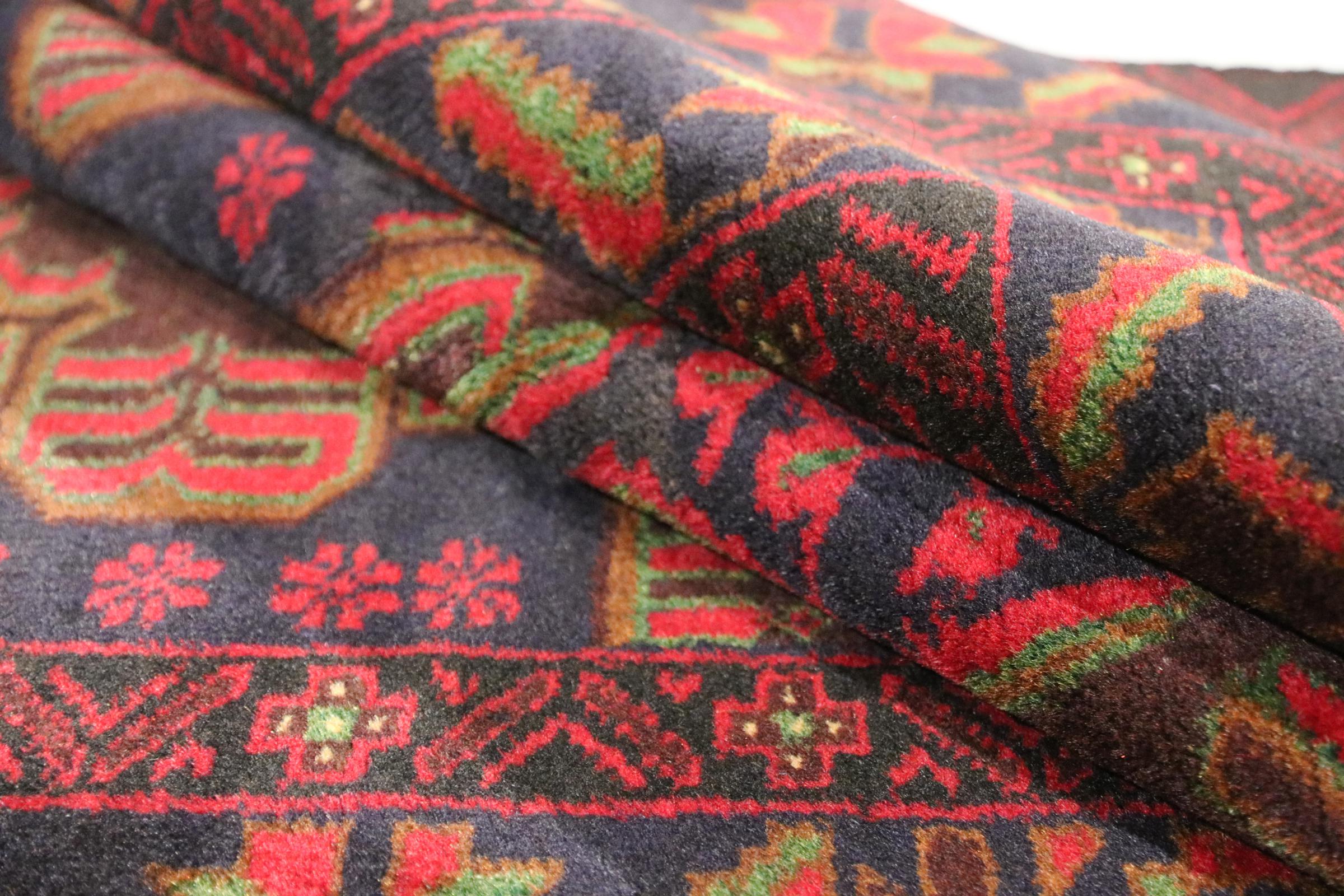 Carpet ID: 136199006533238 Size: 189x108 cm Thickness: ap. 6 mm Knot density: 200 000 - 250 000 / m² Manufacturing: Knotted by hand Pile: Sheep wool Warp: Cotton Origin: Afghanistan Age: New Weight: ap. 5 kg In stock: Unique