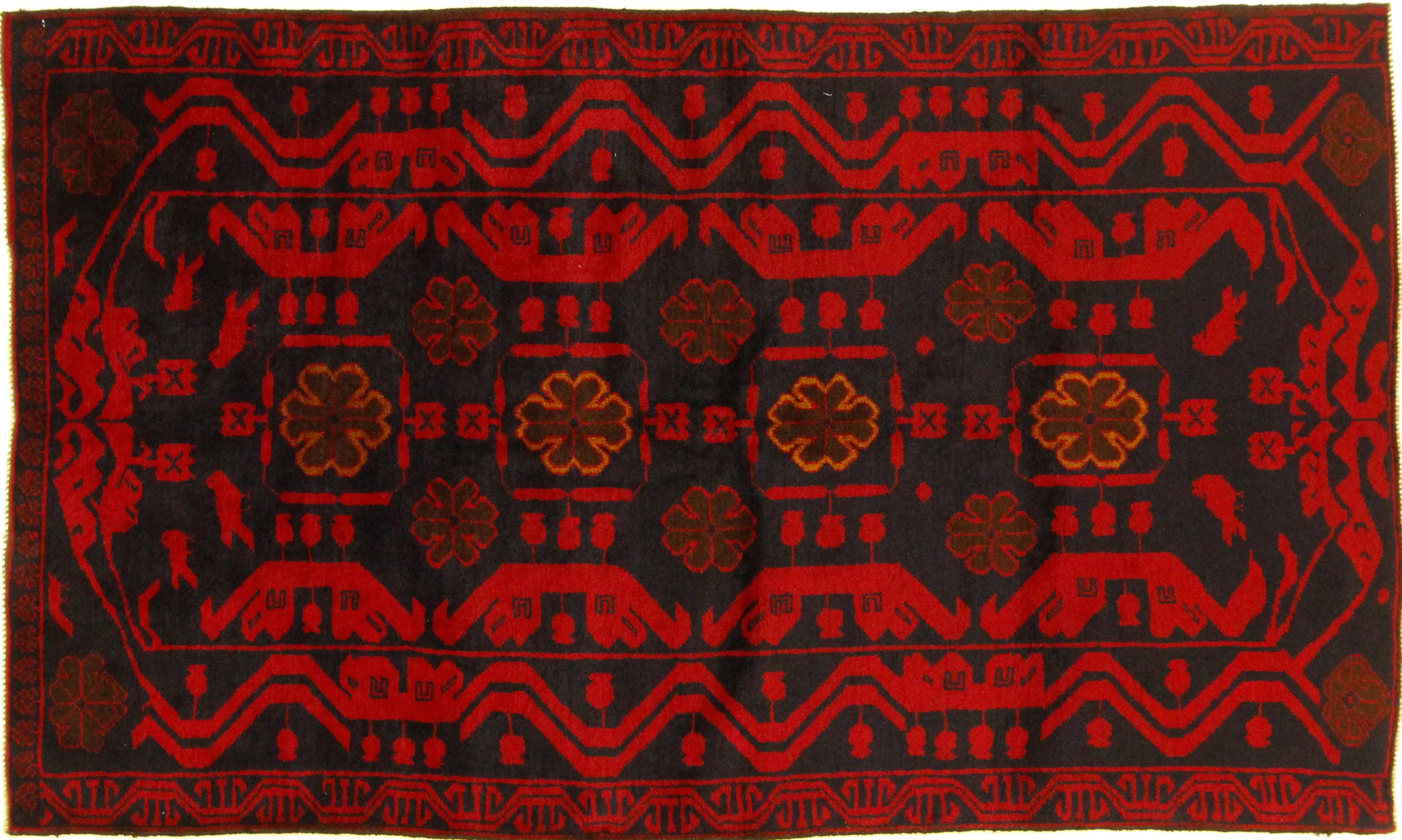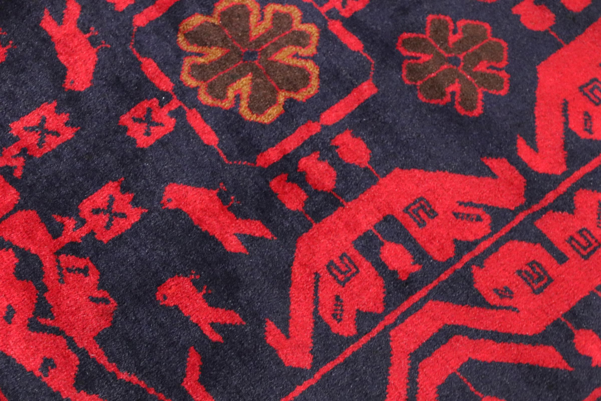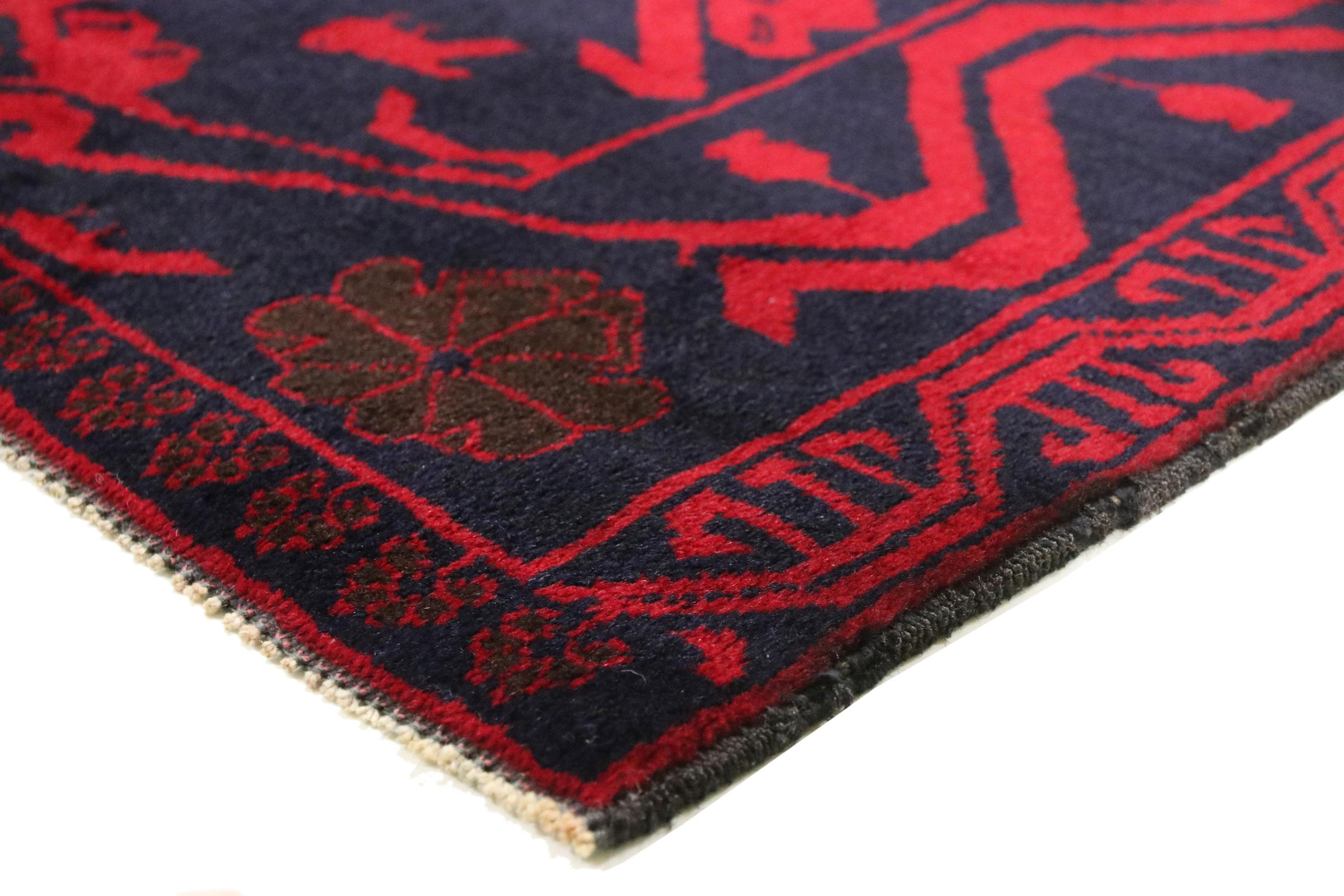 Carpet ID: 136179007182373 Size: 192x105 cm Thickness: ap. 6 mm Knot density: 200 000 - 250 000 / m² Manufacturing: Knotted by hand Pile: Sheep wool Warp: Cotton Origin: Afghanistan Age: New Weight: ap. 5 kg In stock: Unique