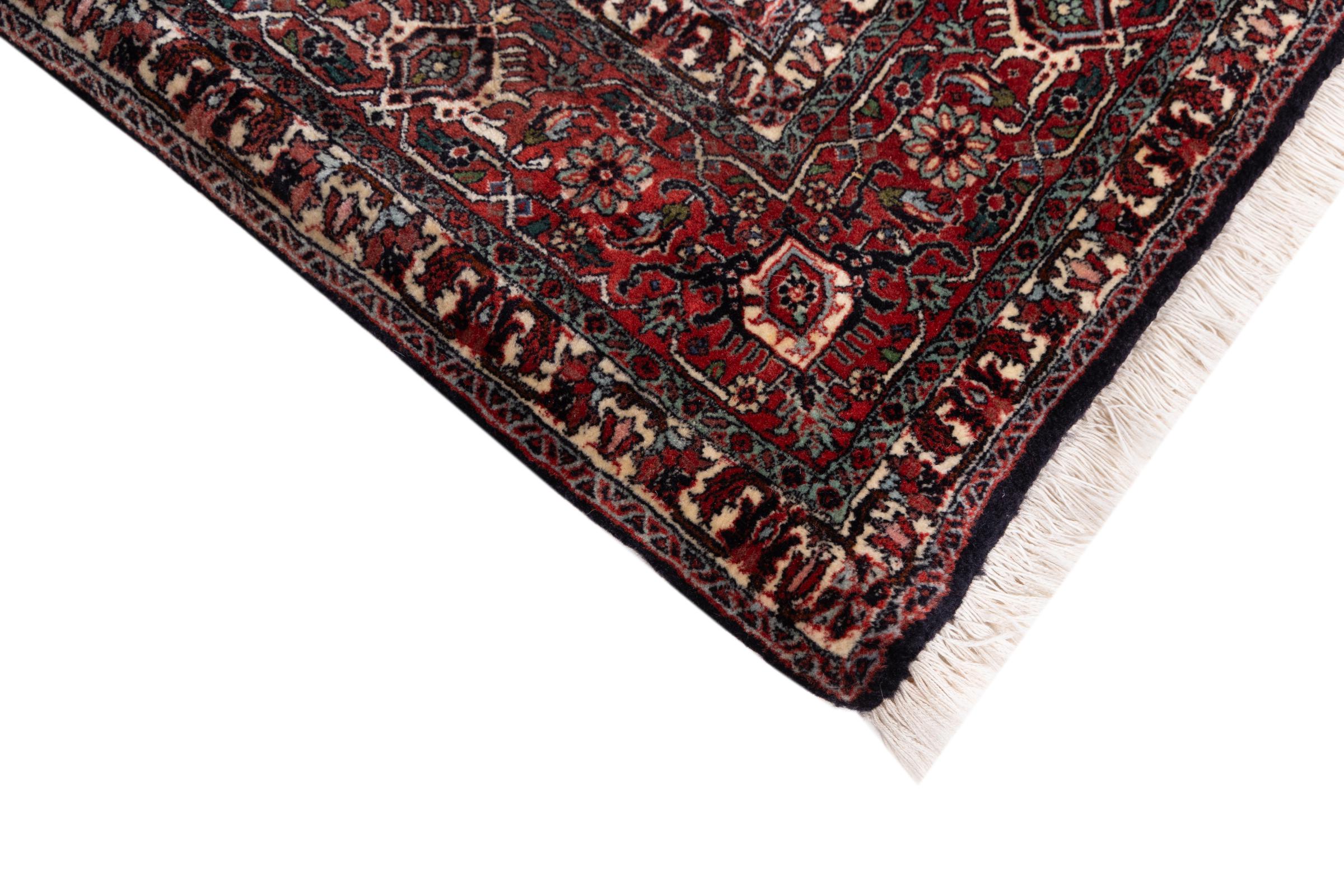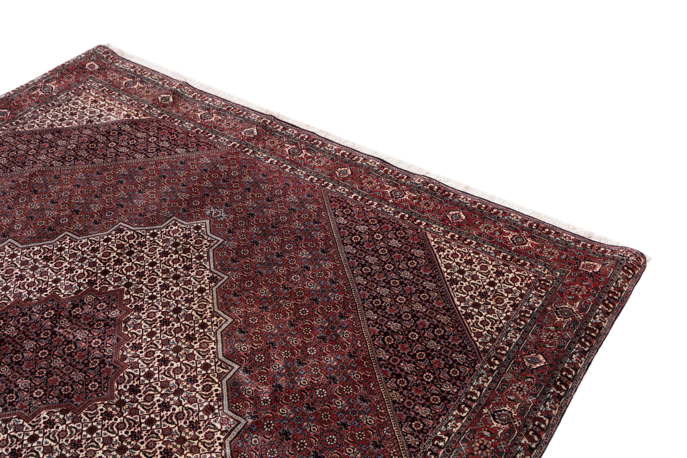 This Persian carpet has been crafted in a small Kurdish town in Western Persia. Bidjar carpets stand for high quality and contemporary design. With geometric patterns and ornaments it is highly popular even for modern interior concepts. Additionally, its compact pile is popular due to its resilience and robustness. This Persian rug made by a Kurdish minority is a great and long-lasting choice you wouldn't want to miss anymore.