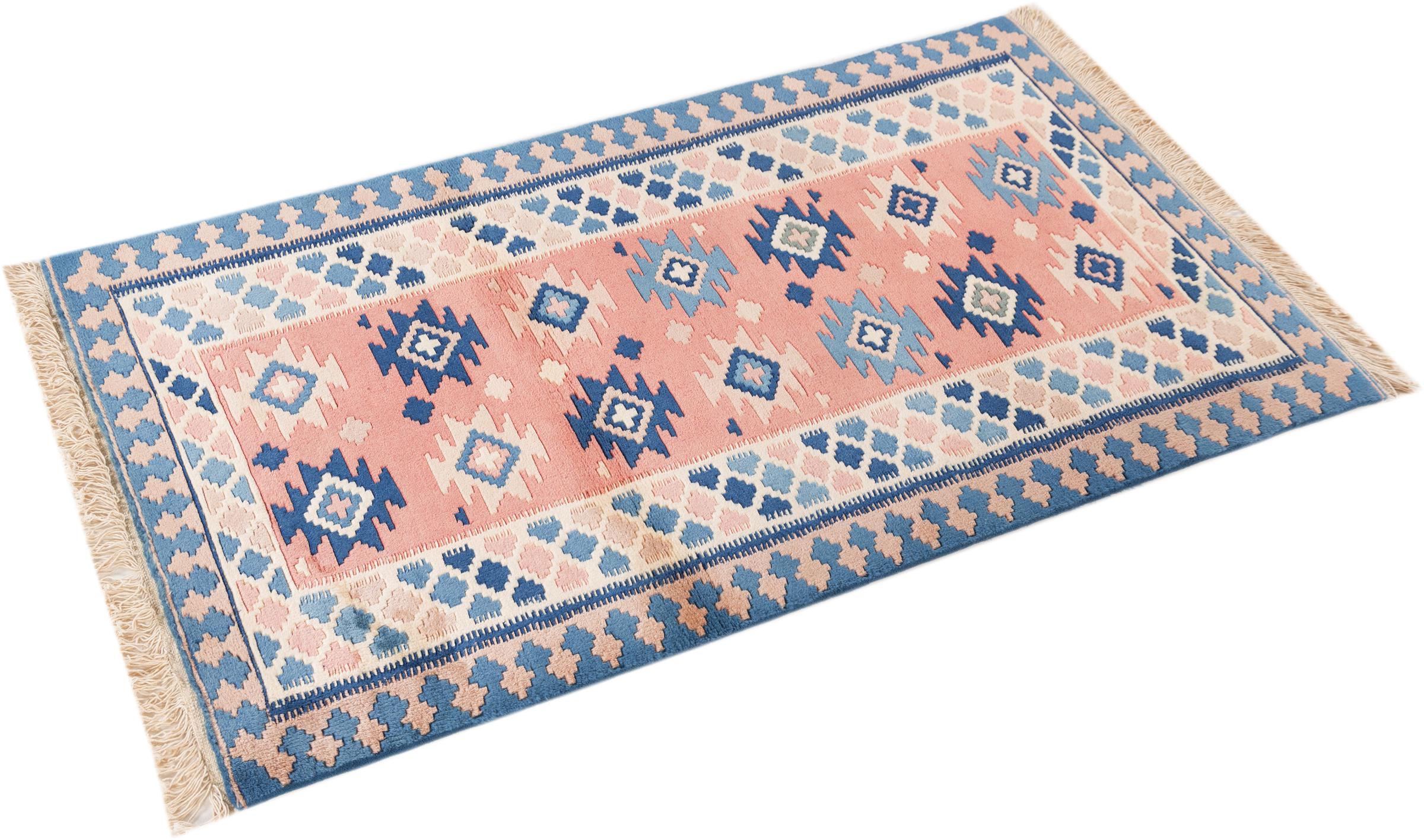 Carpet ID: 296389005469 Size: 130x65 cm Thickness: ap. 15 mm Knot density: 72 000 - 90 000 / m² Manufacturing: Knotted by hand Pile: Handspun wool Warp: Cotton Origin: China Age: New Weight: ap. 3 kg Also know as Kina, Chinois, Cina In stock: Unique - Only 1 in stock