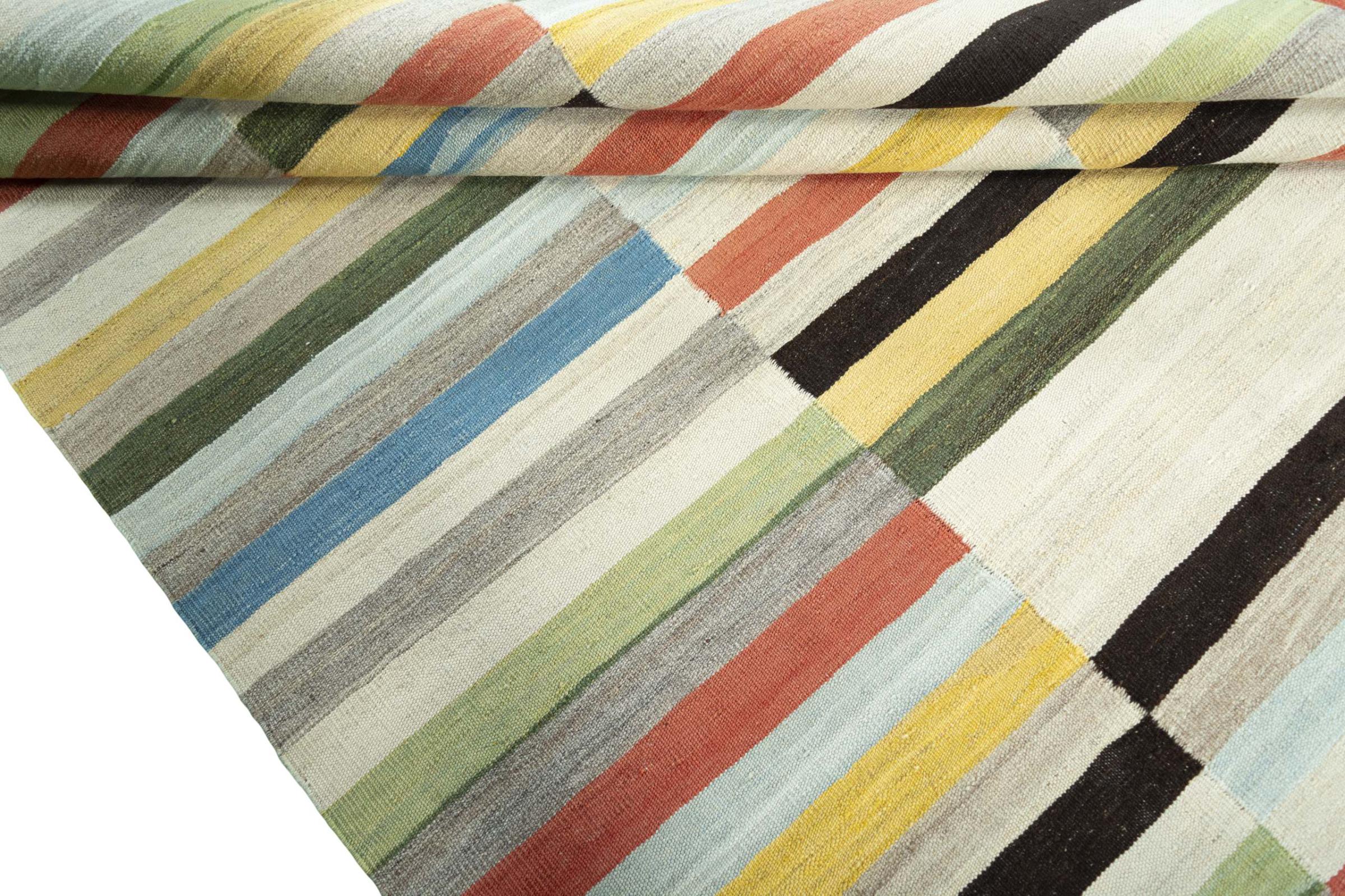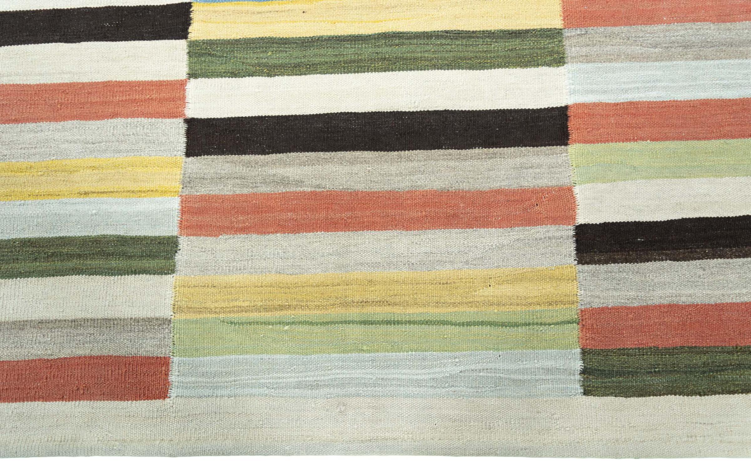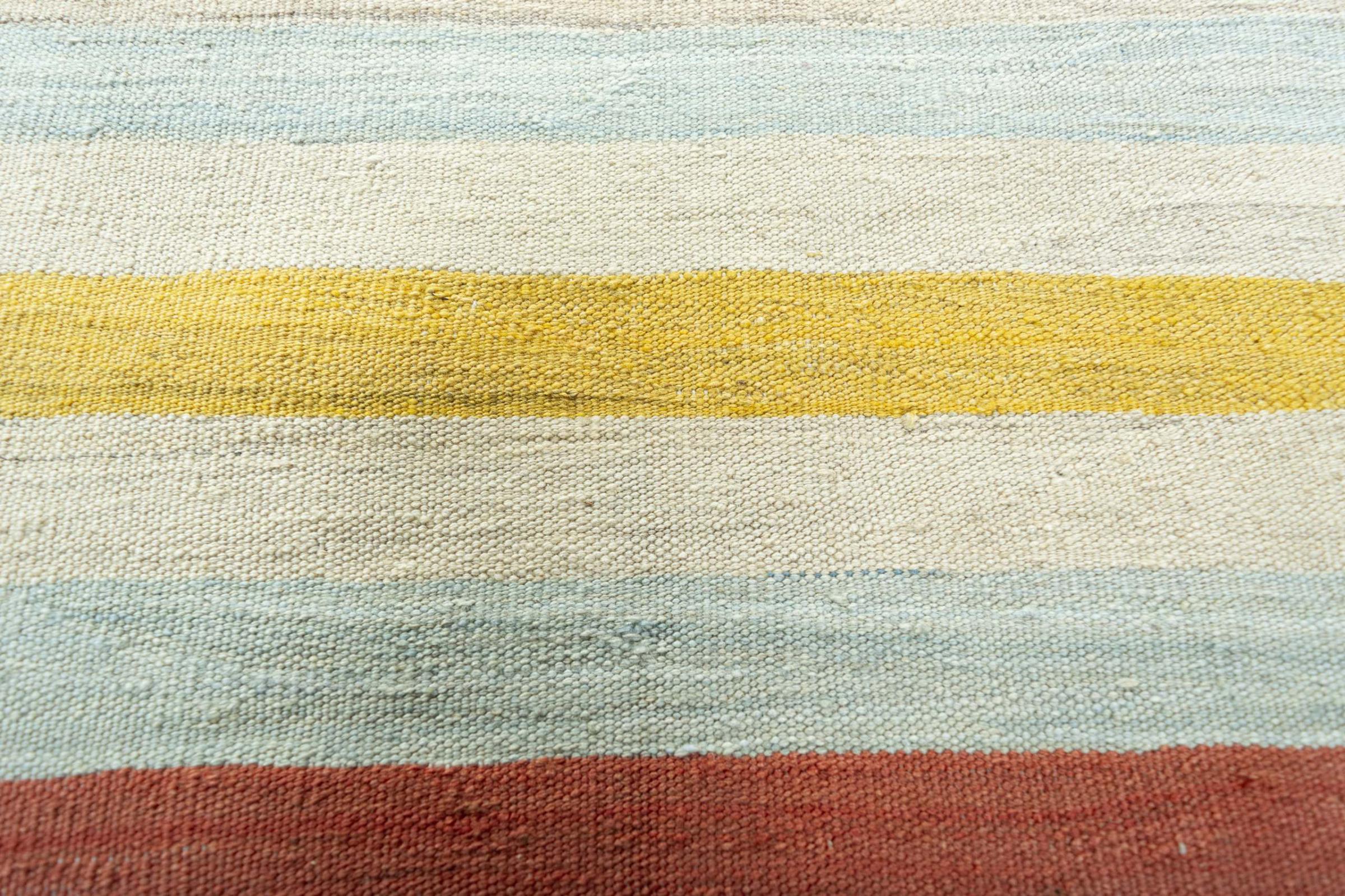 This Eylisian is a particularly high-quality, modern, flat-woven design kilim. Its hand-spun/natural wool was hand-woven according to contemporary design using traditional Persian technique. Its robust, long-lasting quality makes it a popular, contemporary and timeless eye-catcher in your home.