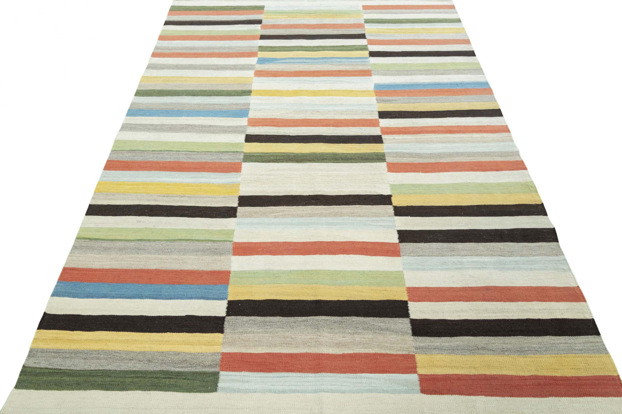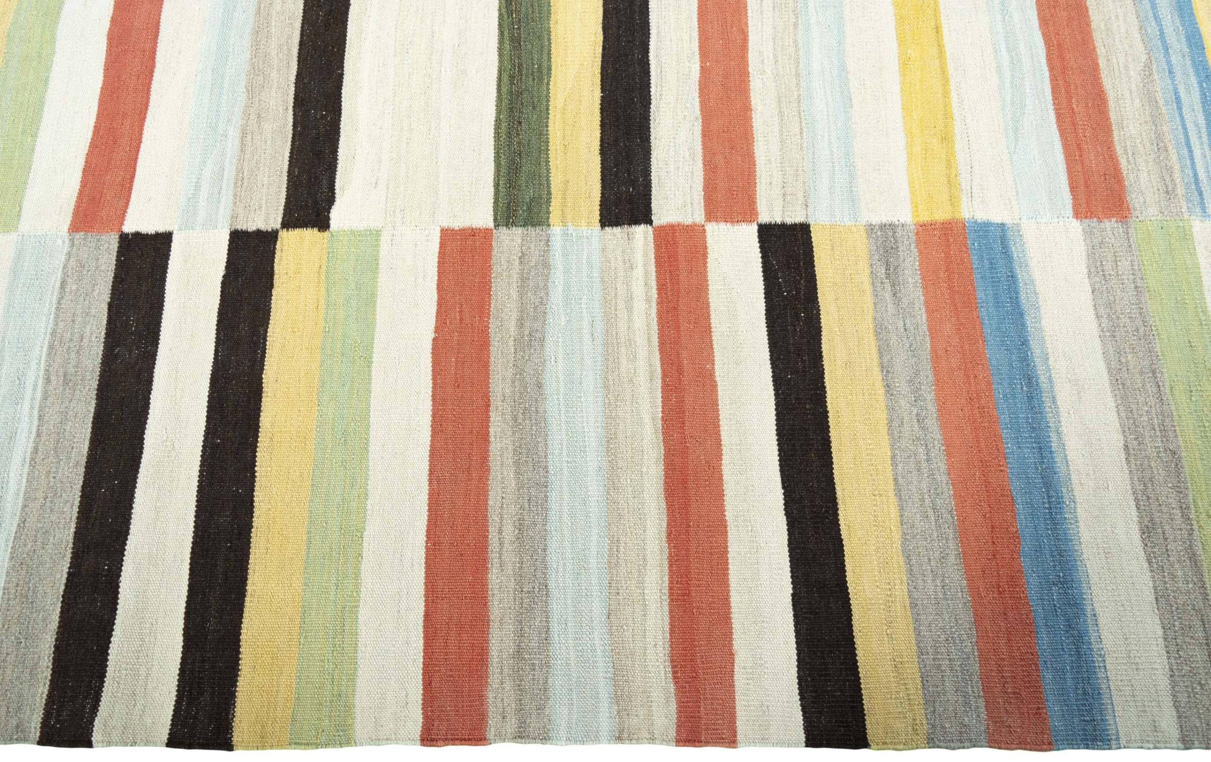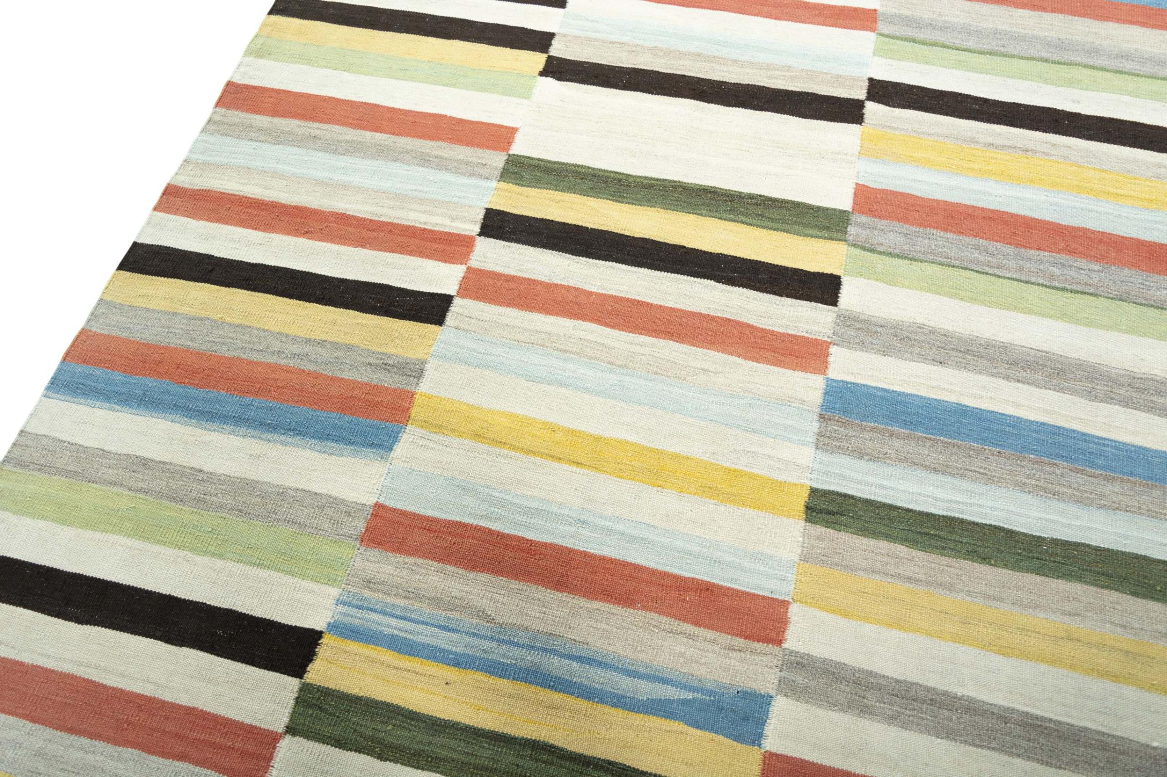 This Eylisian is a particularly high-quality, modern, flat-woven design kilim. Its hand-spun/natural wool was hand-woven according to contemporary design using traditional Persian technique. Its robust, long-lasting quality makes it a popular, contemporary and timeless eye-catcher in your home.