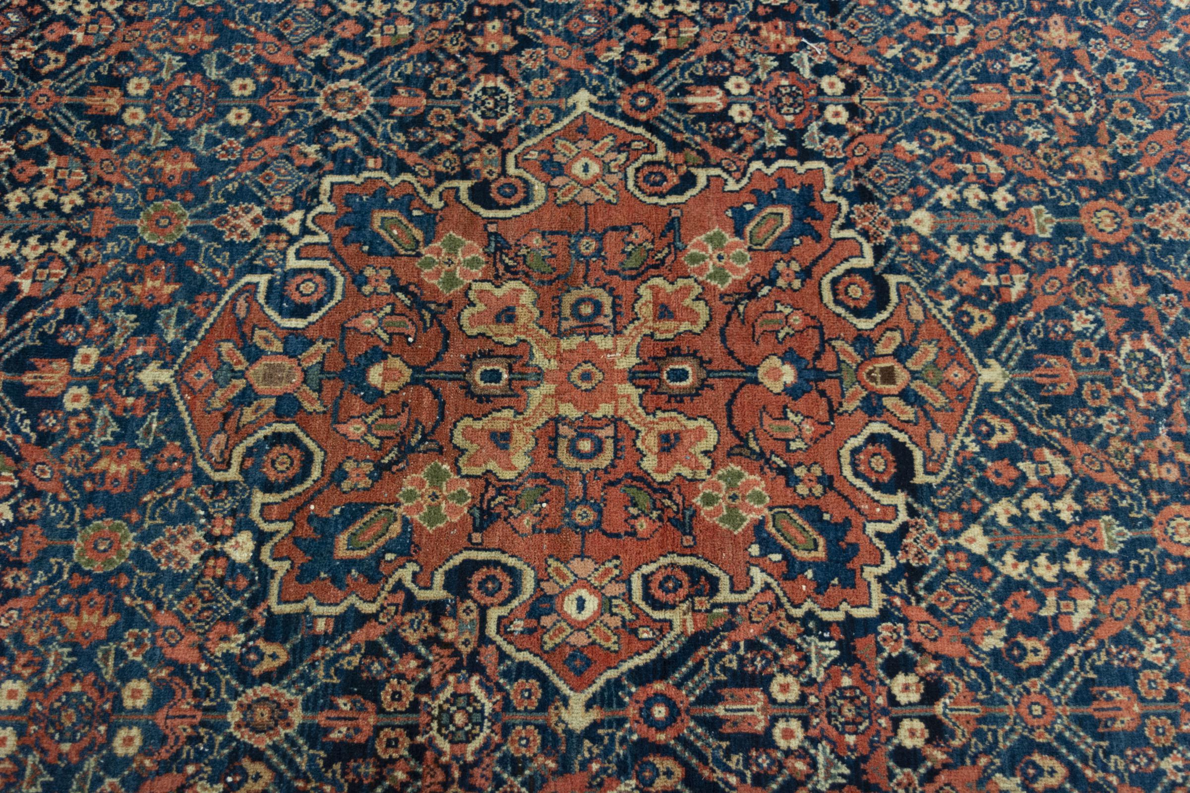 Carpet ID: 285768008790669 Size: 195x129 cm Thickness: ap. 8 mm Knot density: 120 000 - 150 000 / m² Manufacturing: Knotted by hand Pile: Handspun wool Warp: Cotton Condition / Conservation There is minor wear on certain areas of the carpet Origin: Persia Age: Antique, over 80 years Weight: ap. 8 kg Also know as Arak , Sarough, Sarouk, Saruk, Saroq, Sultanabad In stock: Unique - Only 1 in stock
