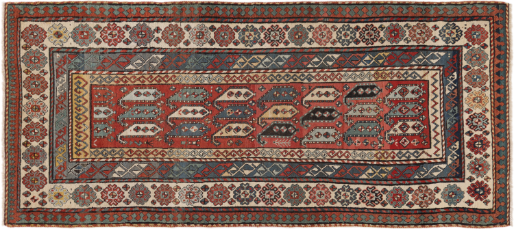 Carpet ID: 29871900621 Size: 245x112 cm Thickness: ap. 12 mm Knot density: 270 000 - 300 000 / m² Manufacturing: Knotted by hand Pile: Handspun wool Warp: Sheep wool Condition / Conservation Perfect Origin: Persia Age: Antique, over 80 years Weight: ap. 10 kg In stock: Unique - Only 1 in stock