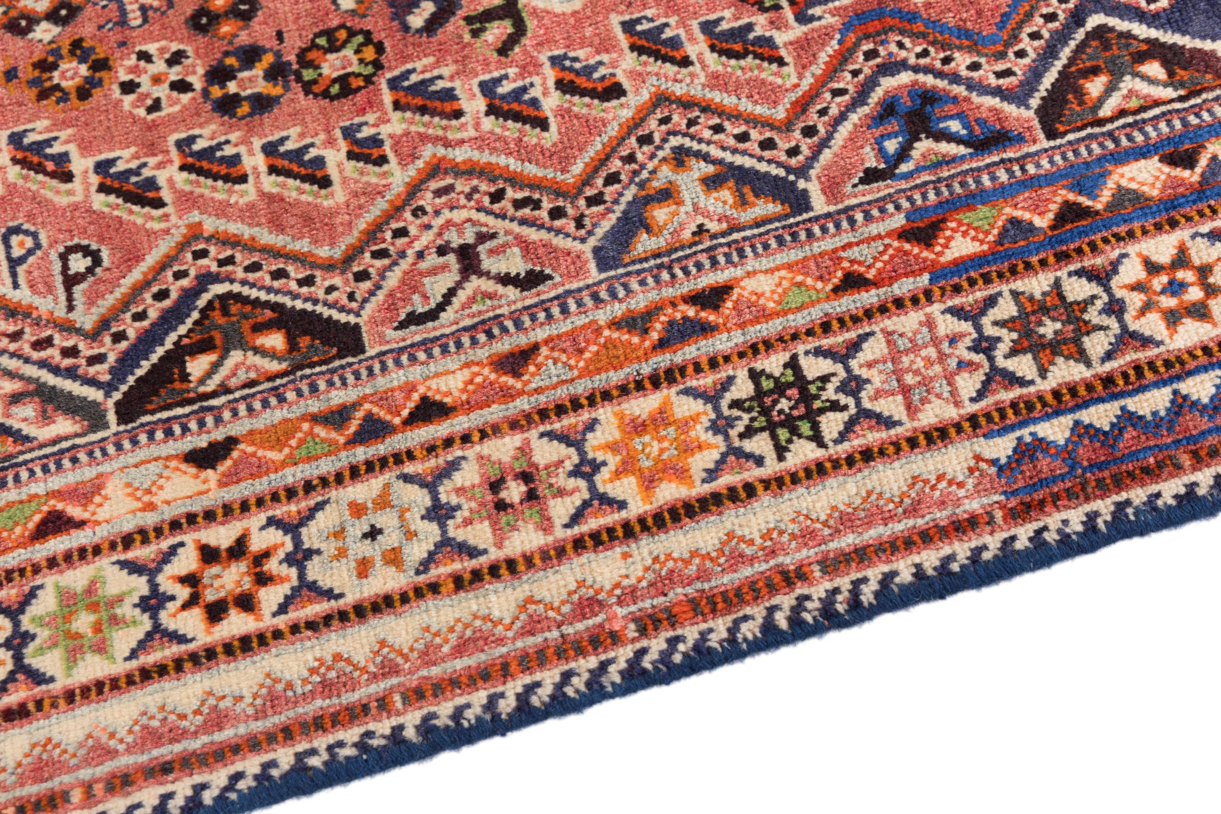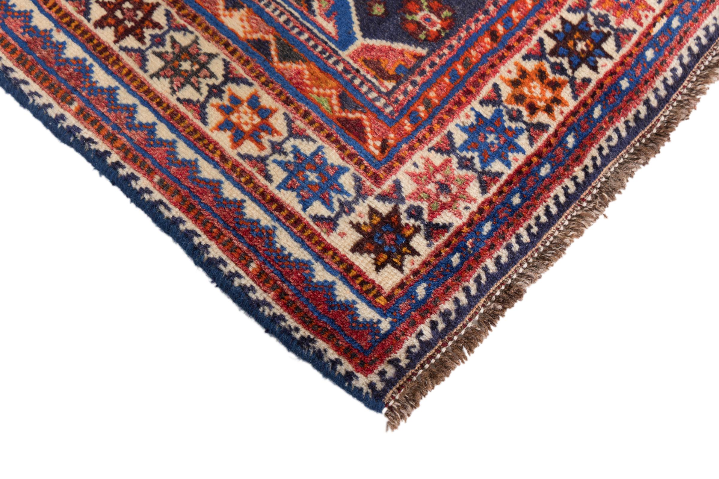 This rug belongs to village and nomadic rugs from Iran, formerly Persia. This type of rug is knotted by hand in smaller towns and villages in old tradition. Even nomads still knot Persian rugs in the open air. The rugs are knotted without a draft and completely from the mind. They are characterized by classical ornaments, which are arranged in straight and geometrical patterns. Thanks to their cultural-traditional origin, these rugs have a unique character that embodies ancient Persia.