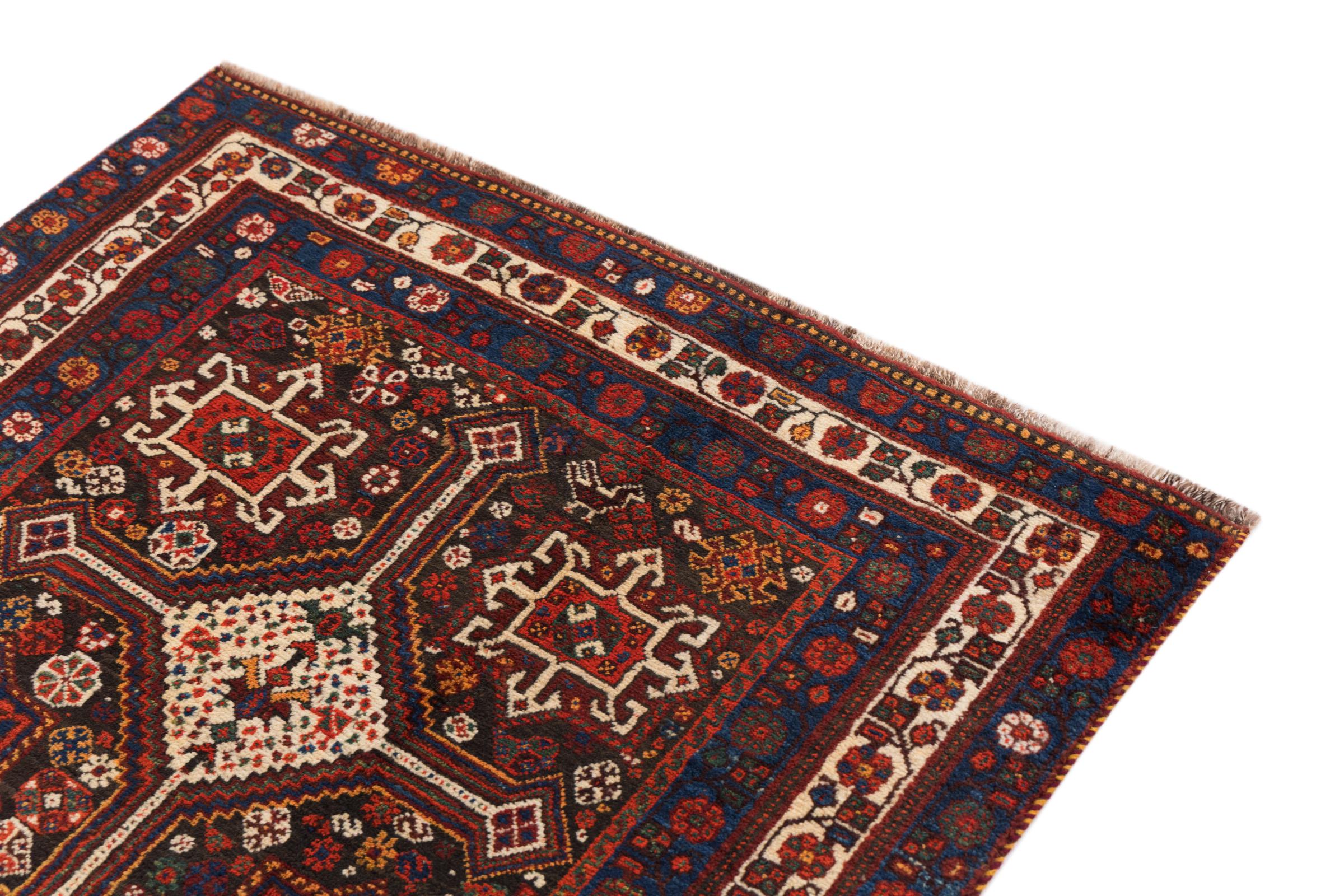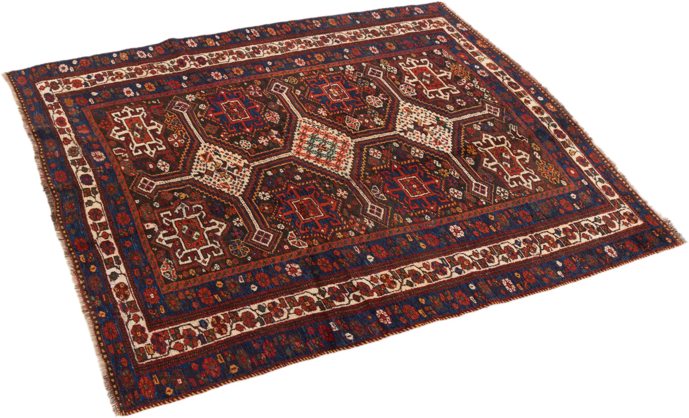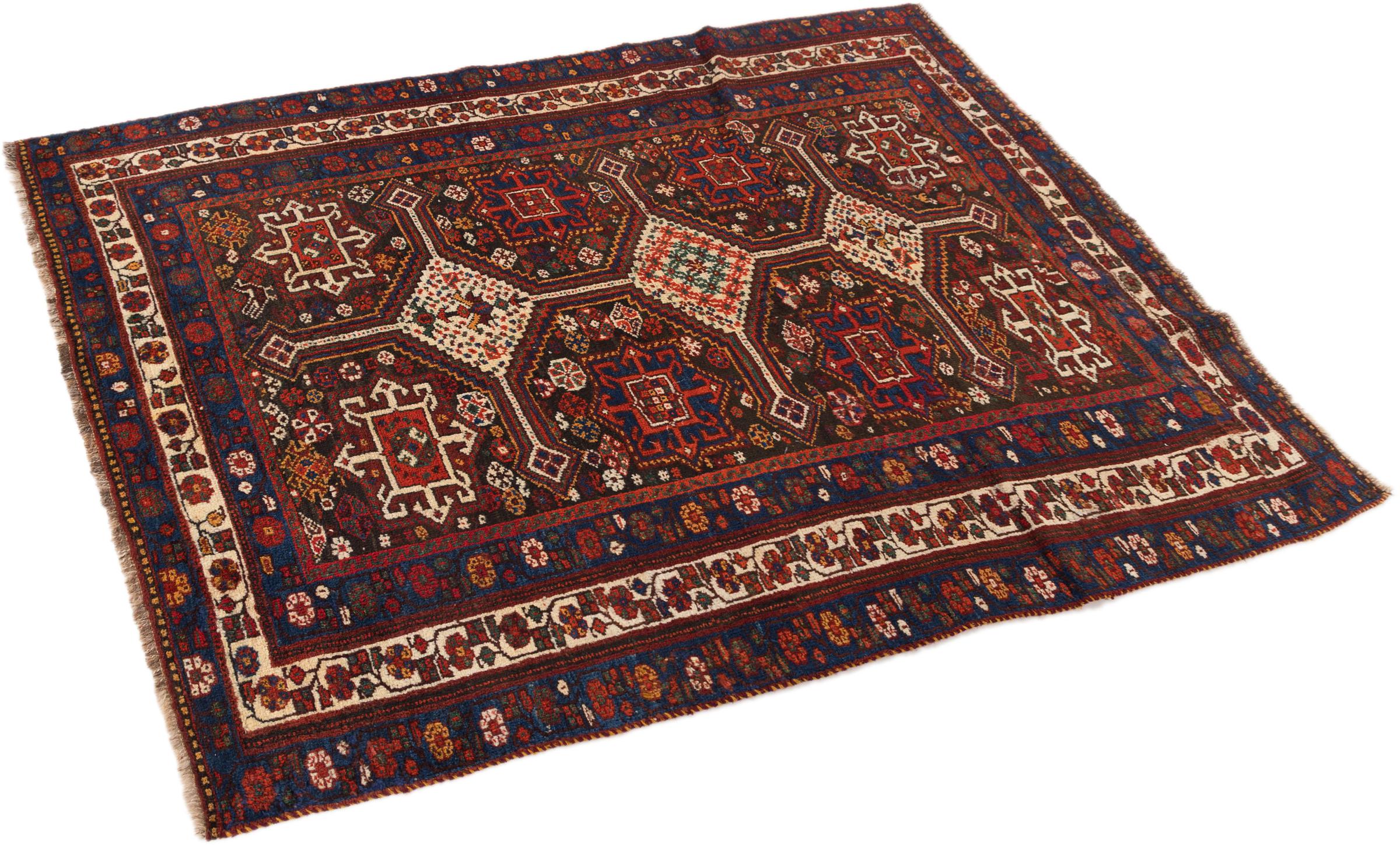 Carpet ID: 296590009012 Size: 183x133 cm Thickness: ap. 12 mm Knot density: 200 000 - 250 000 / m² Manufacturing: Knotted by hand Pile: Handspun wool Warp: Sheep wool Origin: Persia Age: Old/Semi antique, over 50 years Weight: ap. 9 kg Also know as Qashqai, Gaschgai, Gashghai, Kashgai In stock: Unique - Only 1 in stock