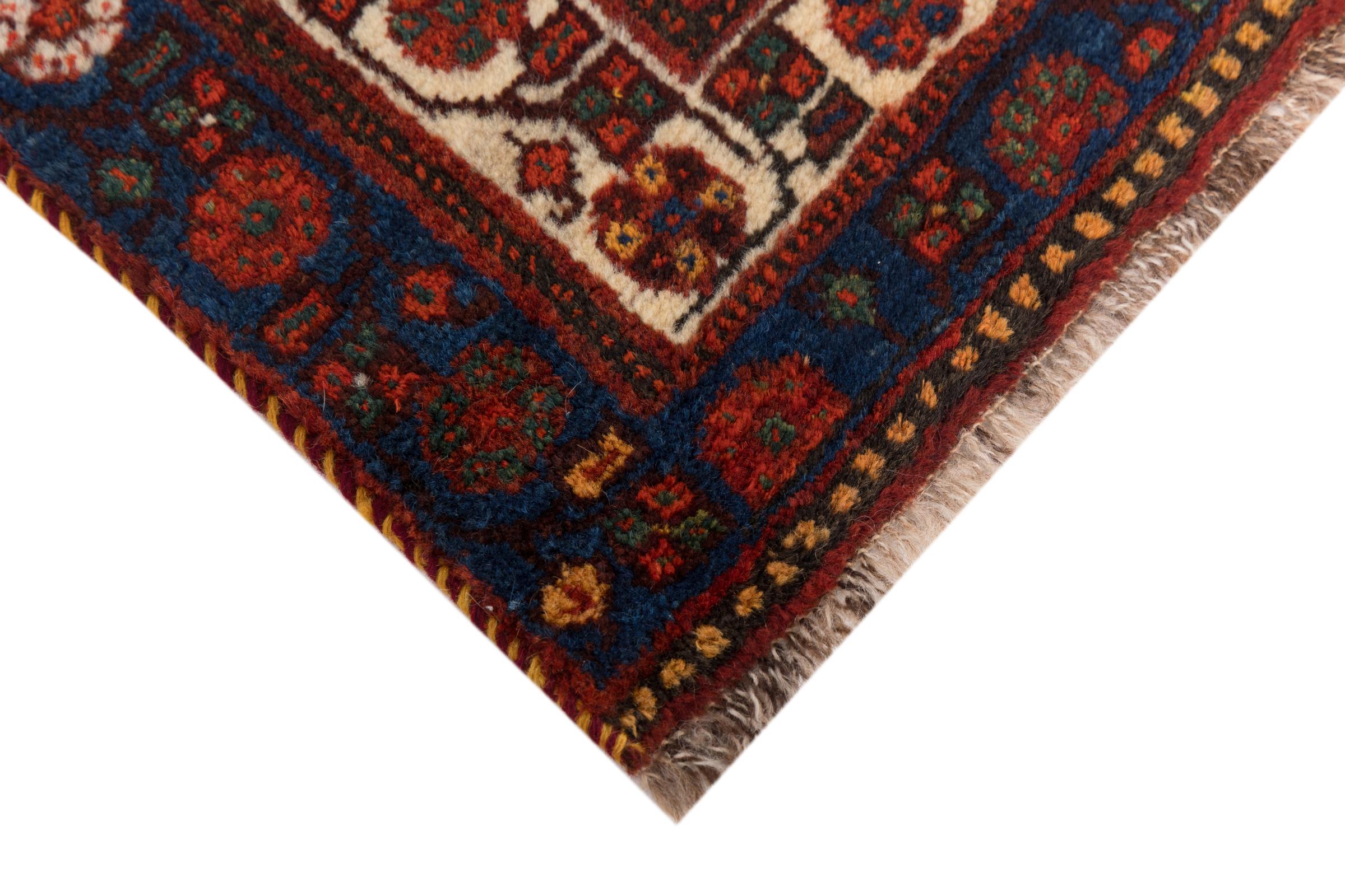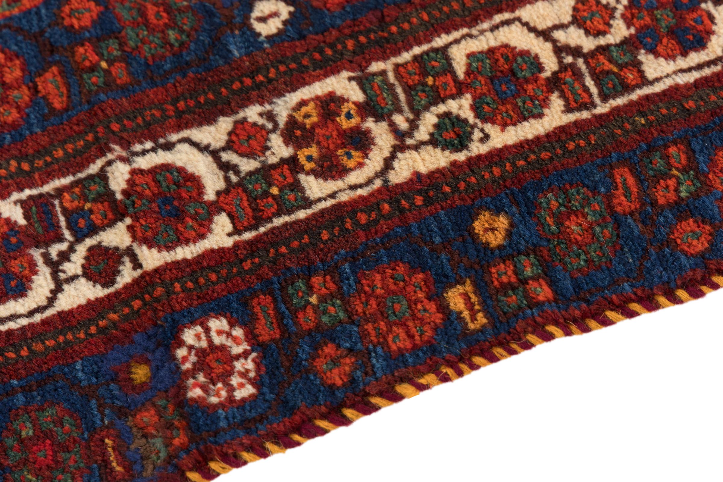 This rug belongs to village and nomadic rugs from Iran, formerly Persia. This type of rug is knotted by hand in smaller towns and villages in old tradition. Even nomads still knot Persian rugs in the open air. The rugs are knotted without a draft and completely from the mind. They are characterized by classical ornaments, which are arranged in straight and geometrical patterns. Thanks to their cultural-traditional origin, these rugs have a unique character that embodies ancient Persia.