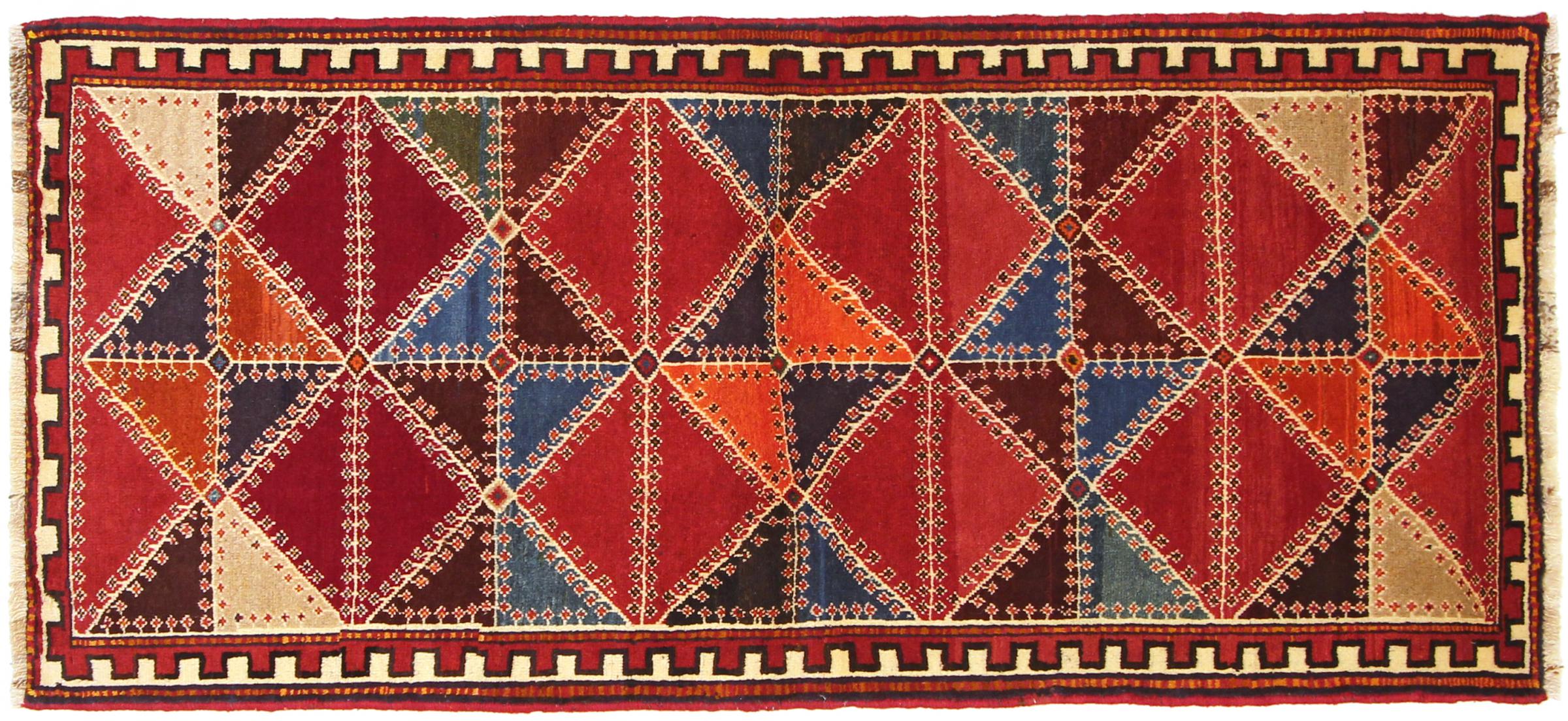 This rug belongs to village and nomadic rugs from Iran, formerly Persia. This type of rug is knotted by hand in smaller towns and villages in old tradition. Even nomads still knot Persian rugs in the open air. The rugs are knotted without a draft and completely from the mind. They are characterized by classical ornaments, which are arranged in straight and geometrical patterns. Thanks to their cultural-traditional origin, these rugs have a unique character that embodies ancient Persia.