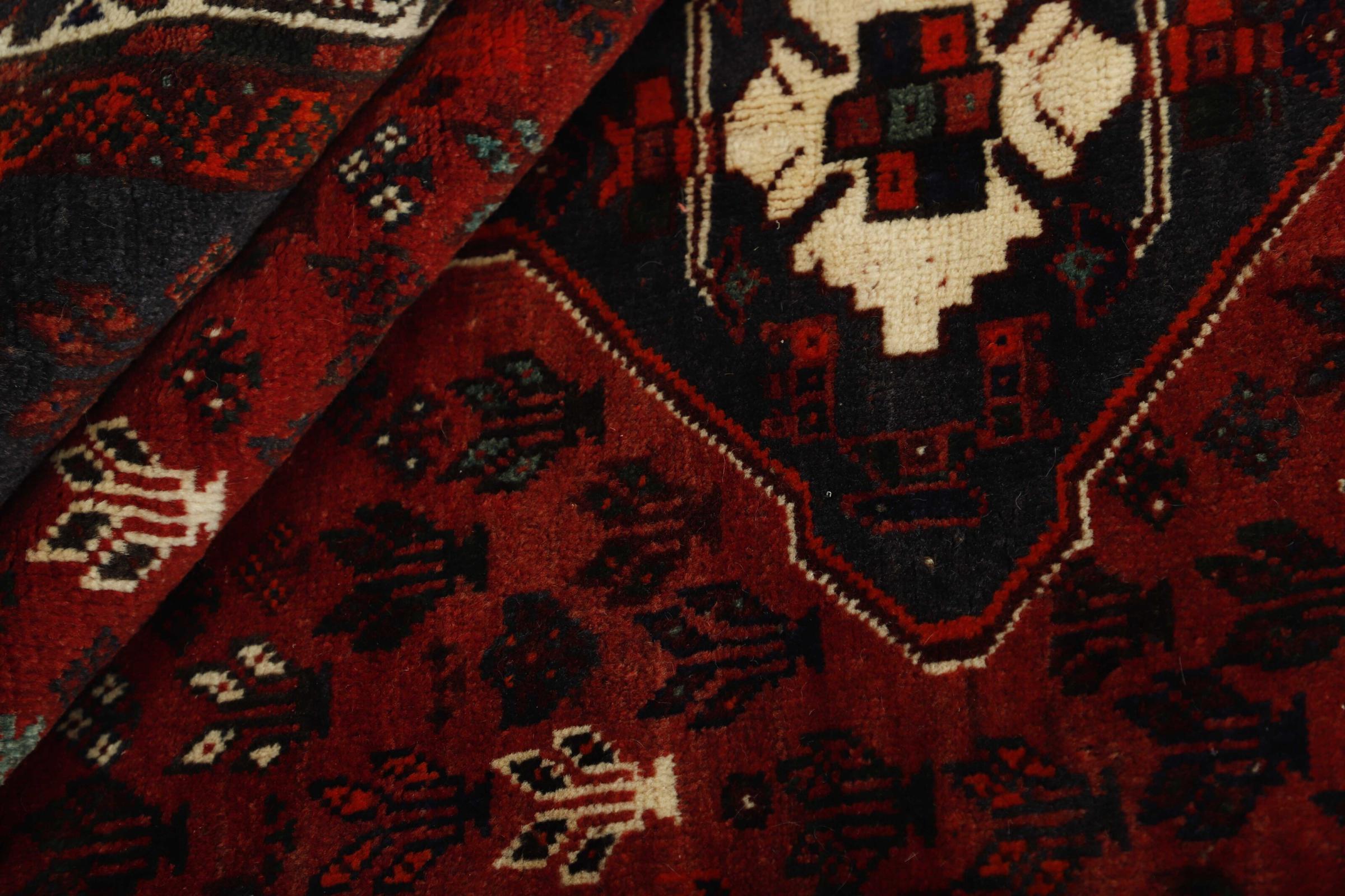 This rug belongs to village and nomadic rugs from Iran, formerly Persia. This type of rug is knotted by hand in smaller towns and villages in old tradition. Even nomads still knot Persian rugs in the open air. The rugs are knotted without a draft and completely from the mind. They are characterized by classical ornaments, which are arranged in straight and geometrical patterns. Thanks to their cultural-traditional origin, these rugs have a unique character that embodies ancient Persia.