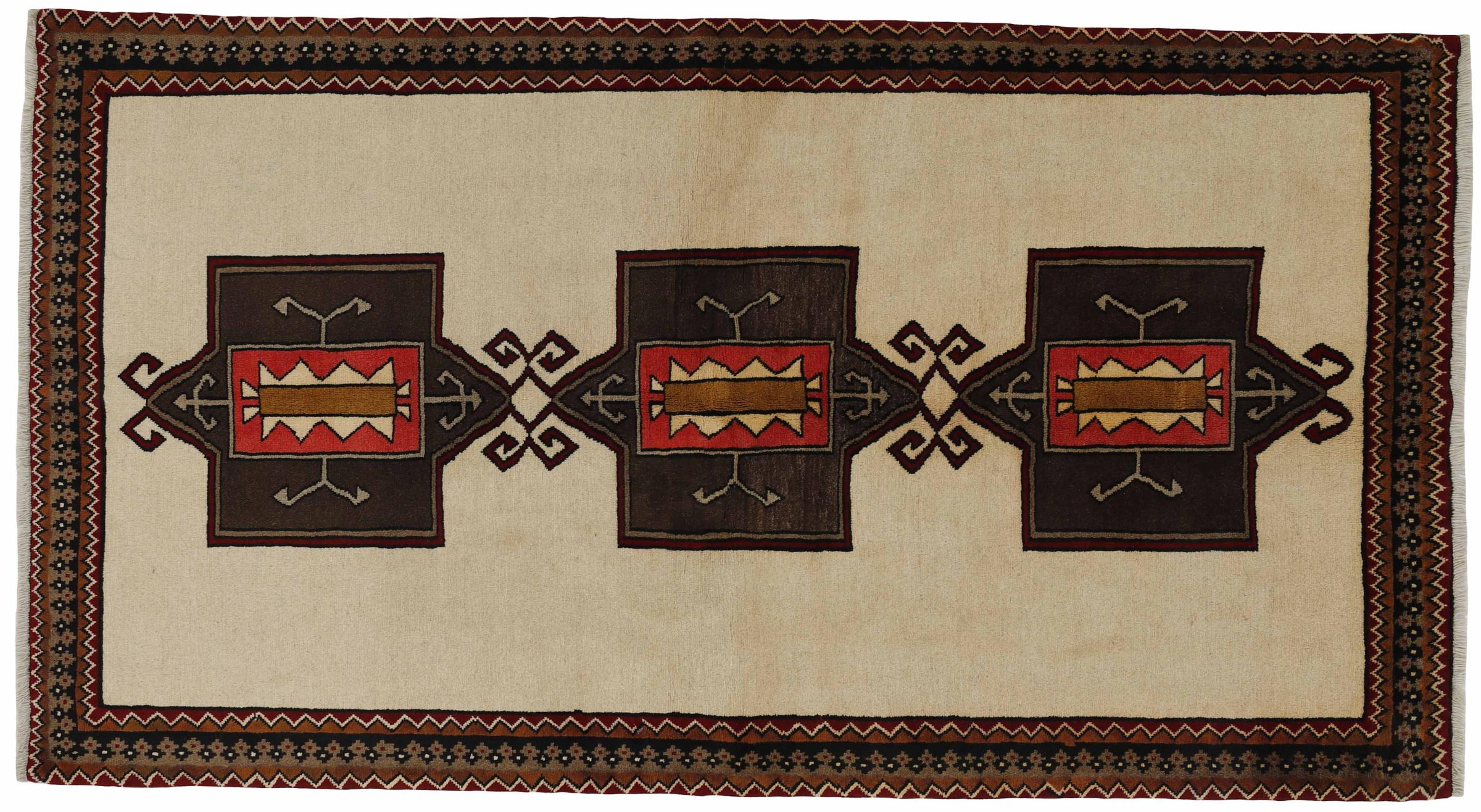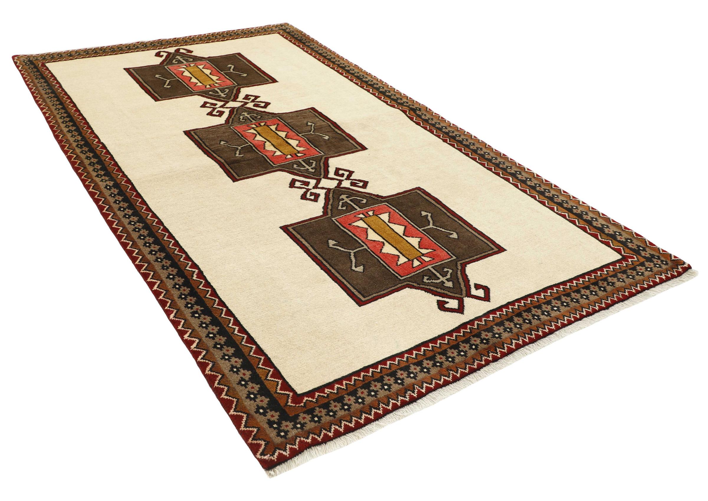 This rug belongs to village and nomadic rugs from Iran, formerly Persia. This type of rug is knotted by hand in smaller towns and villages in old tradition. Even nomads still knot Persian rugs in the open air. The rugs are knotted without a draft and completely from the mind. They are characterized by classical ornaments, which are arranged in straight and geometrical patterns. Thanks to their cultural-traditional origin, these rugs have a unique character that embodies ancient Persia.