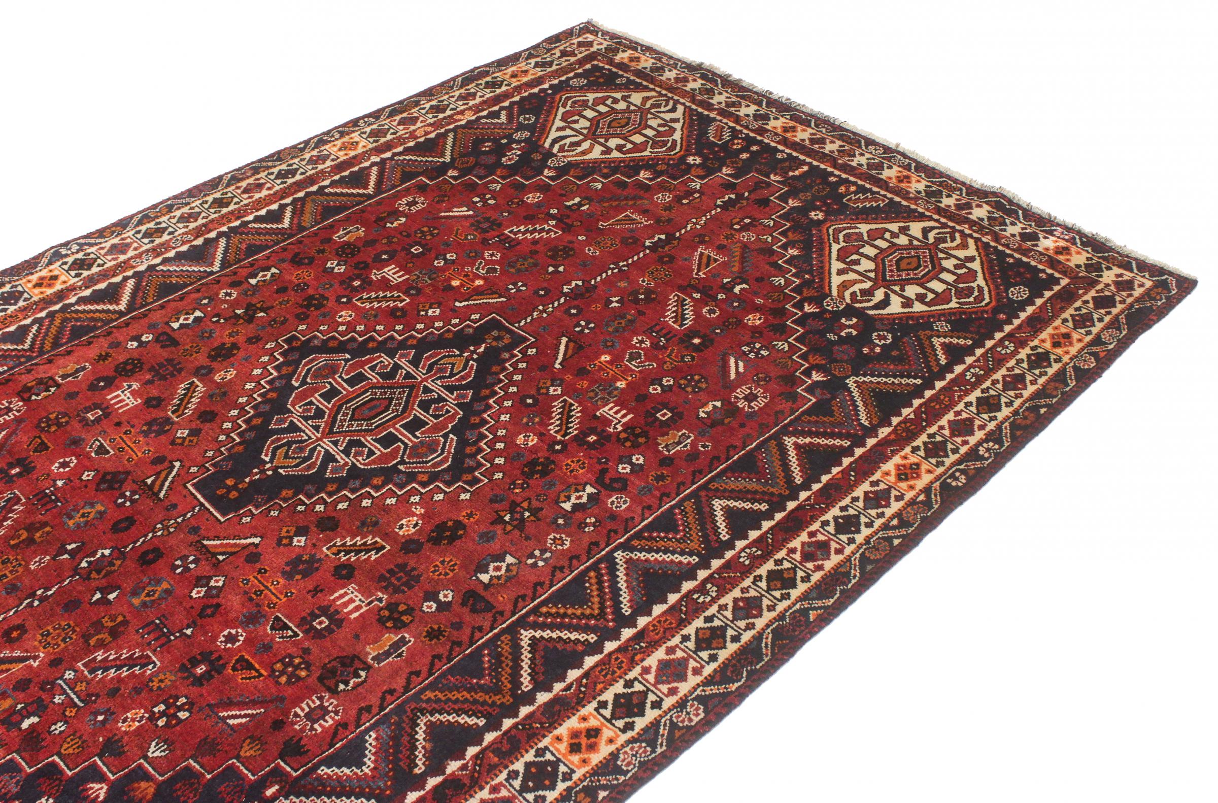 This ghashghai is a real highlight. Its colours and patterns reflect the life of the Ghashghai nomads of Iran. These nomadic tribes live mainly in the neighbourhood of the city of Shiraz. Bring a piece of ancient Persian culture into your own four walls.