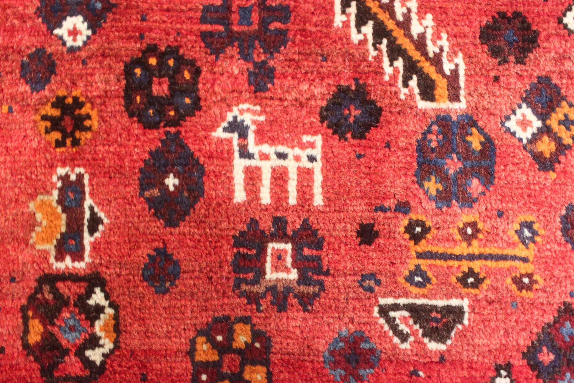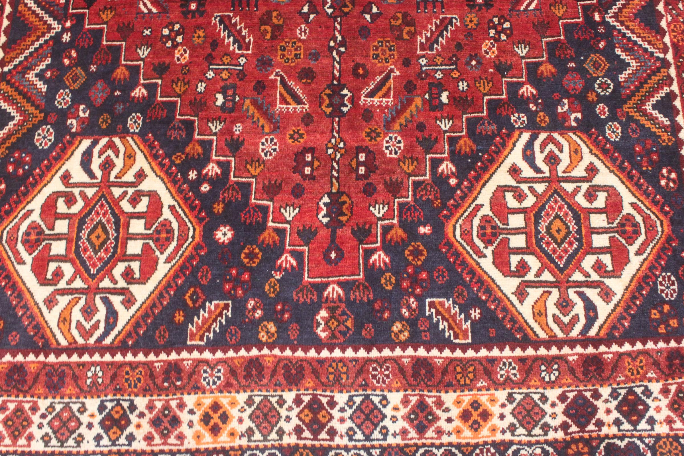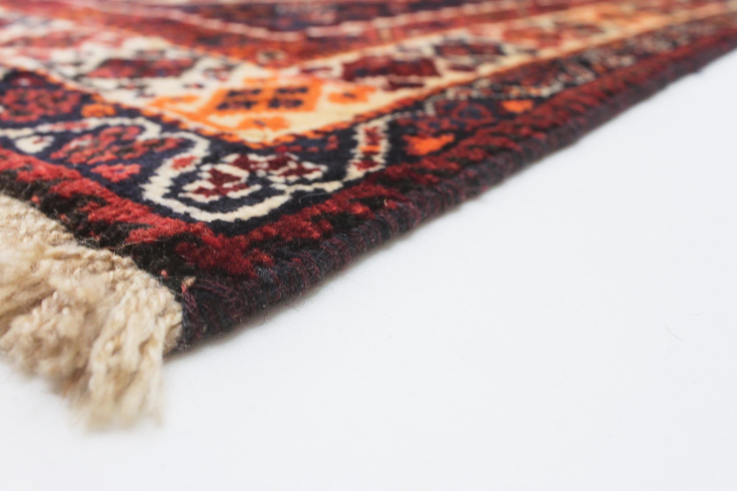 This rug belongs to village and nomadic rugs from Iran, formerly Persia. This type of rug is knotted by hand in smaller towns and villages in old tradition. Even nomads still knot Persian rugs in the open air. The rugs are knotted without a draft and completely from the mind. They are characterized by classical ornaments, which are arranged in straight and geometrical patterns. Thanks to their cultural-traditional origin, these rugs have a unique character that embodies ancient Persia.