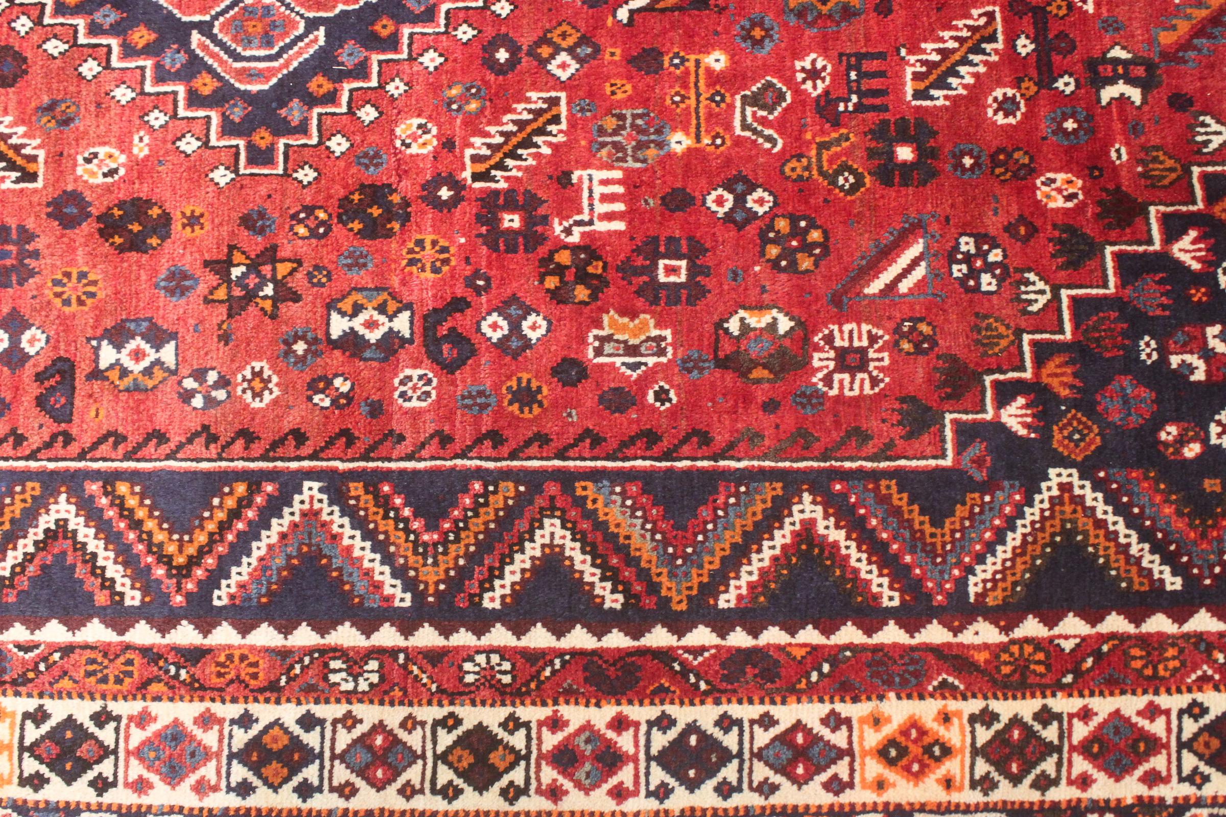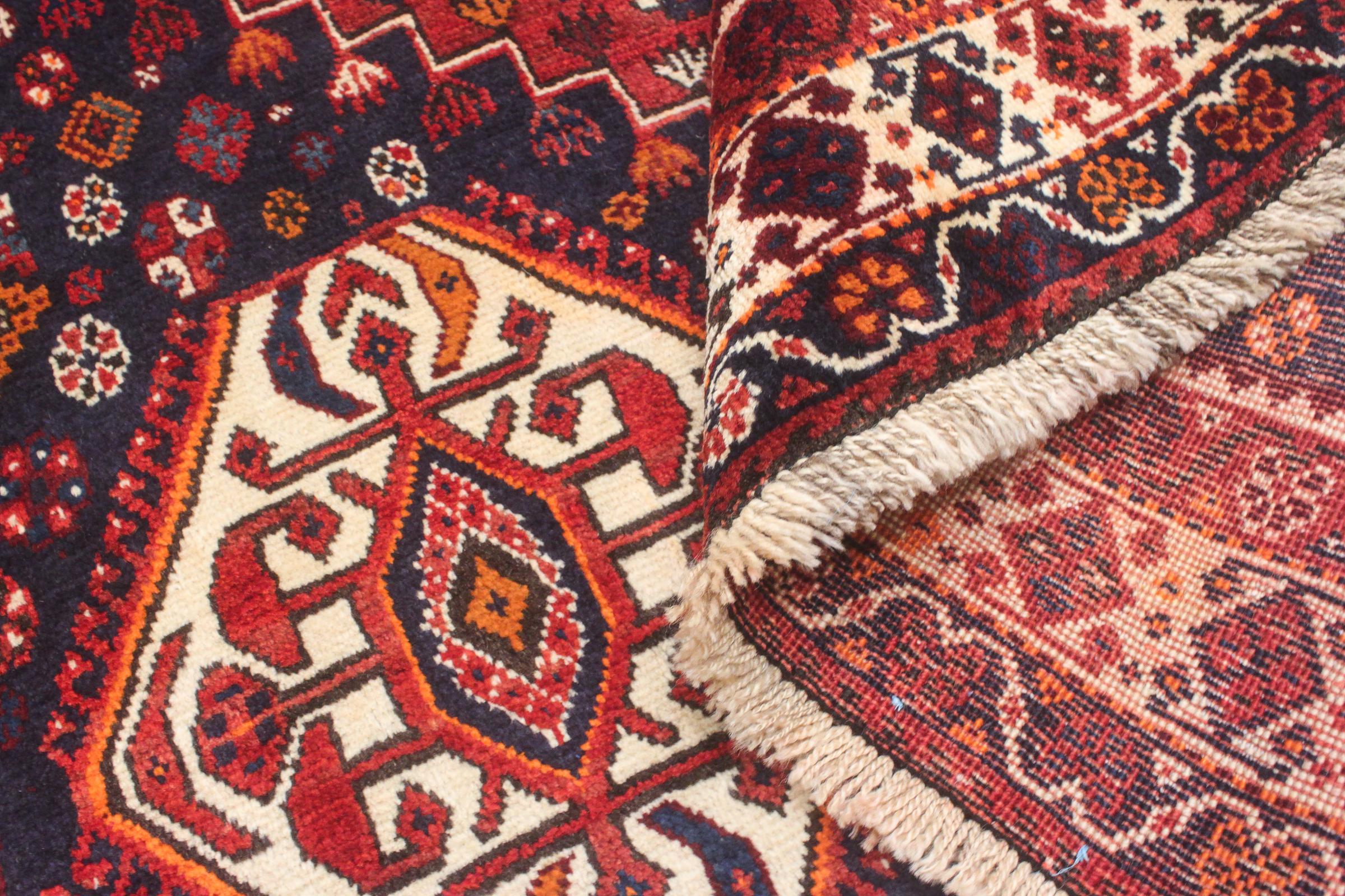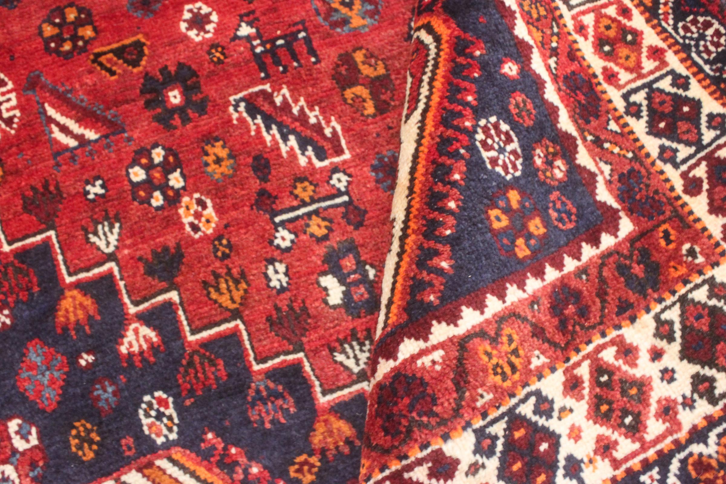 This rug belongs to village and nomadic rugs from Iran, formerly Persia. This type of rug is knotted by hand in smaller towns and villages in old tradition. Even nomads still knot Persian rugs in the open air. The rugs are knotted without a draft and completely from the mind. They are characterized by classical ornaments, which are arranged in straight and geometrical patterns. Thanks to their cultural-traditional origin, these rugs have a unique character that embodies ancient Persia.