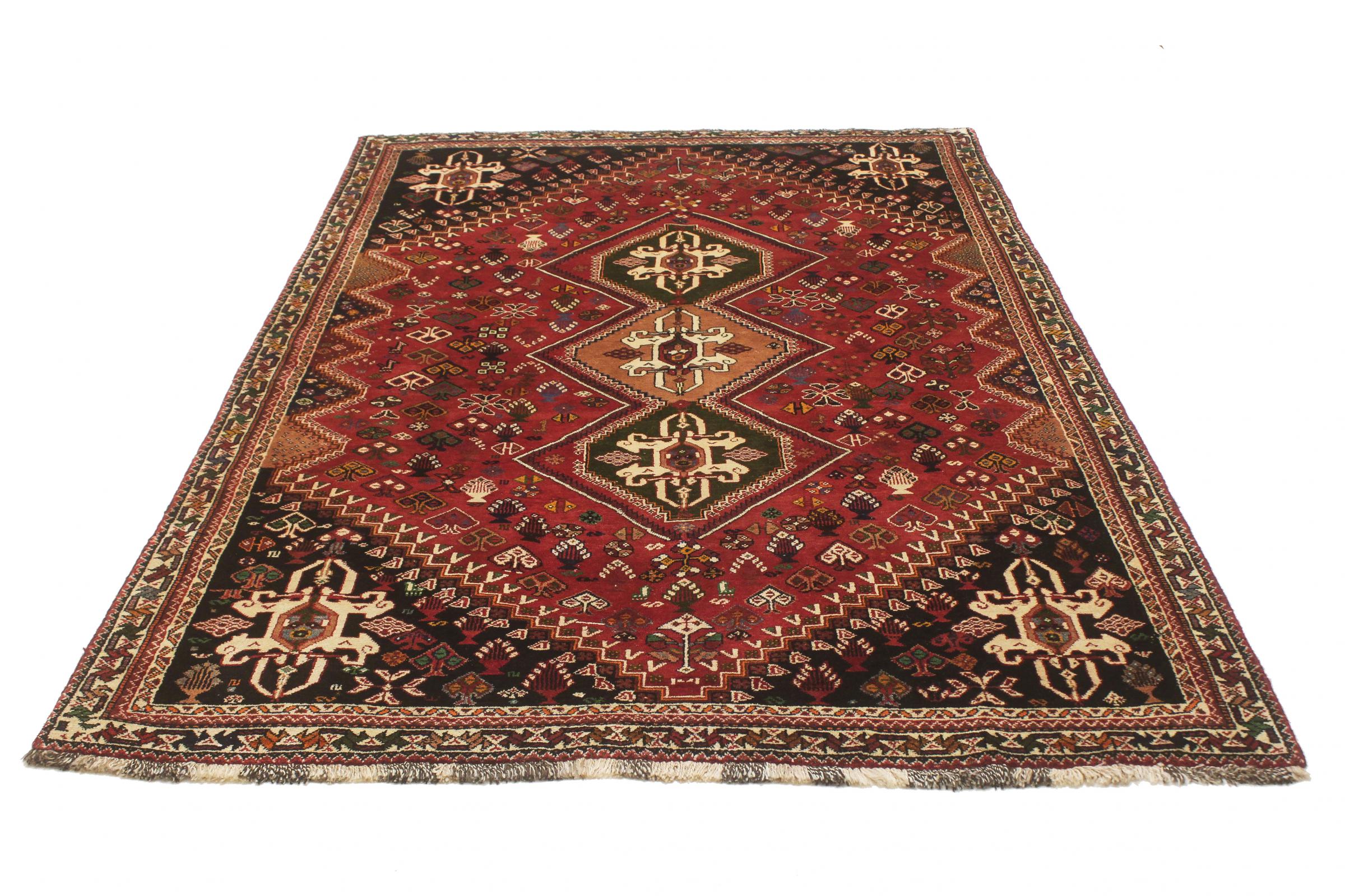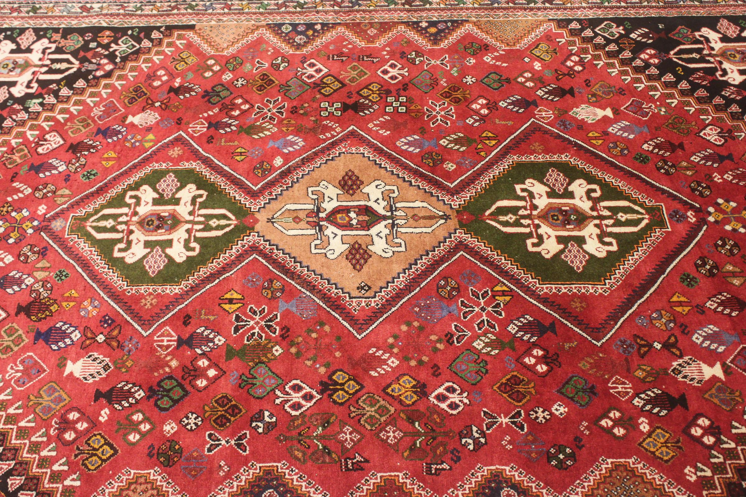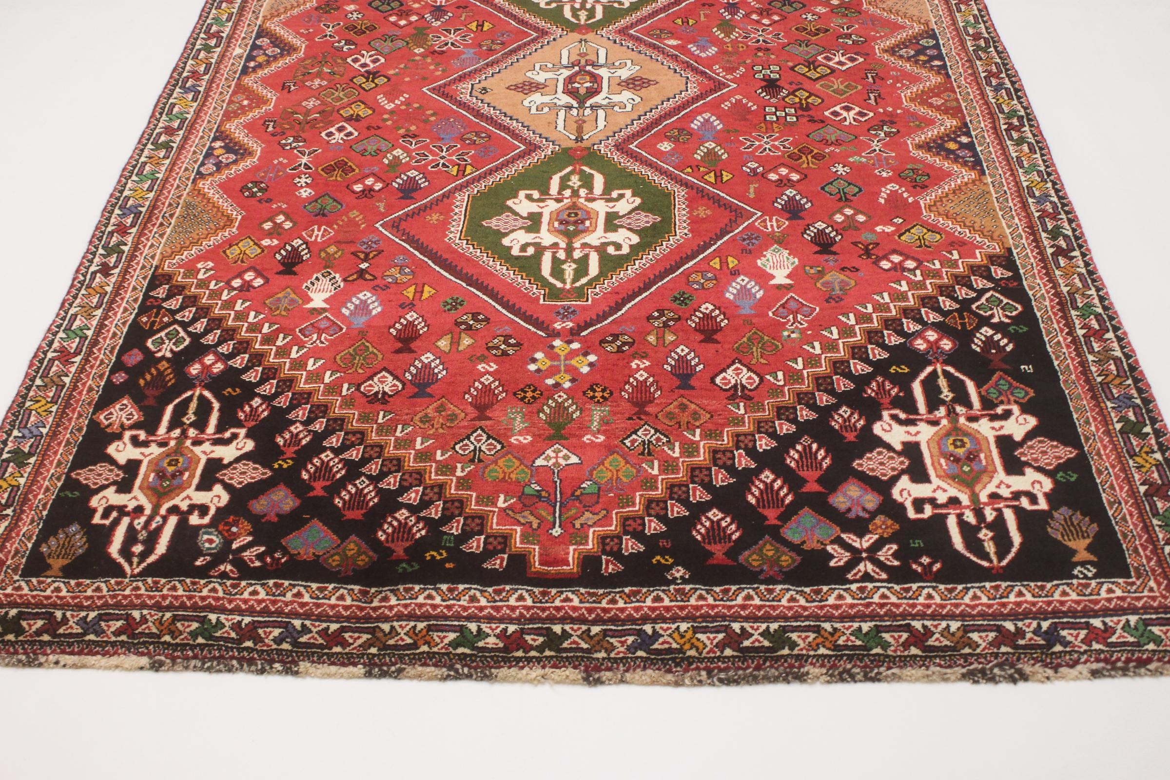 This ghashghai is a real highlight. Its colours and patterns reflect the life of the Ghashghai nomads of Iran. These nomadic tribes live mainly in the neighbourhood of the city of Shiraz. Bring a piece of ancient Persian culture into your own four walls.