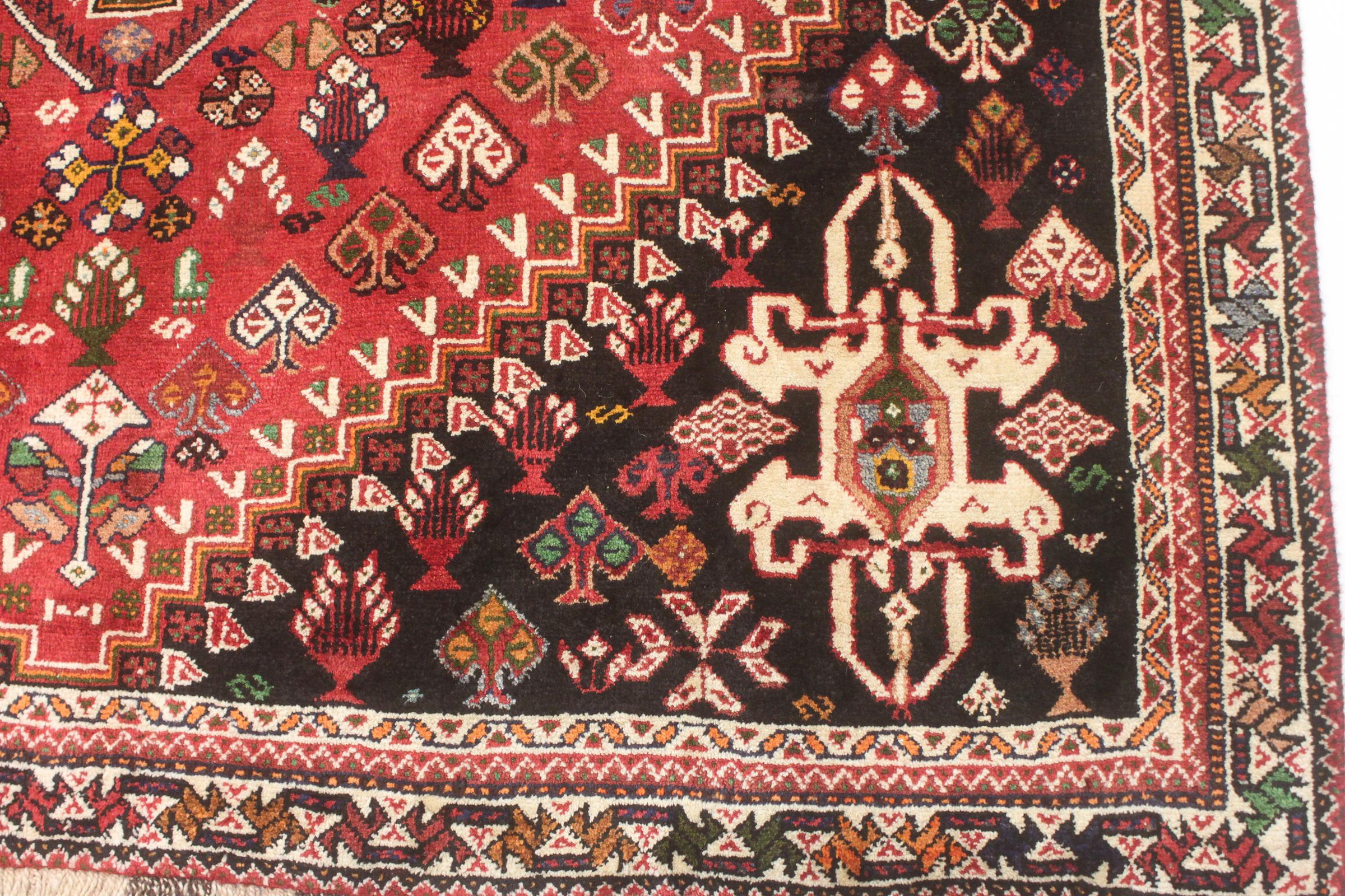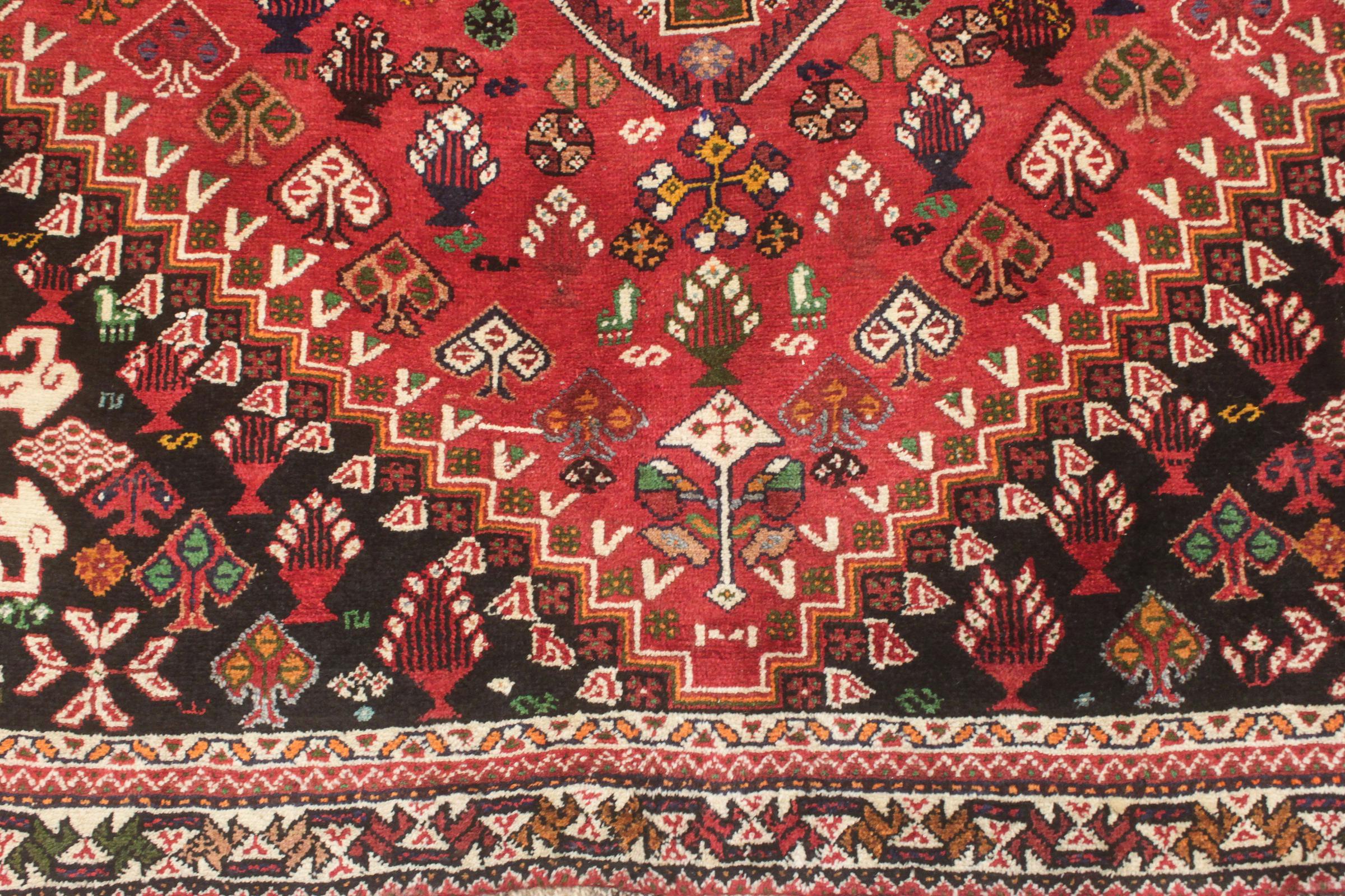 This rug belongs to village and nomadic rugs from Iran, formerly Persia. This type of rug is knotted by hand in smaller towns and villages in old tradition. Even nomads still knot Persian rugs in the open air. The rugs are knotted without a draft and completely from the mind. They are characterized by classical ornaments, which are arranged in straight and geometrical patterns. Thanks to their cultural-traditional origin, these rugs have a unique character that embodies ancient Persia.