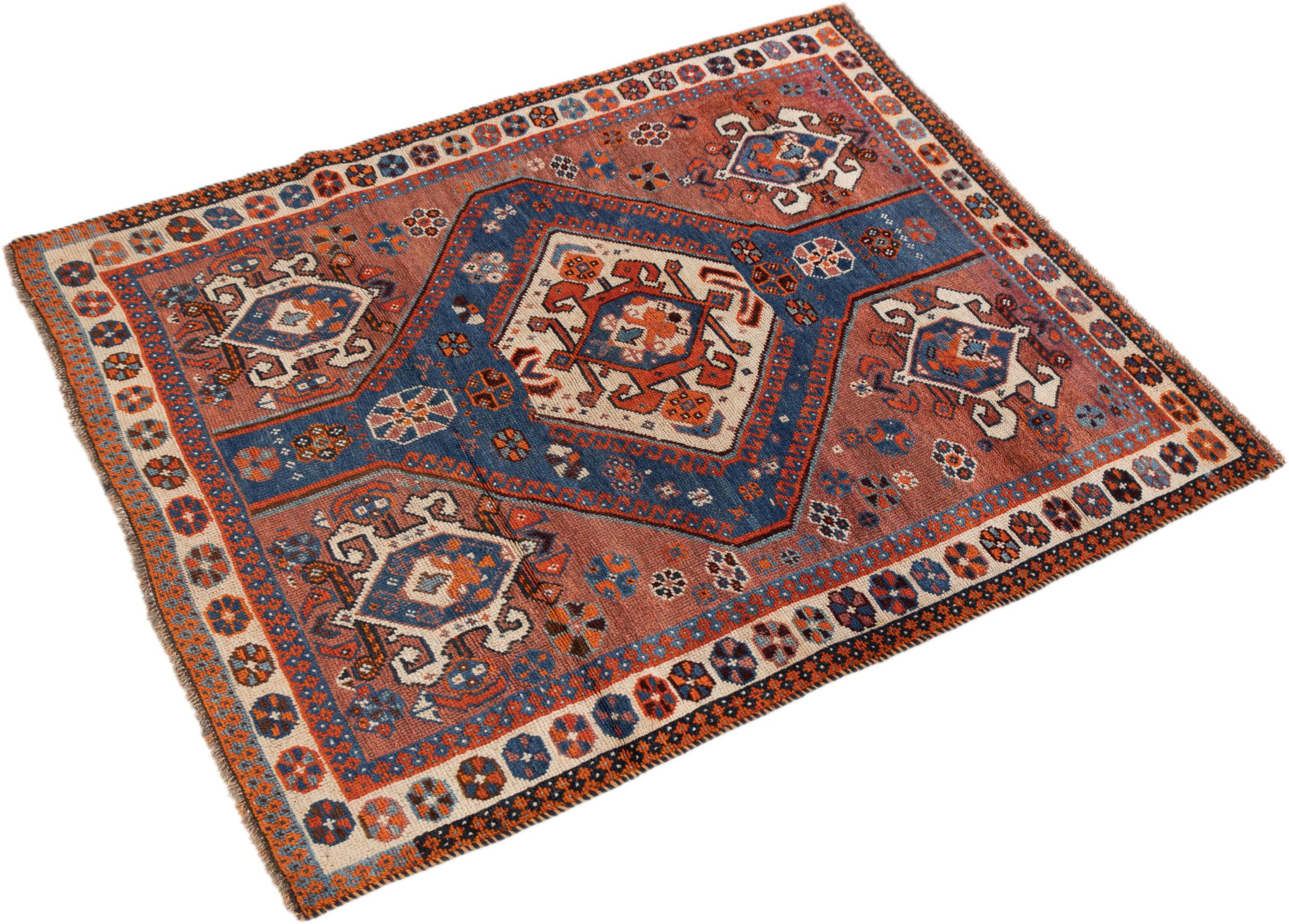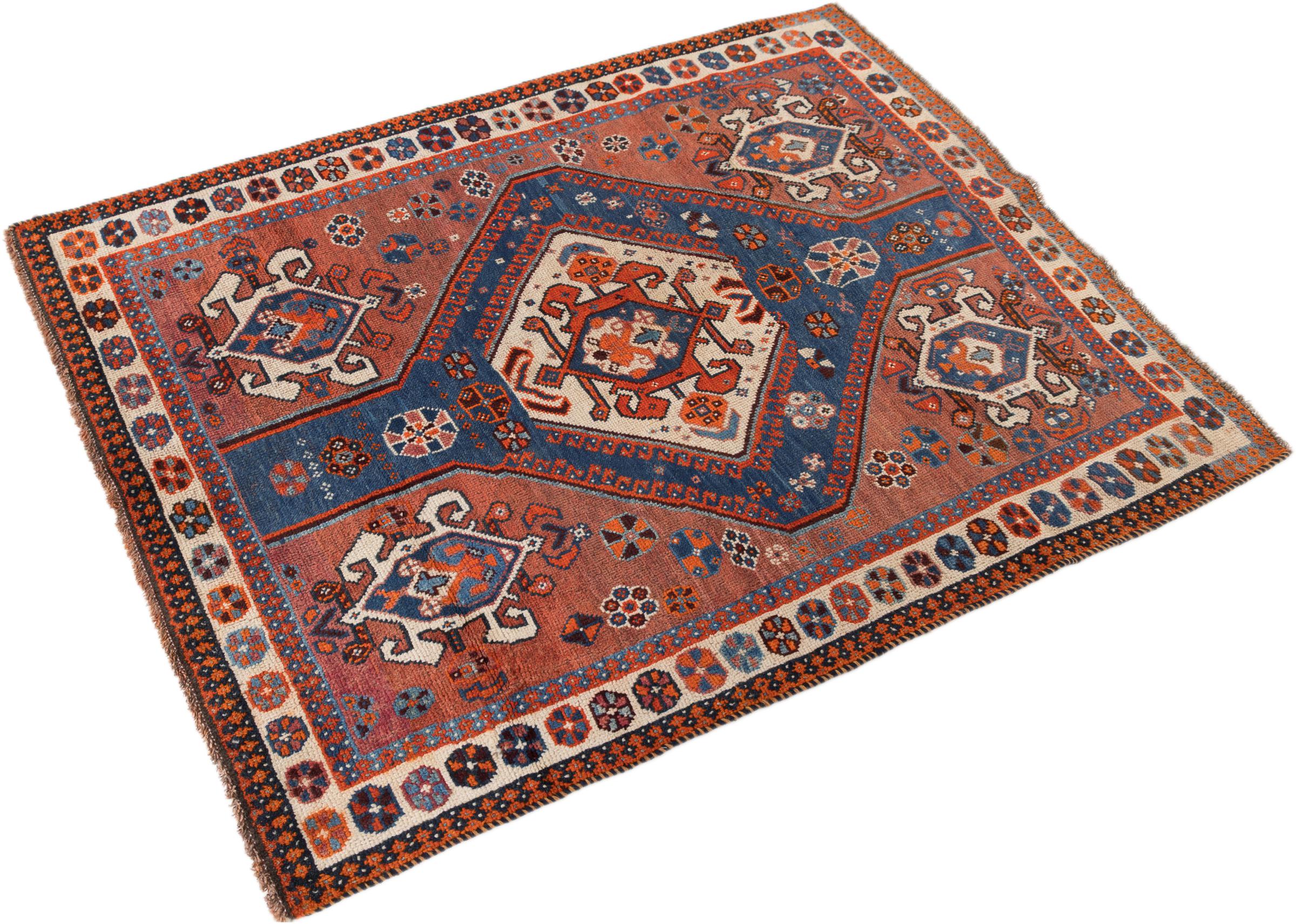 Carpet ID: 295840004512 Size: 150x112 cm Thickness: ap. 12 mm Knot density: 128 000 - 160 000 / m² Manufacturing: Knotted by hand Pile: Handspun wool Warp: Sheep wool Origin: Persia Age: Old/Semi antique, over 50 years Weight: ap. 6 kg Also know as Qashqai, Gaschgai, Gashghai, Kashgai In stock: Unique - Only 1 in stock