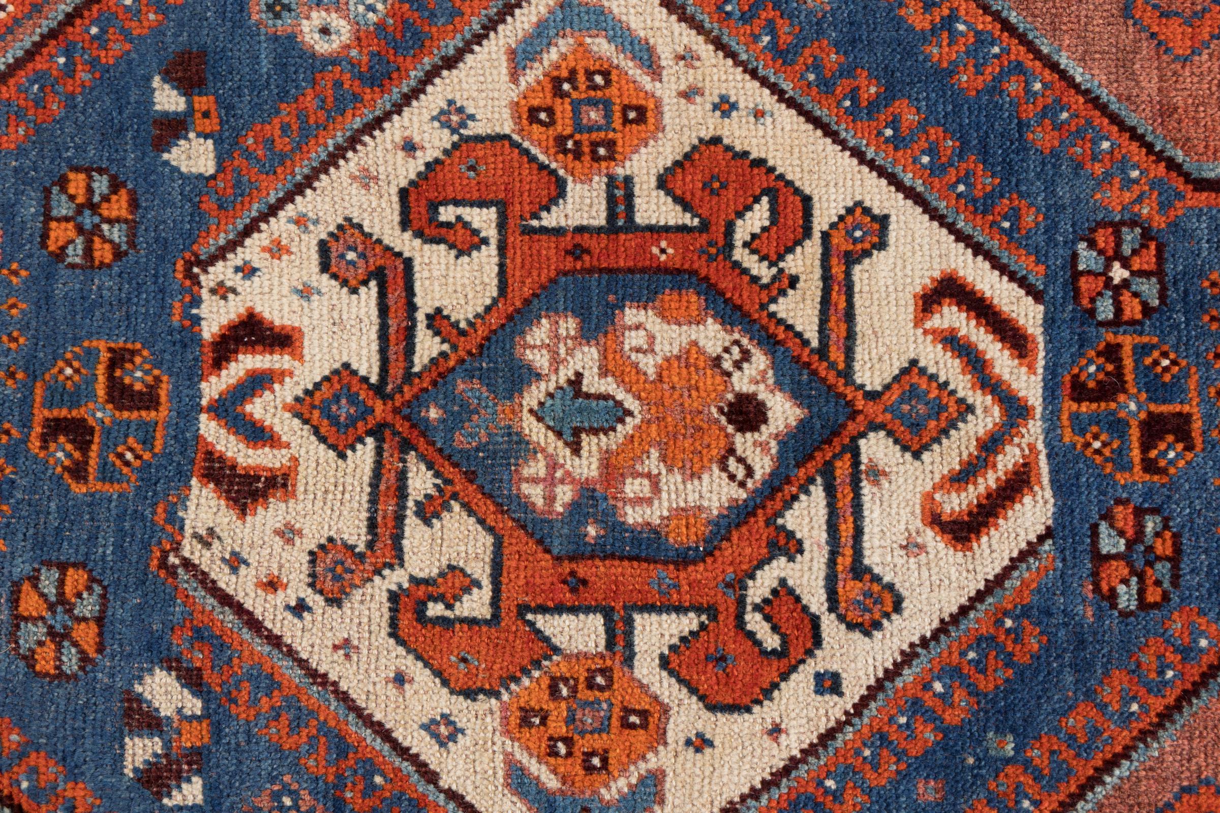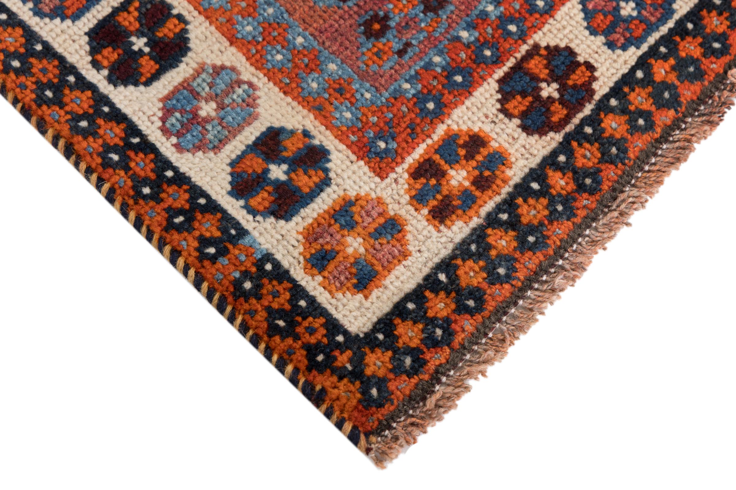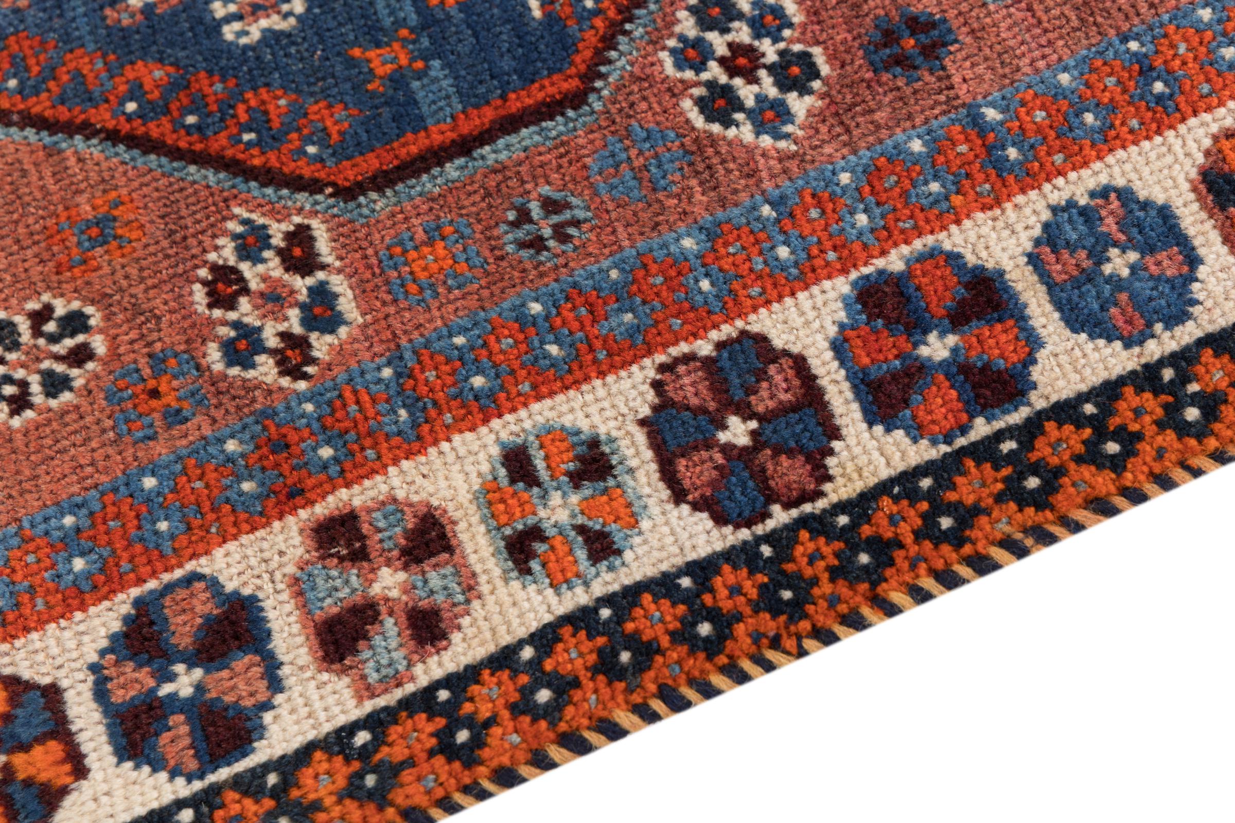This rug belongs to village and nomadic rugs from Iran, formerly Persia. This type of rug is knotted by hand in smaller towns and villages in old tradition. Even nomads still knot Persian rugs in the open air. The rugs are knotted without a draft and completely from the mind. They are characterized by classical ornaments, which are arranged in straight and geometrical patterns. Thanks to their cultural-traditional origin, these rugs have a unique character that embodies ancient Persia.