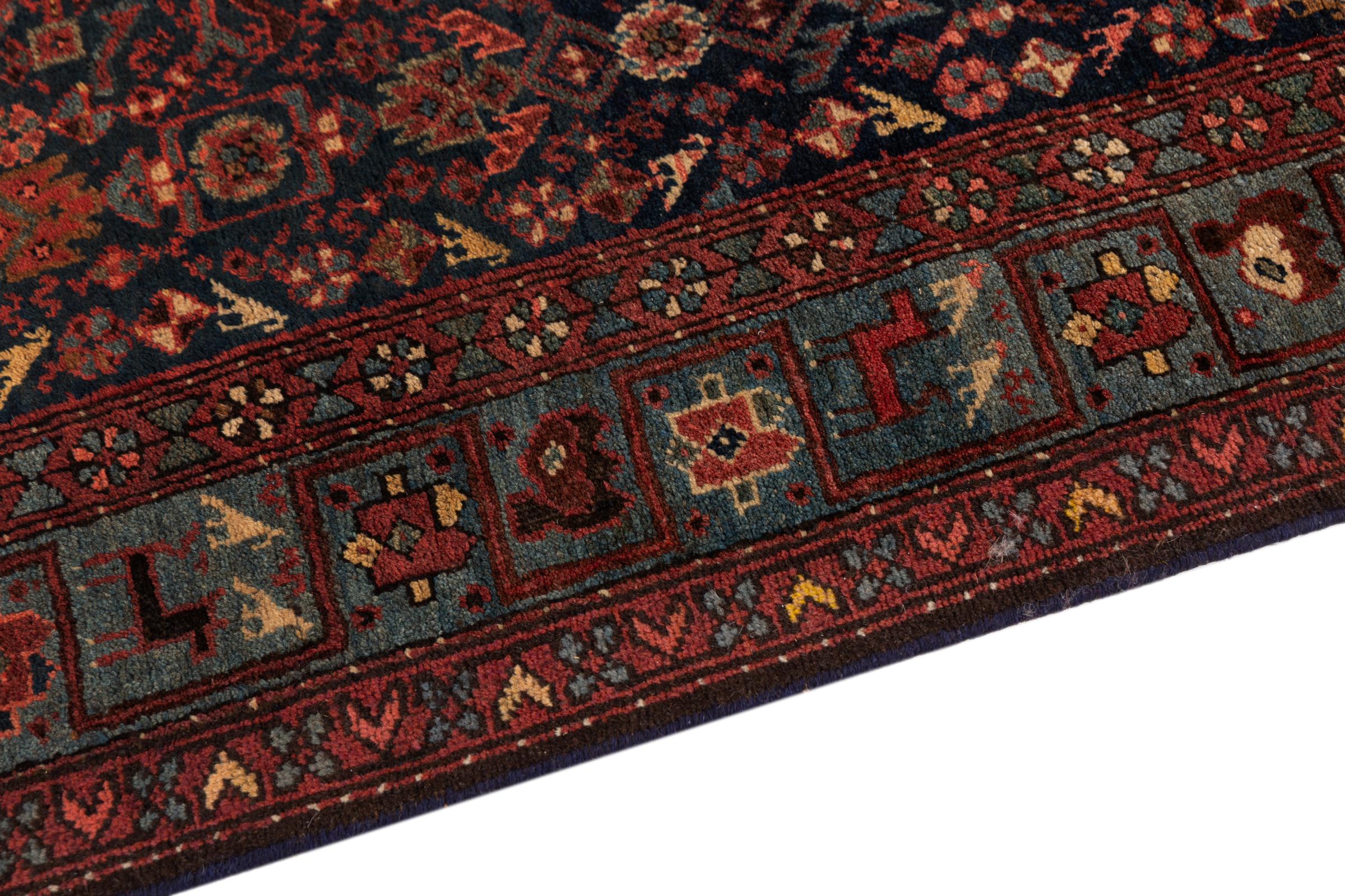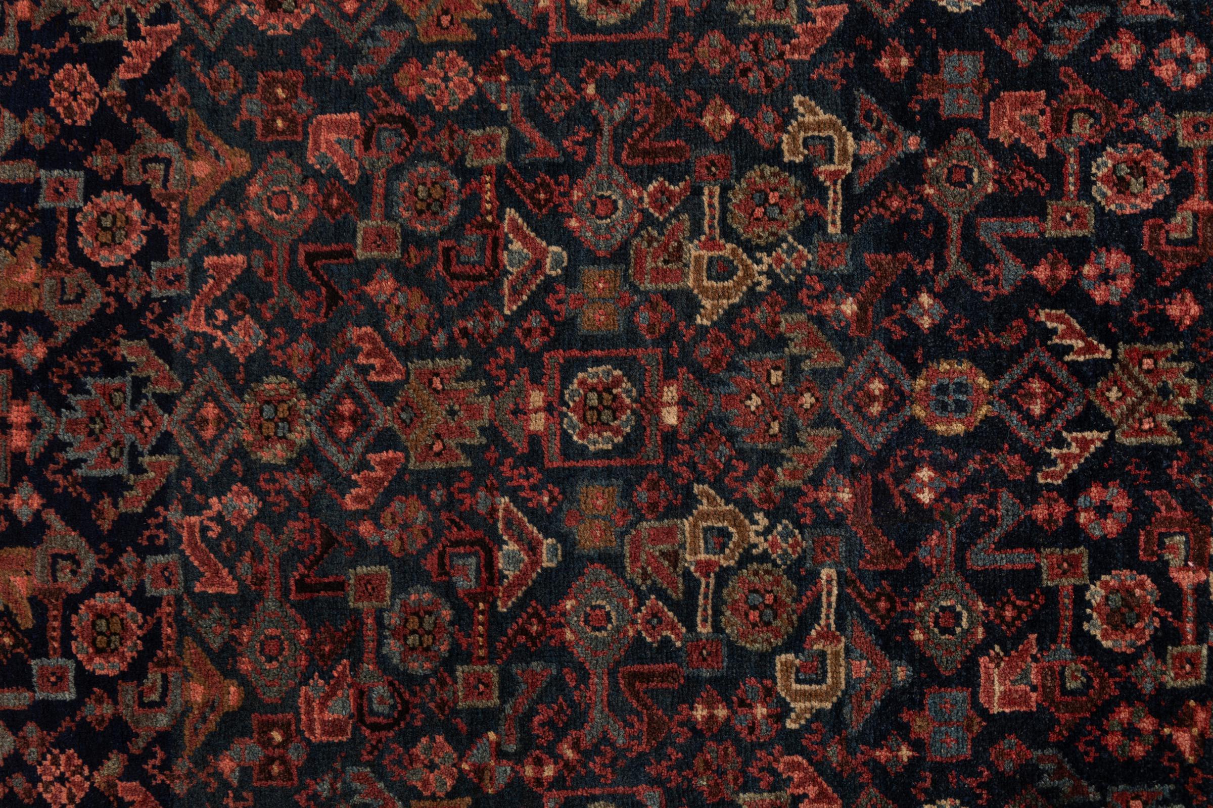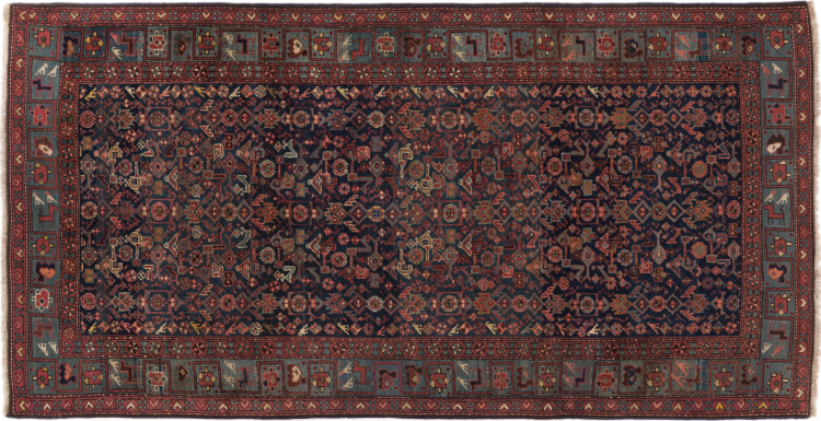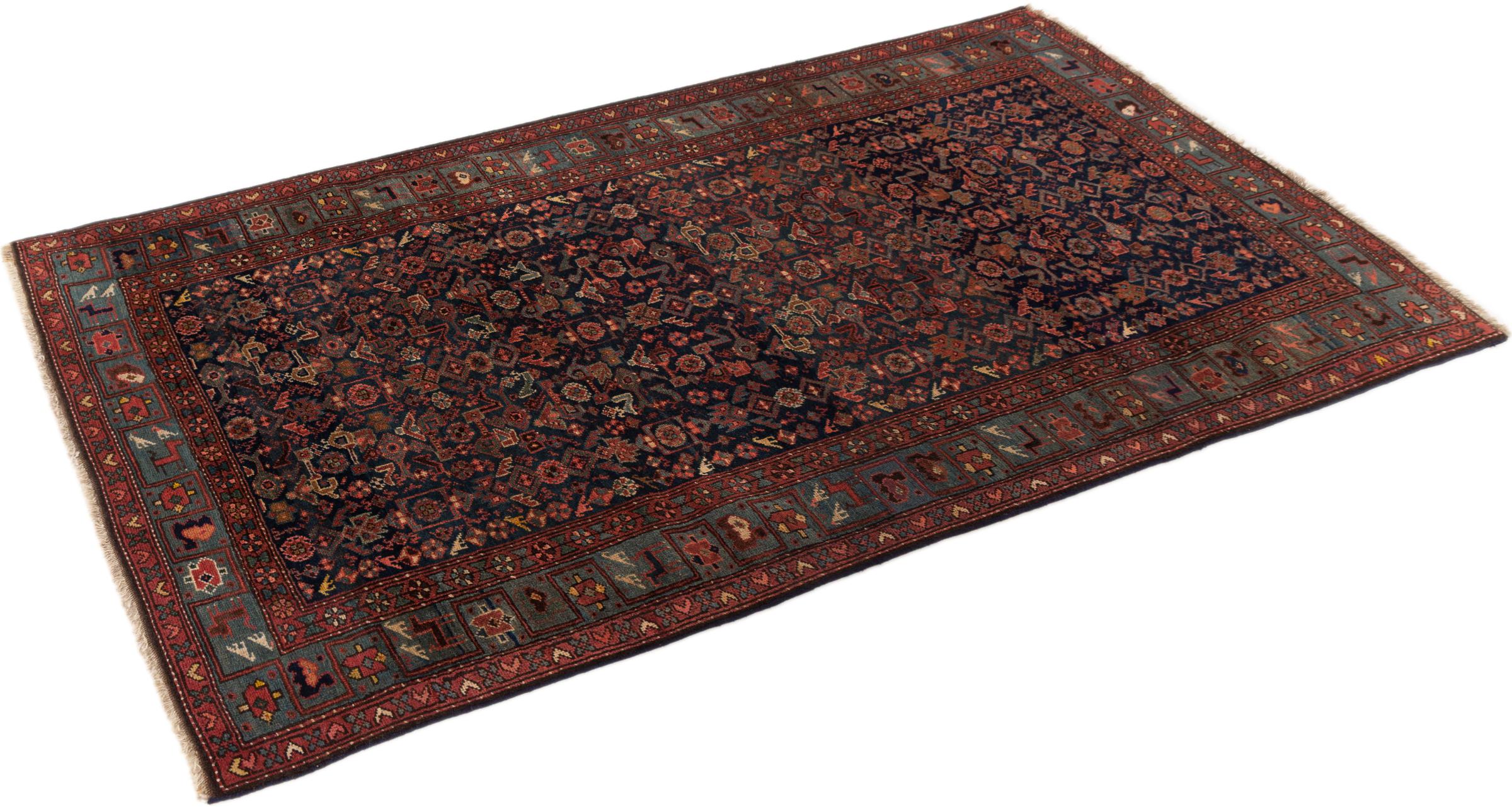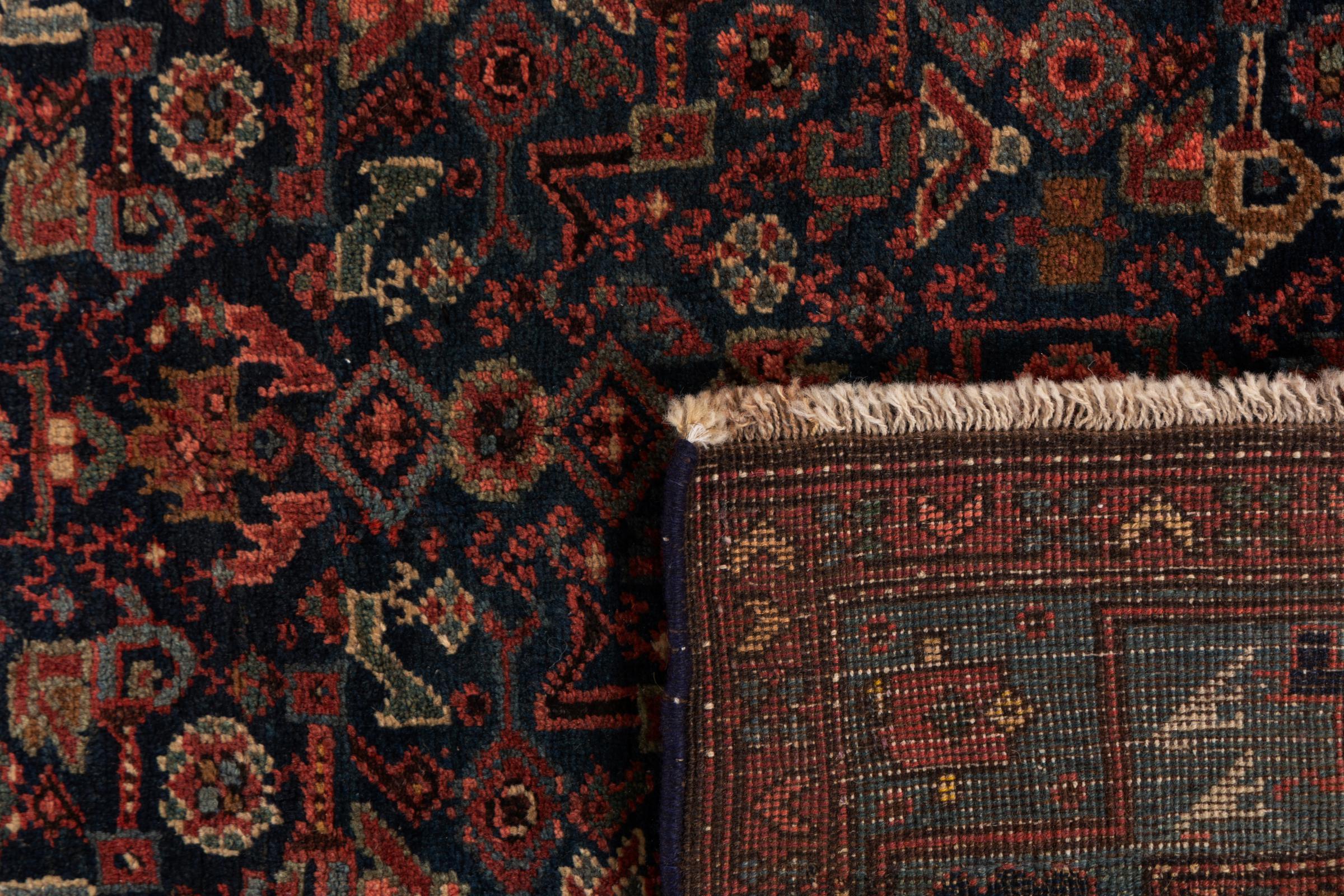 This rug belongs to village and nomadic rugs from Iran, formerly Persia. This type of rug is knotted by hand in smaller towns and villages in old tradition. Even nomads still knot Persian rugs in the open air. The rugs are knotted without a draft and completely from the mind. They are characterized by classical ornaments, which are arranged in straight and geometrical patterns. Thanks to their cultural-traditional origin, these rugs have a unique character that embodies ancient Persia.