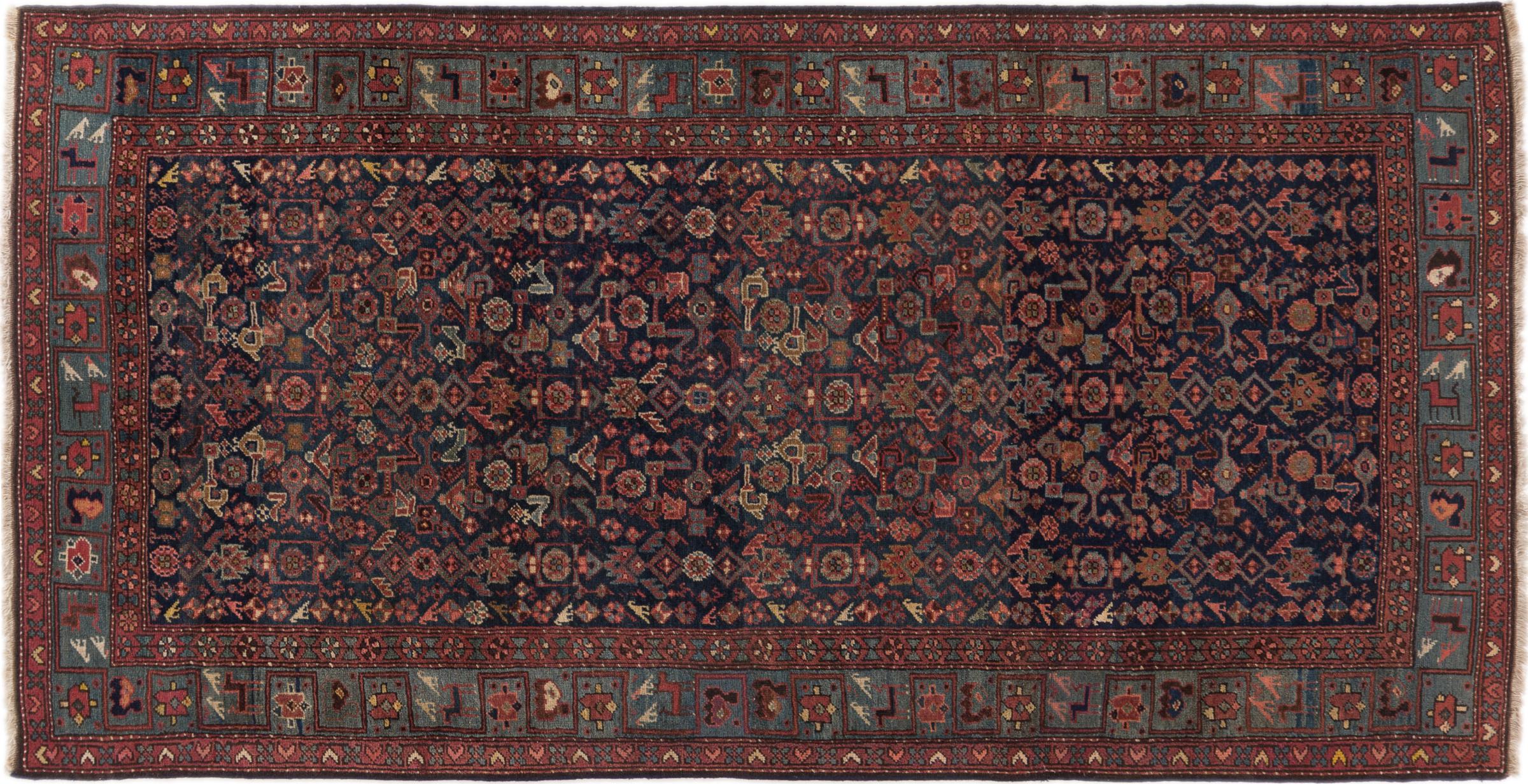 Carpet ID: 299066001116 Size: 218x110 cm Thickness: ap. 12 mm Knot density: 200 000 - 250 000 / m² Manufacturing: Knotted by hand Pile: Handspun wool Warp: Cotton Origin: Persia Age: Old/Semi antique, over 50 years Weight: ap. 8 kg In stock: Unique - Only 1 in stock