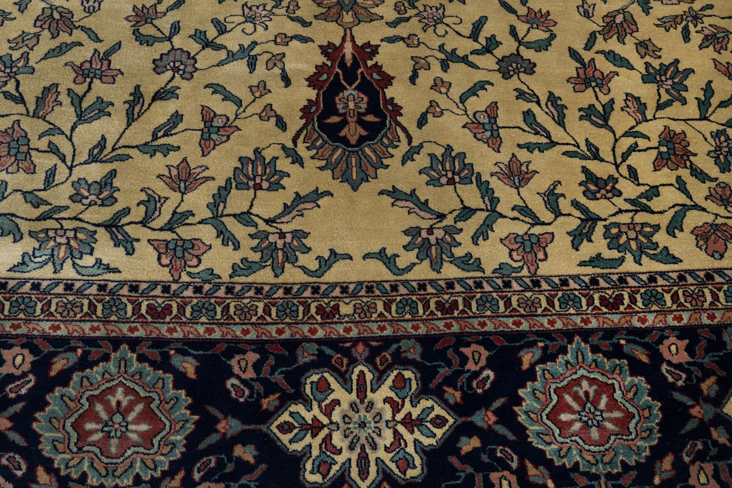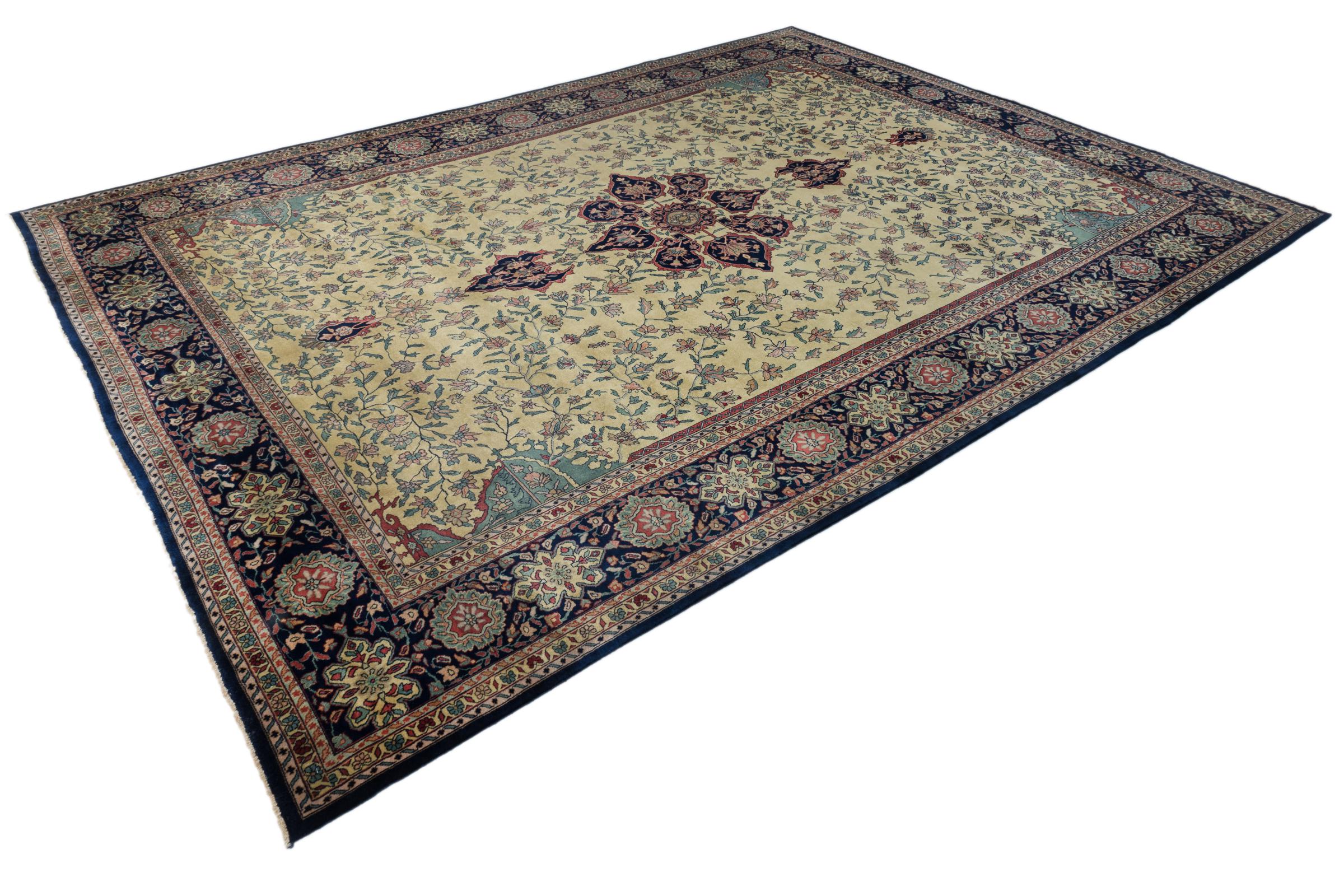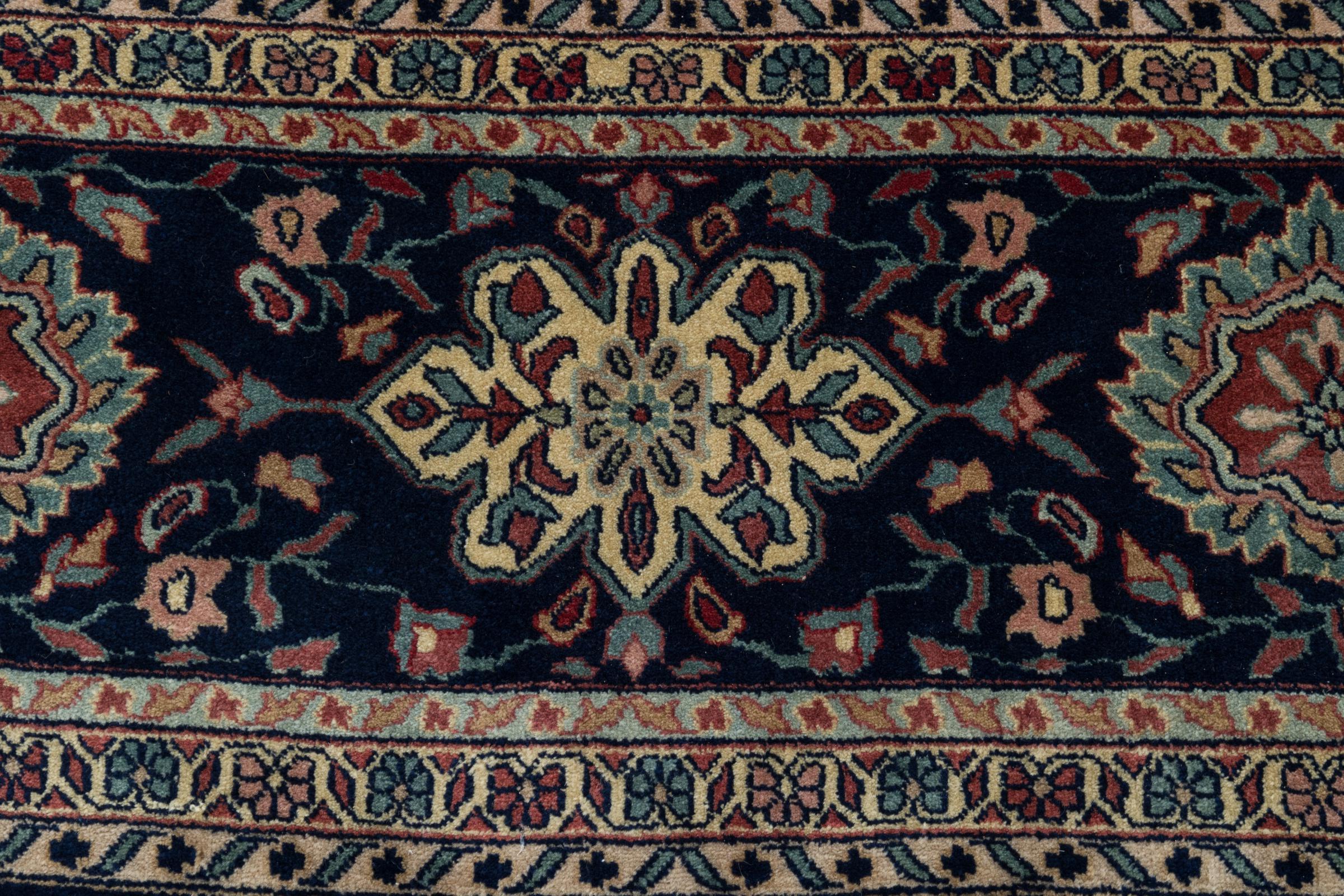 This Indo Tabriz is a very nice example of Indian handicraft. Knotted by hand and made with high-quality wool, it will remain faithful to you for decades. As the name suggests, it is based on the original Persian Tabriz carpets. The somewhat simpler knotting density requires less experience and effort, which makes it much more affordable. This carpet is a beautiful work of art and handicraft that lasts for months.