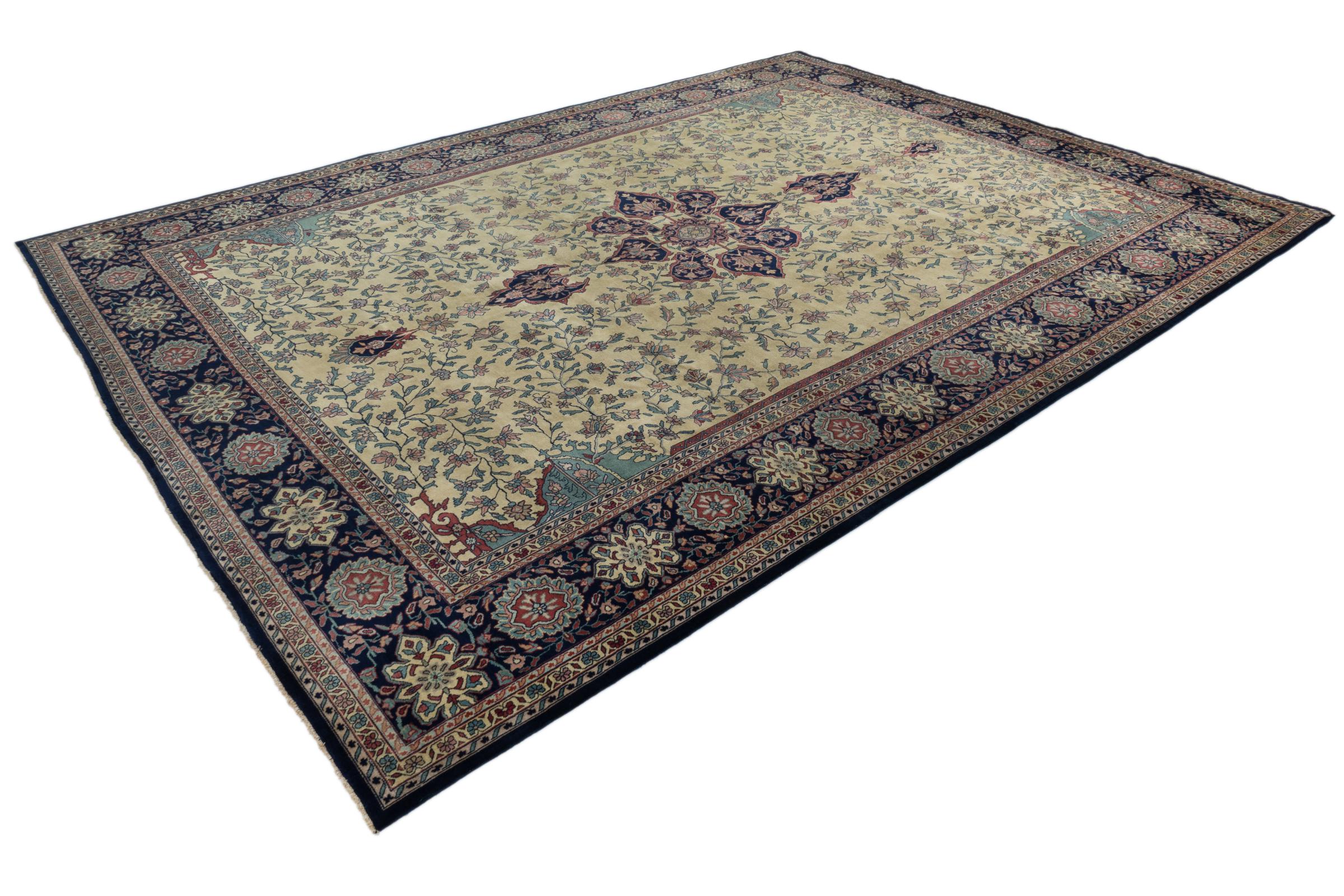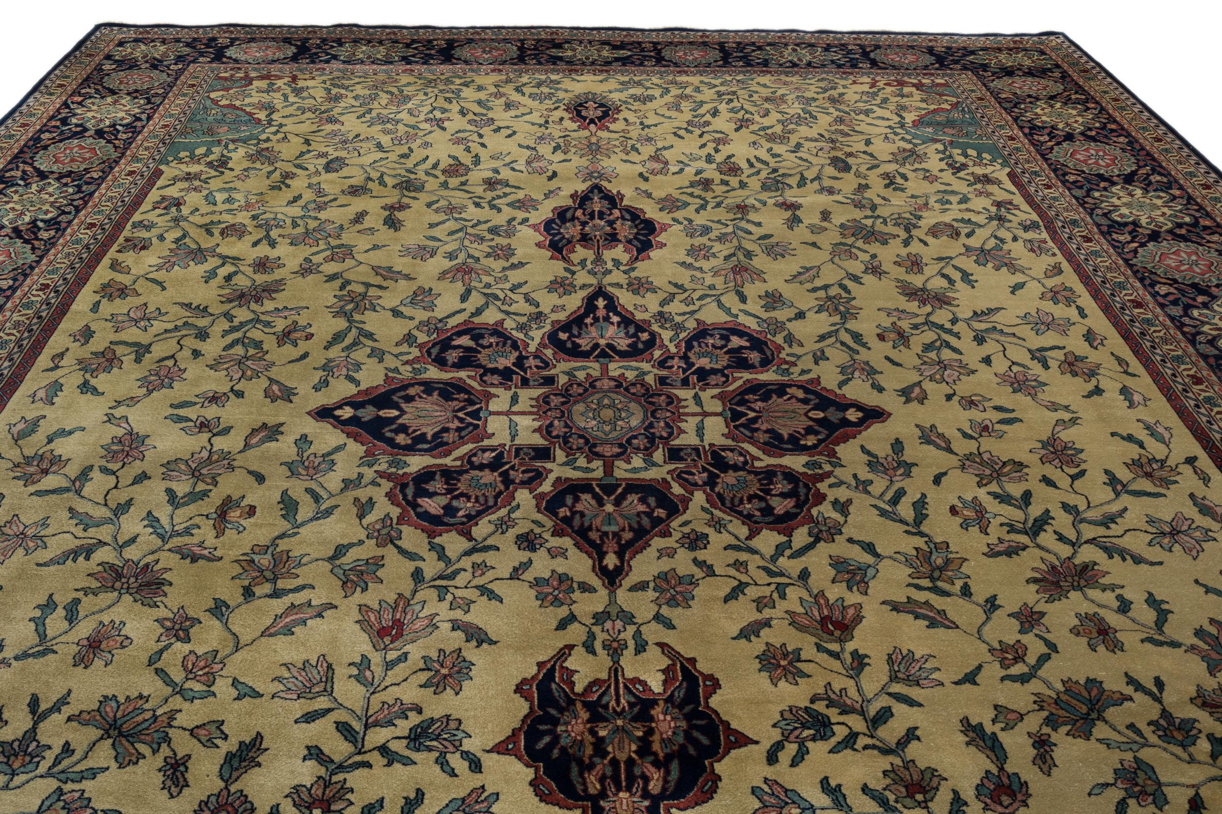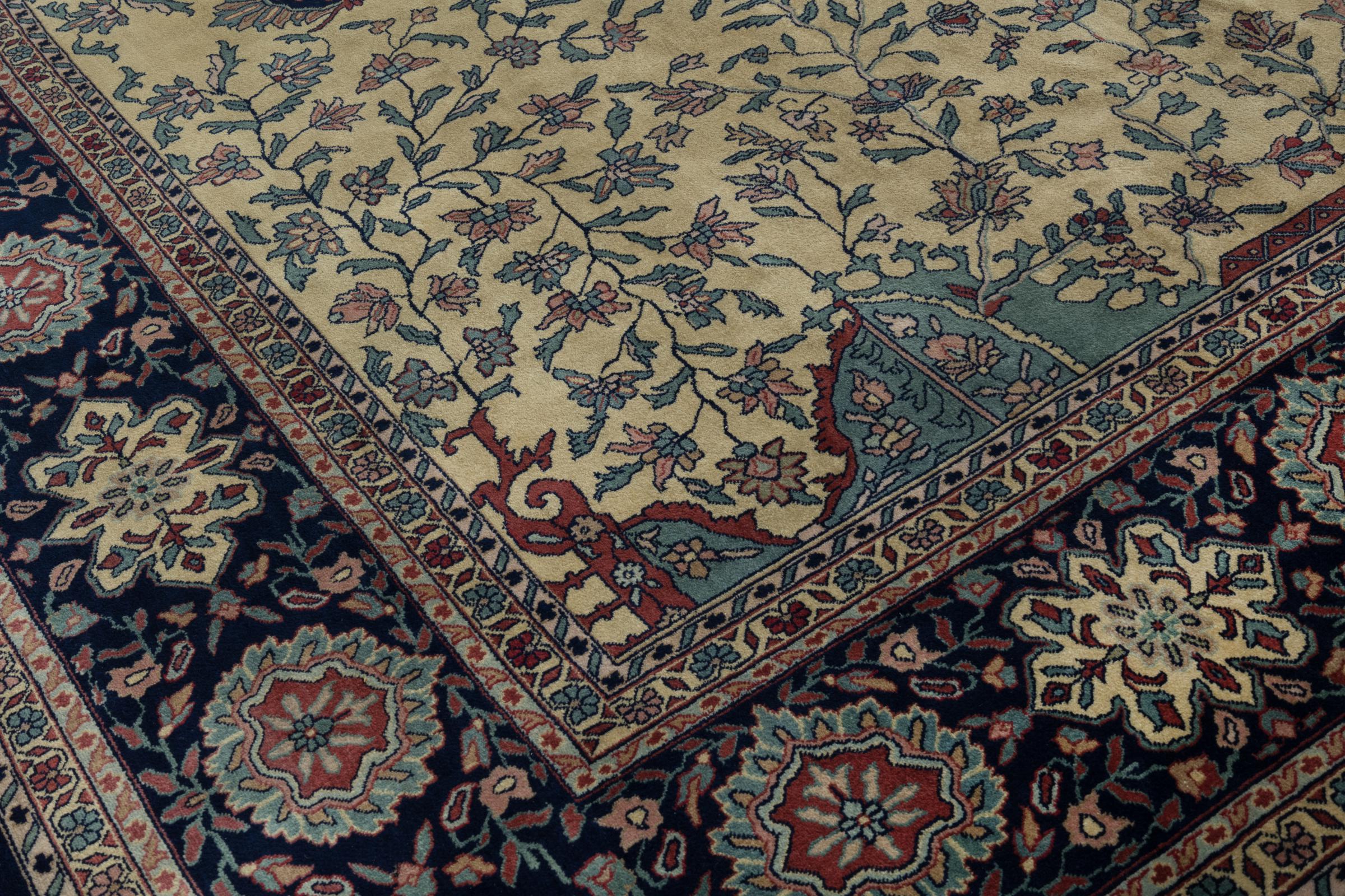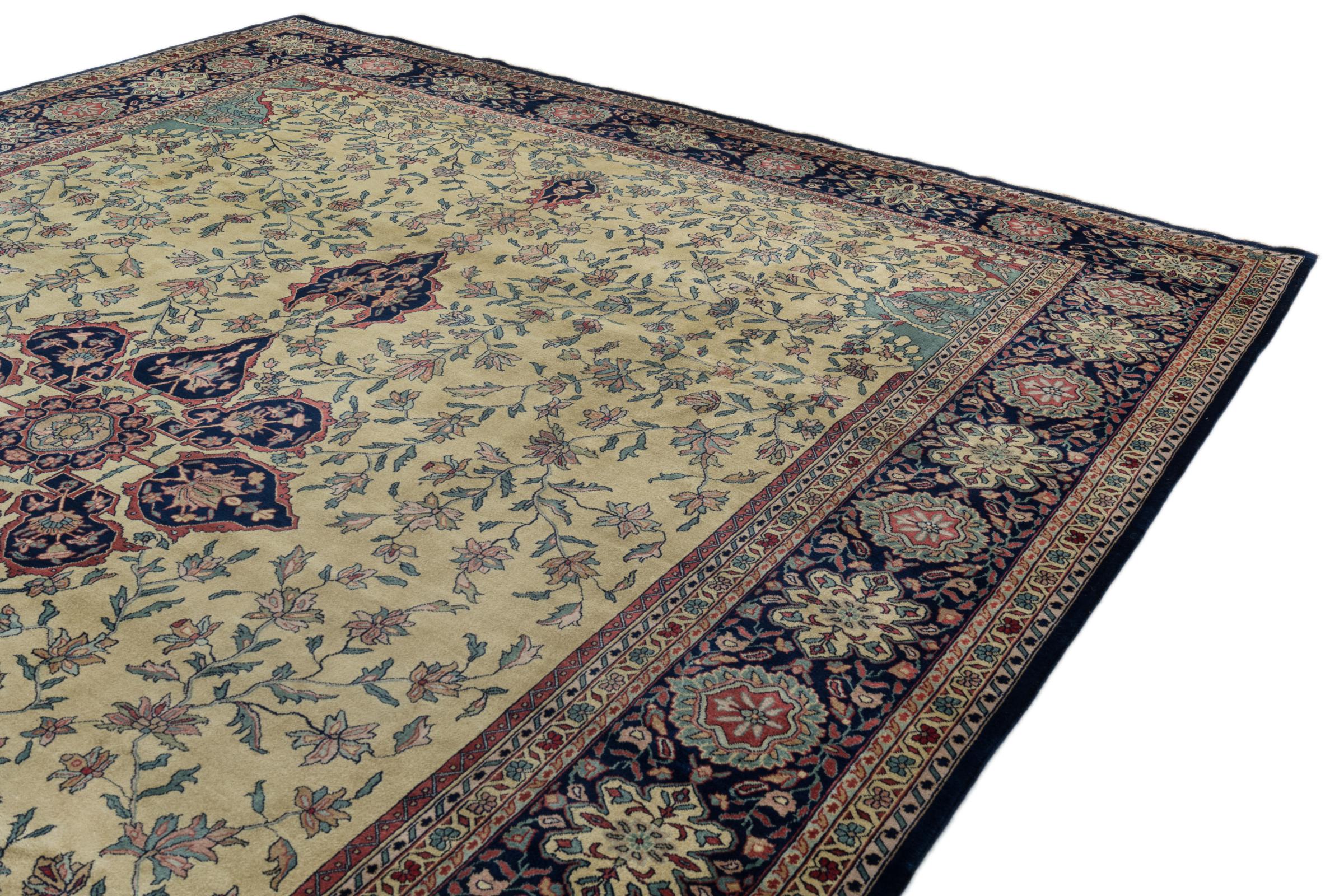 This Indo Tabriz is a very nice example of Indian handicraft. Knotted by hand and made with high-quality wool, it will remain faithful to you for decades. As the name suggests, it is based on the original Persian Tabriz carpets. The somewhat simpler knotting density requires less experience and effort, which makes it much more affordable. This carpet is a beautiful work of art and handicraft that lasts for months.